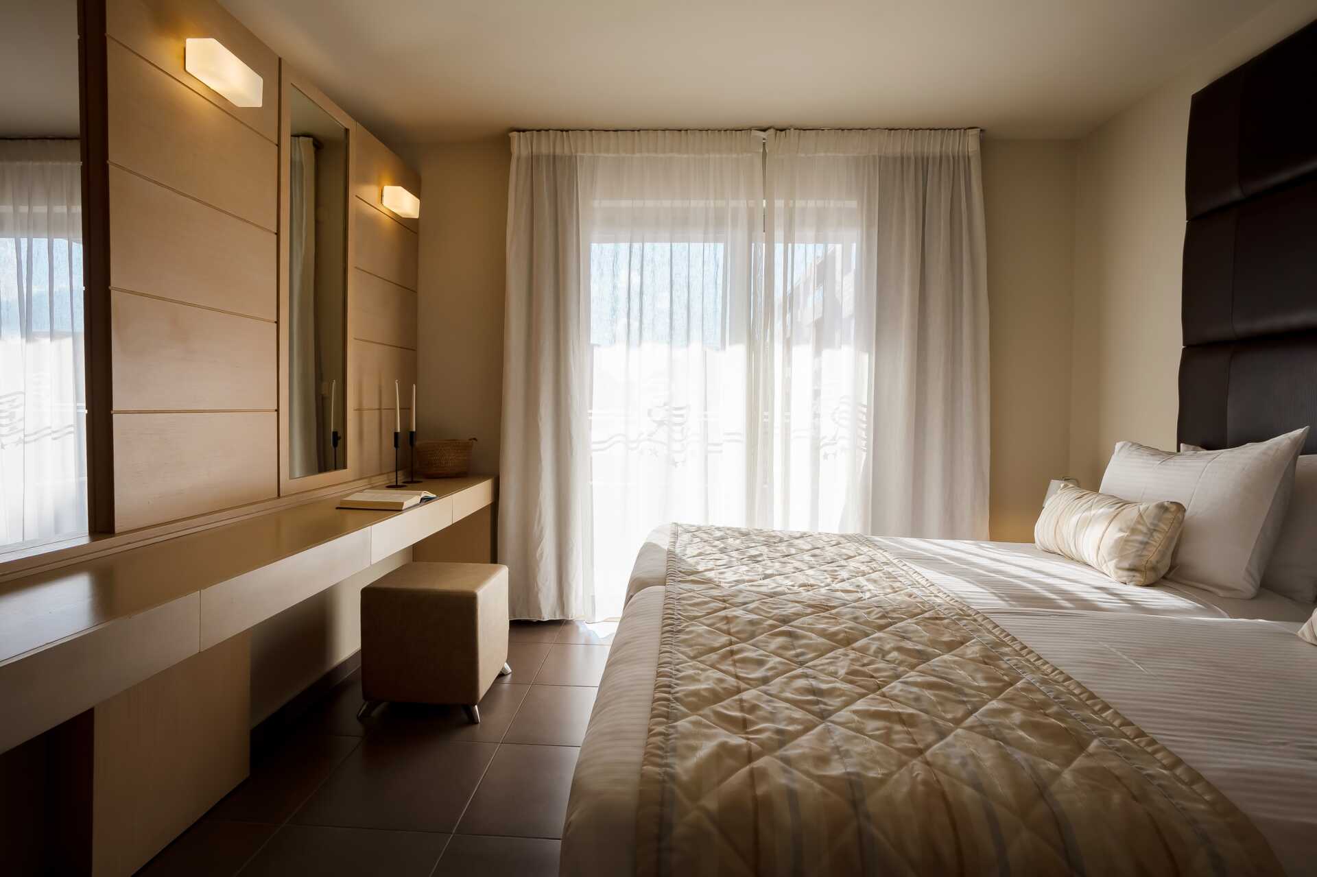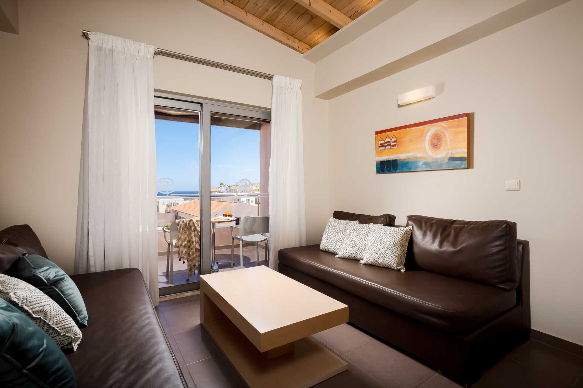 Kaksio parvekkeella, maaparvekkeella, maaterassilla (pääsy portaiden kautta) tai suurella parvekkeella, joistakin huoneistoista on näkymät uima-altaalle. Huoneistot maaparvekkeella tai maaterassilla sijaitsevat Village-osassa, ja parvekkeelliset huoneistot Royal- ja Village-osissa. Makuuhuone sekä yhdistetty olohuone ja minikeittiö. Parivuode. Lisävuodemahdollisuus vuodesohvasta. Minikeittiössä keittolevyt, jääkaappi, kahvinkeitin, vedenkeitin ja yksinkertainen keittiövarustus. Maksuton wifi, ilmastointi ja tallelokero. Tv kansainvälisillä kanavilla. Hiustenkuivain. Kylpyamme tai suihku ja wc. Siivous 6 krt/viikko.