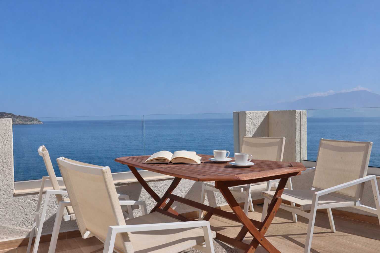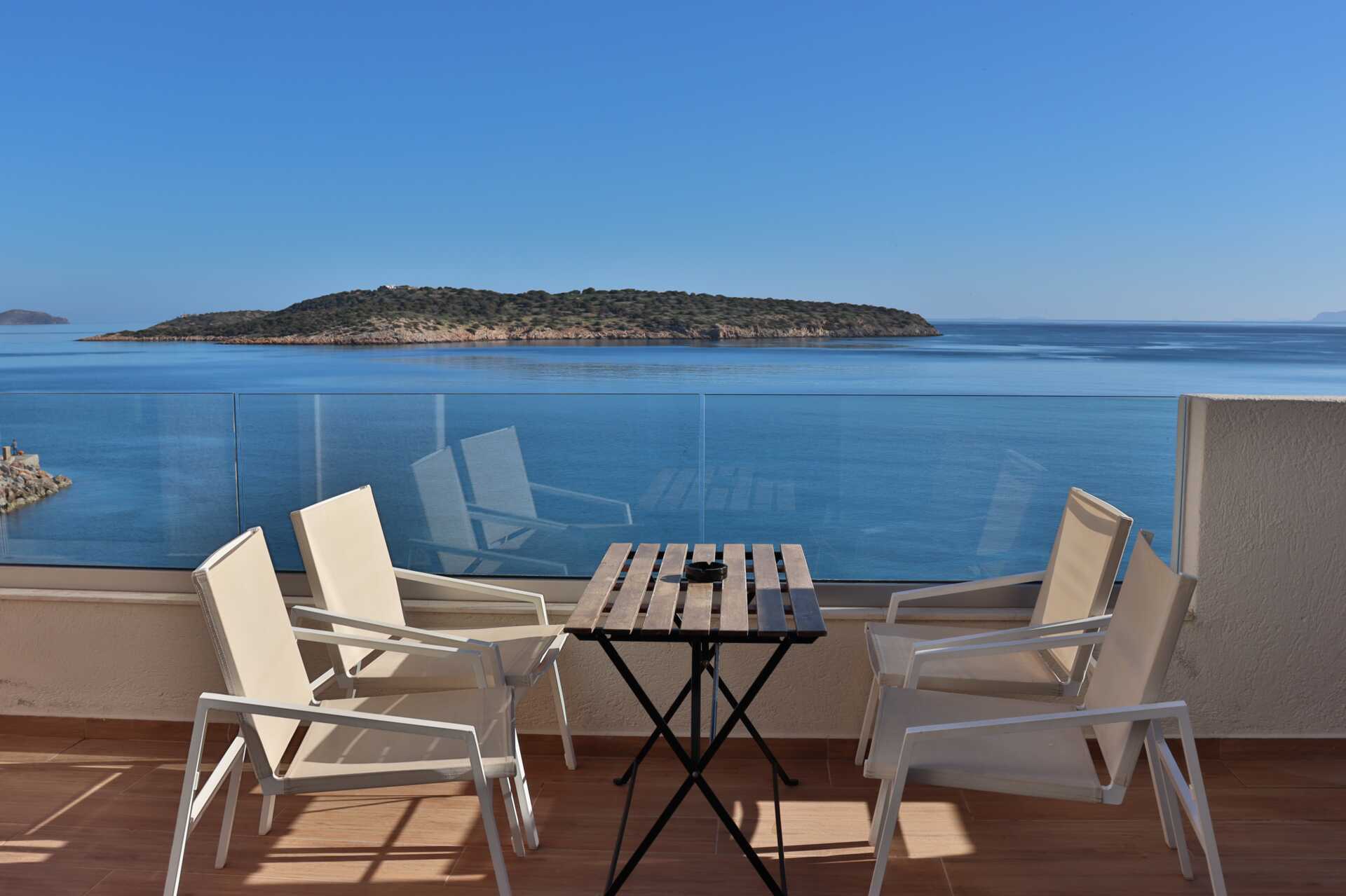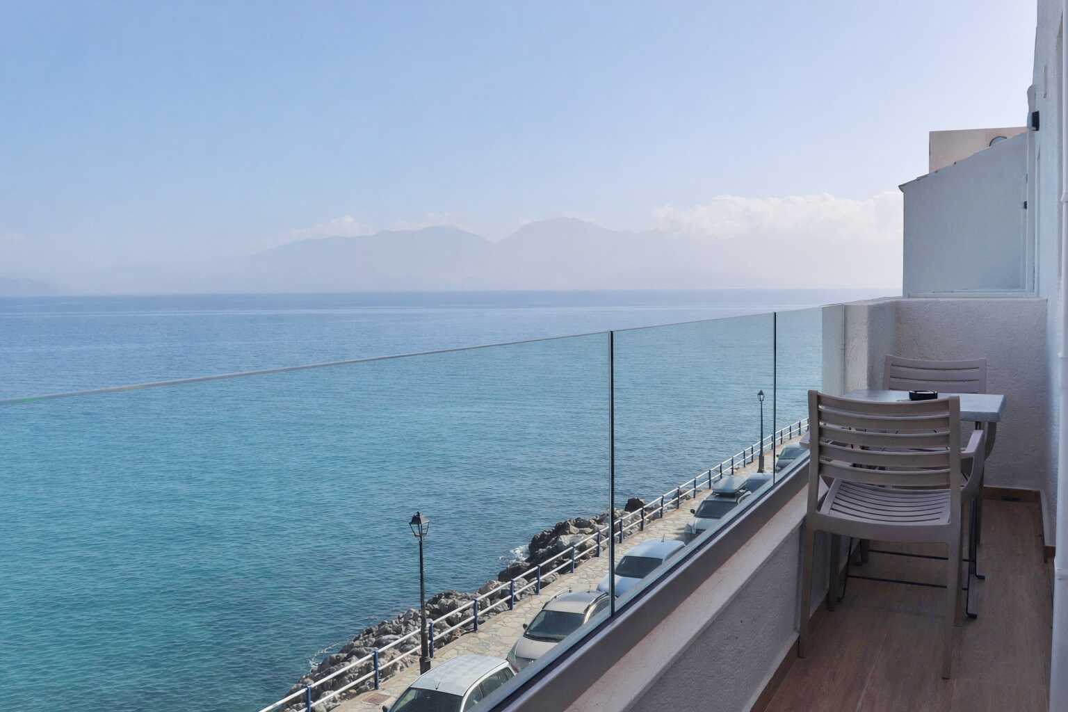 Kaksio parvekkella tai terassilla ja merinäköala. Makuuhuone ja yhdistetty olohuone ja minikeittiö. Parivuode tai kaksi yhden hengen sänkyä. lisävuodemahdollisuus vuodesohvaan, jossa on ulosvedettävä sänky. Minikeittiössä keittolevyt, jääkaappi, vedenkeitin, kahvinkeitin ja yksinkertainen keittiövarustus. Maksuton wifi, ilmastointi ja tallelokero. Tv paikallisilla kanavilla. Hiustenkuivain. Suihku ja wc. Siivous 6 krt/viikko.