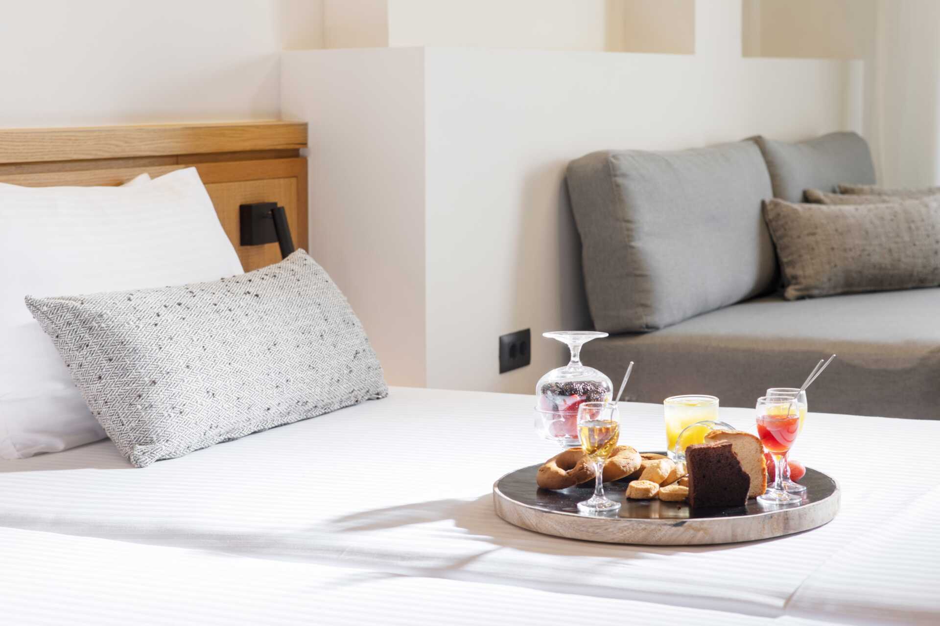 Sviittejä, joissa on erillinen makuuhuone ja olohuone. Sviitit sijaitsevat Almyrida Residencessä. Tv kansainvälisillä kanavilla. Minijääkaappi. Poreamme. Maksuton wifi ja ilmastointi. Tallelokero lisämaksusta. Hiustenkuivain. Kylpyamme ja wc. Kaksi parveketta merinäköalalla. Siivous 7 krt/viikko.
