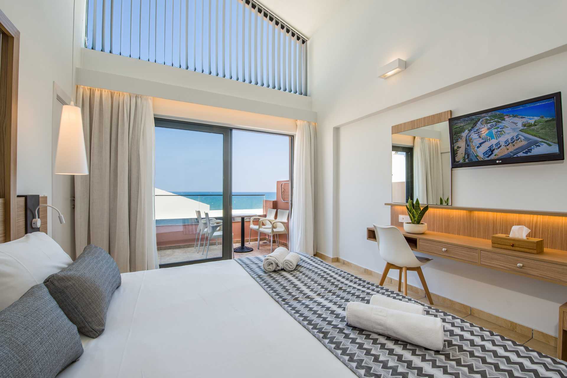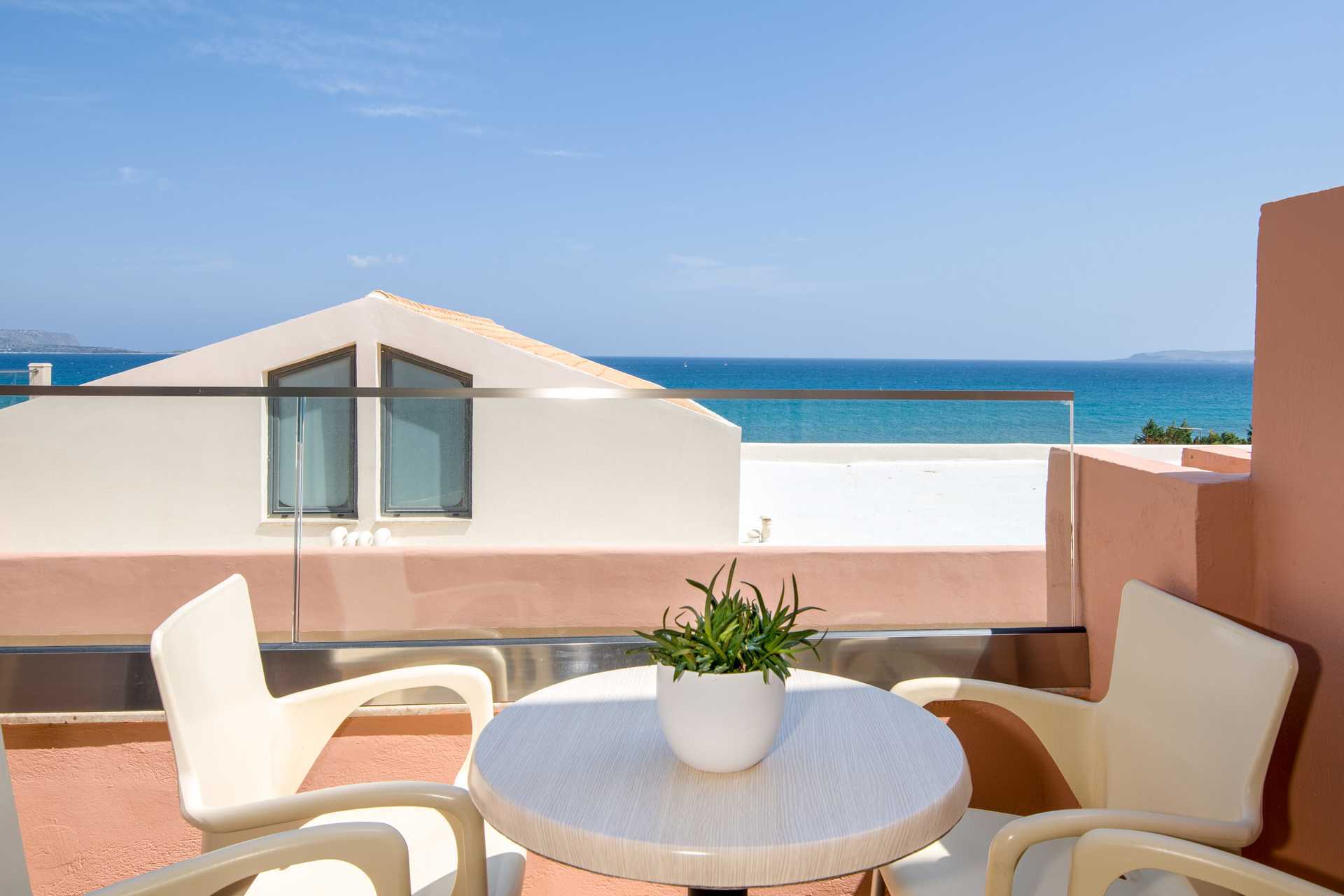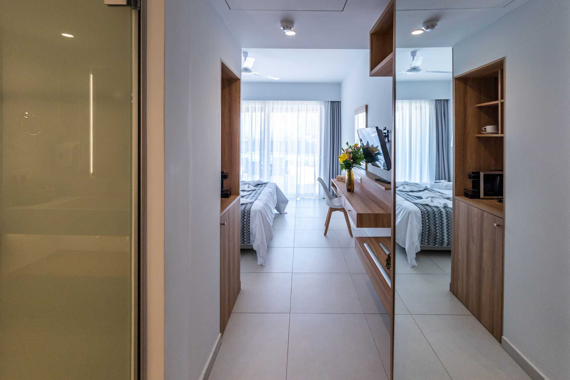 Superior-yksiö, parvekkeella tai terassilla, joista osasta on merinäköala. Huoneistot sijaitsevat South Wing -hotelliosassa. Huoneisto voidaan jakaa liukuovella, ja muodostaa makuuhuoneen parivuoteella tai kahdella yhden hengen vuoteella ja olohuoneen kahdella vuodesohvalla. Maksuton wifi, ilmastointi ja tallelokero. Kattotuuletin. Minikeittiössä keittolevyt, jääkaappi, Nespresso-kahvikone, vedenkeitin, kahvia ja teetä sekä yksinkertainen keittiövarustus. Ulkoruokailutila. Tv kansainvälisillä kanavilla, yksi makuuhuoneessa ja yksi olohuoneessa. Hiustenkuivain. Suihku ja wc. Siivous 7 krt/viikko.