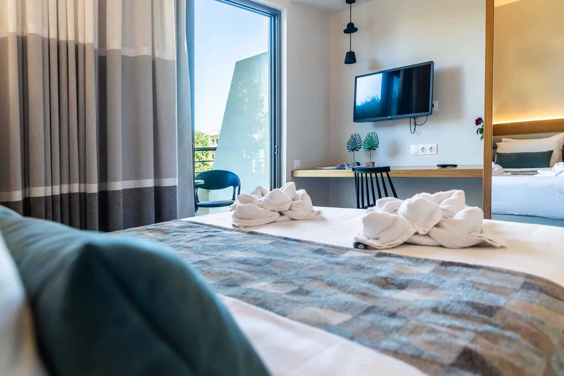 Superior-yksiö parvekkeella. Yhdistetty makuuhuone ja minikeittiö. Parivuode tai kaksi yhden hengen sänkyä. Minikeittiössä keittolevyt, jääkaappi, vedenkeitin, kahvinkeitin ja yksinkertainen keittiövarustus. Maksuton wifi ja ilmastointi. Tallelokero lisämaksusta. Tv kansainvälisillä kanavilla. Kylpyhuoneessa suihku ja wc. Siivous 6 krt/viikko. Alle 2-vuotiaat lapset lasketaan lisävuoteella majoittuviksi henkilöiksi.
