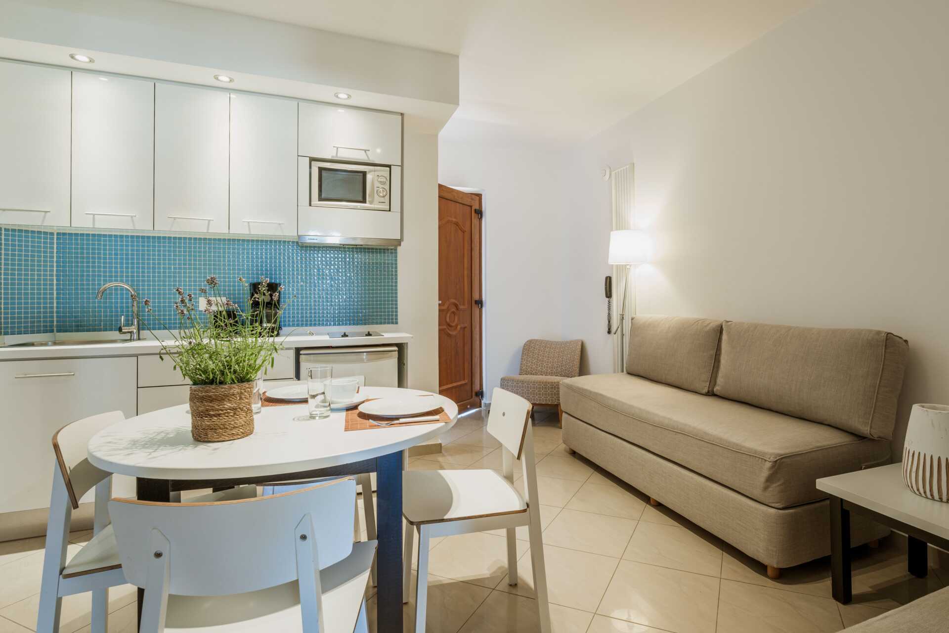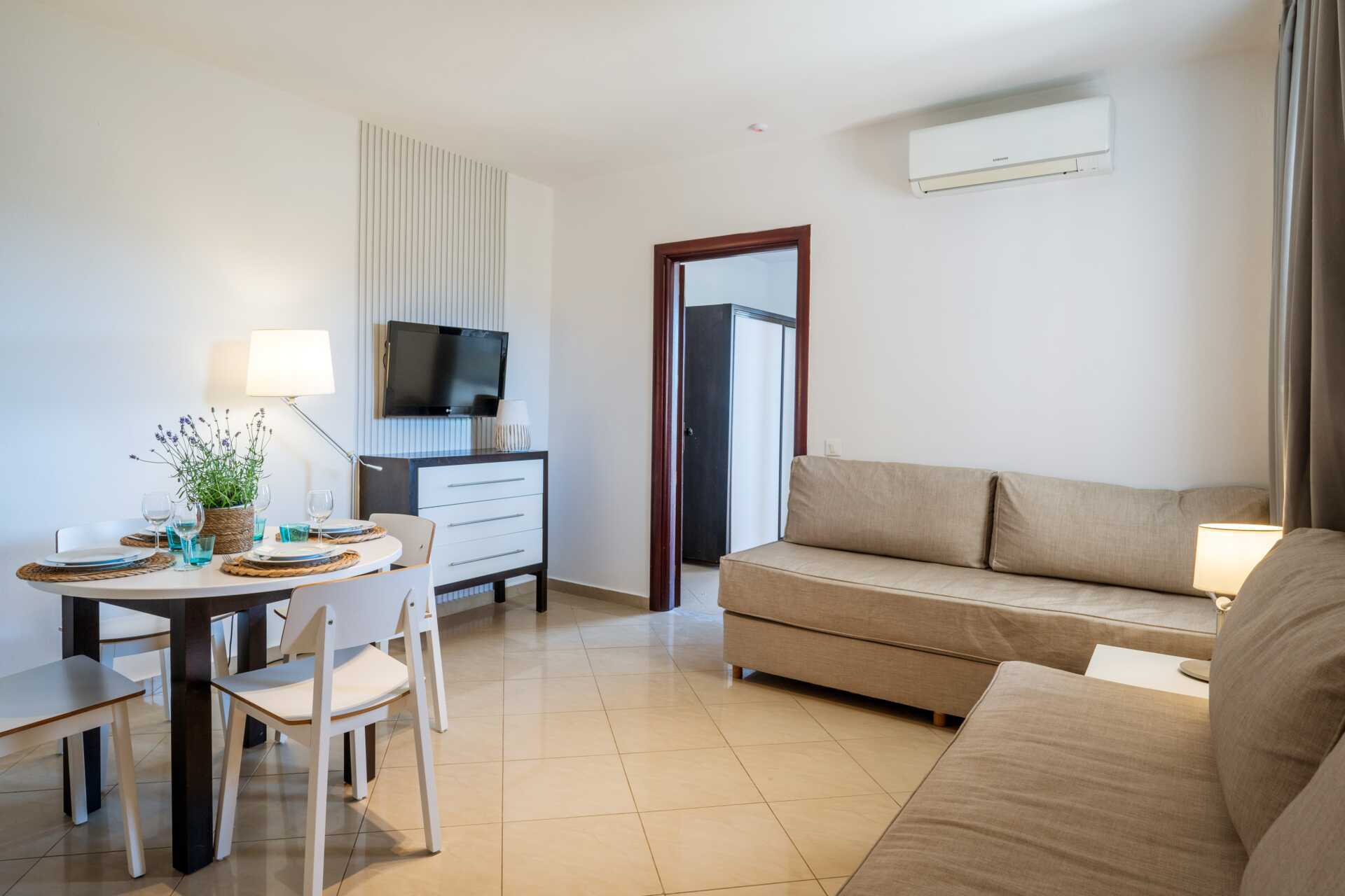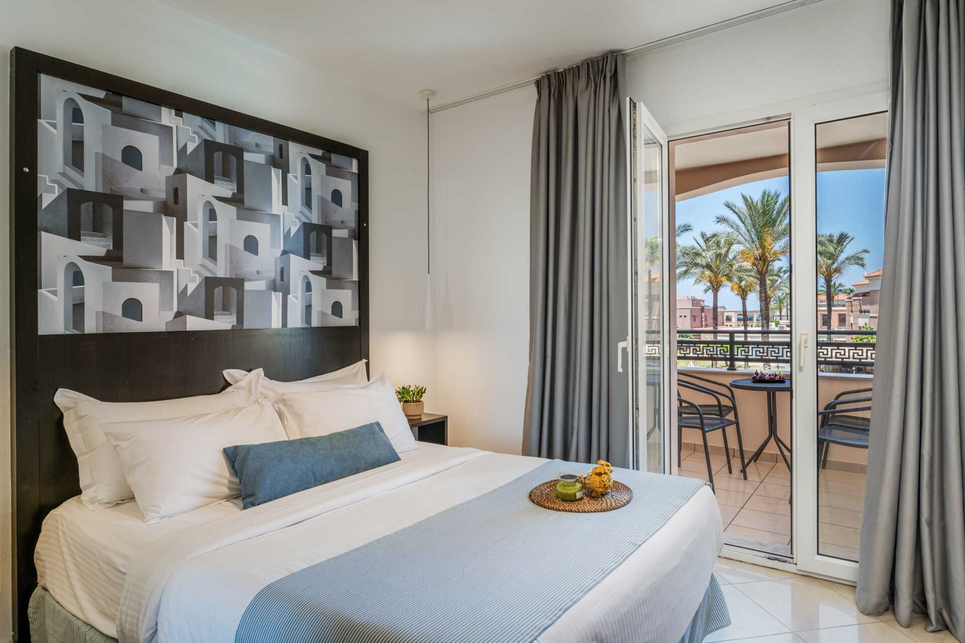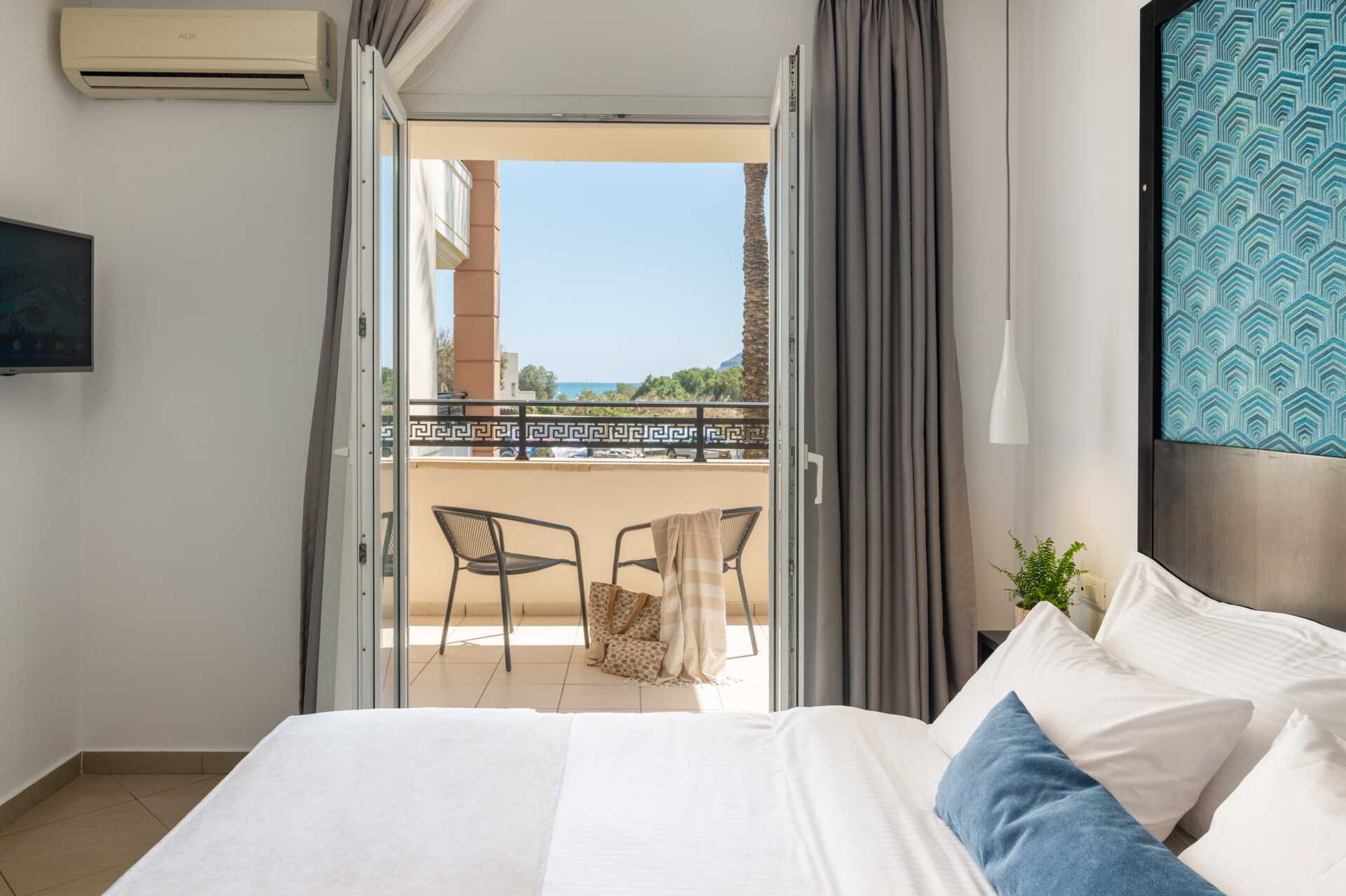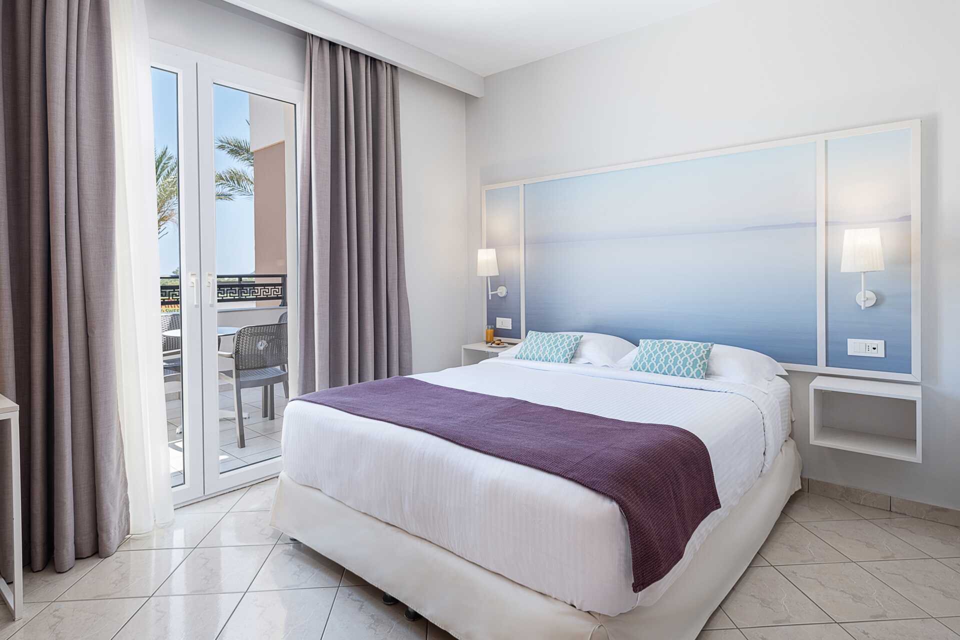 Kaksio parvekkeella, joista osasta on rajoitettu merinäköala tai merinäköala. Huoneistot sijaitsevat hotellin Aphrodite-osassa, lähempänä merta. Kolmen hengen huoneet ovat kooltaan n. 28-30 neliömetriä, neljän hengen huoneet noin 30-40 neliömetriä. Makuuhuone sekä yhdistetty olohuone ja minikeittiö. Parivuode. Lisävuodemahdollisuus vuodesohvaan. Minikeittiössä jääkaappi, keittolevyt, kahvinkeitin, vedenkeitin, leivänpaahdin ja yksinkertainen keittiövarustus. Maksuton wifi, ilmastointi ja tallelokero. Tv kansainvälisillä kanavilla. Hiustenkuivain. Kylpyhuoneessa suihku ja wc. Siivous 6 krt/viikko.