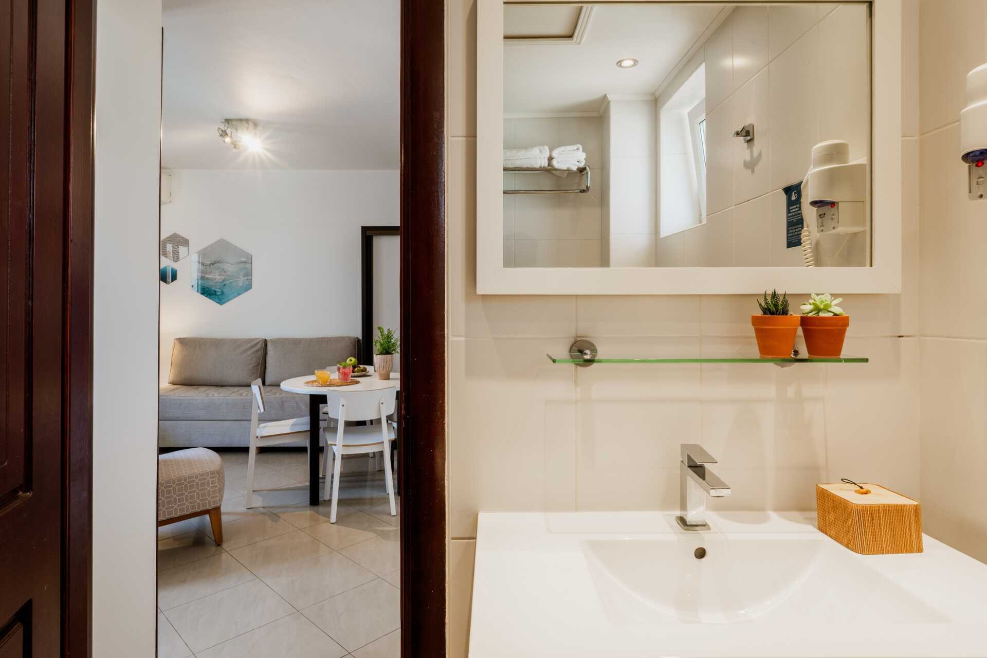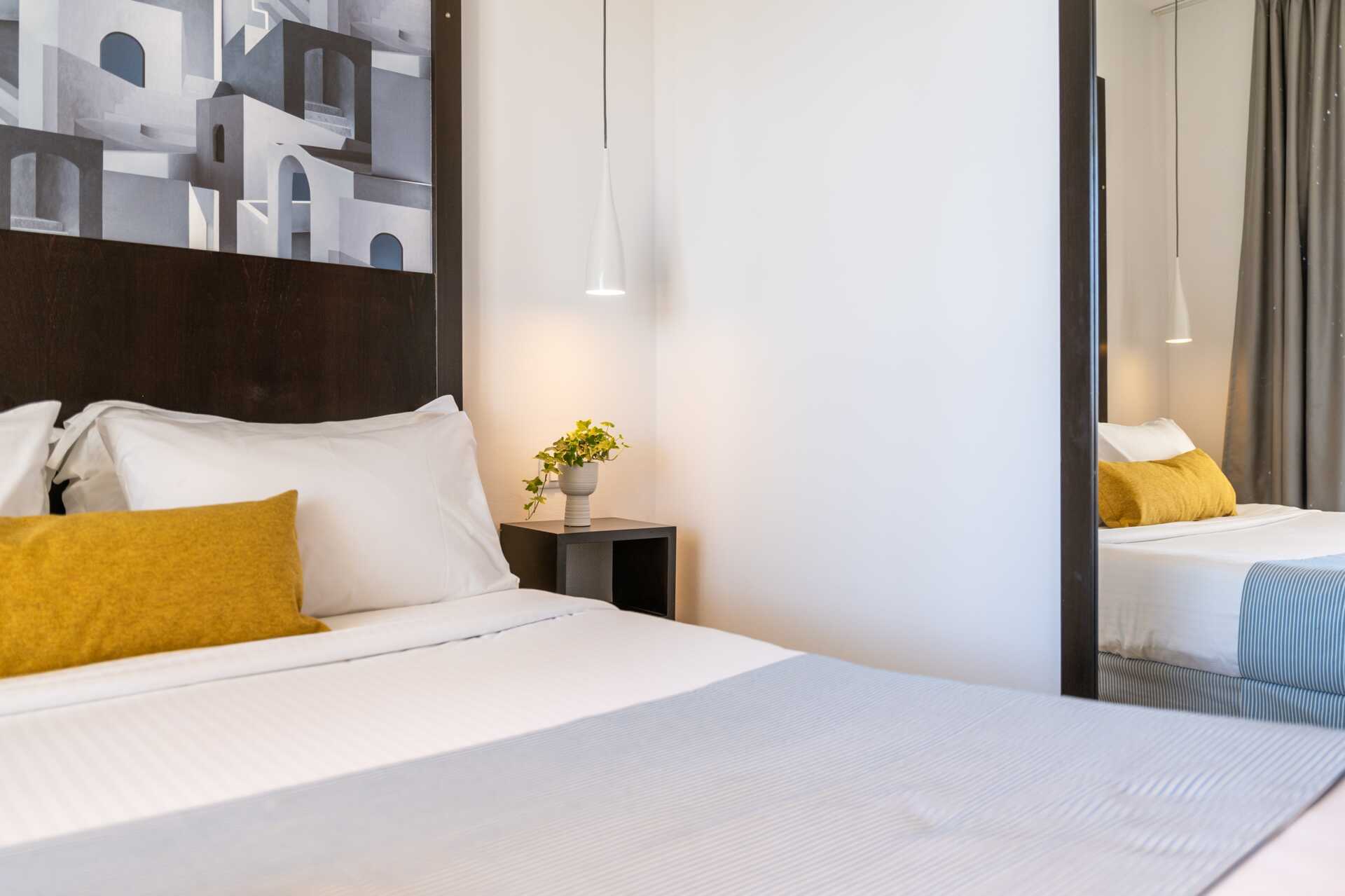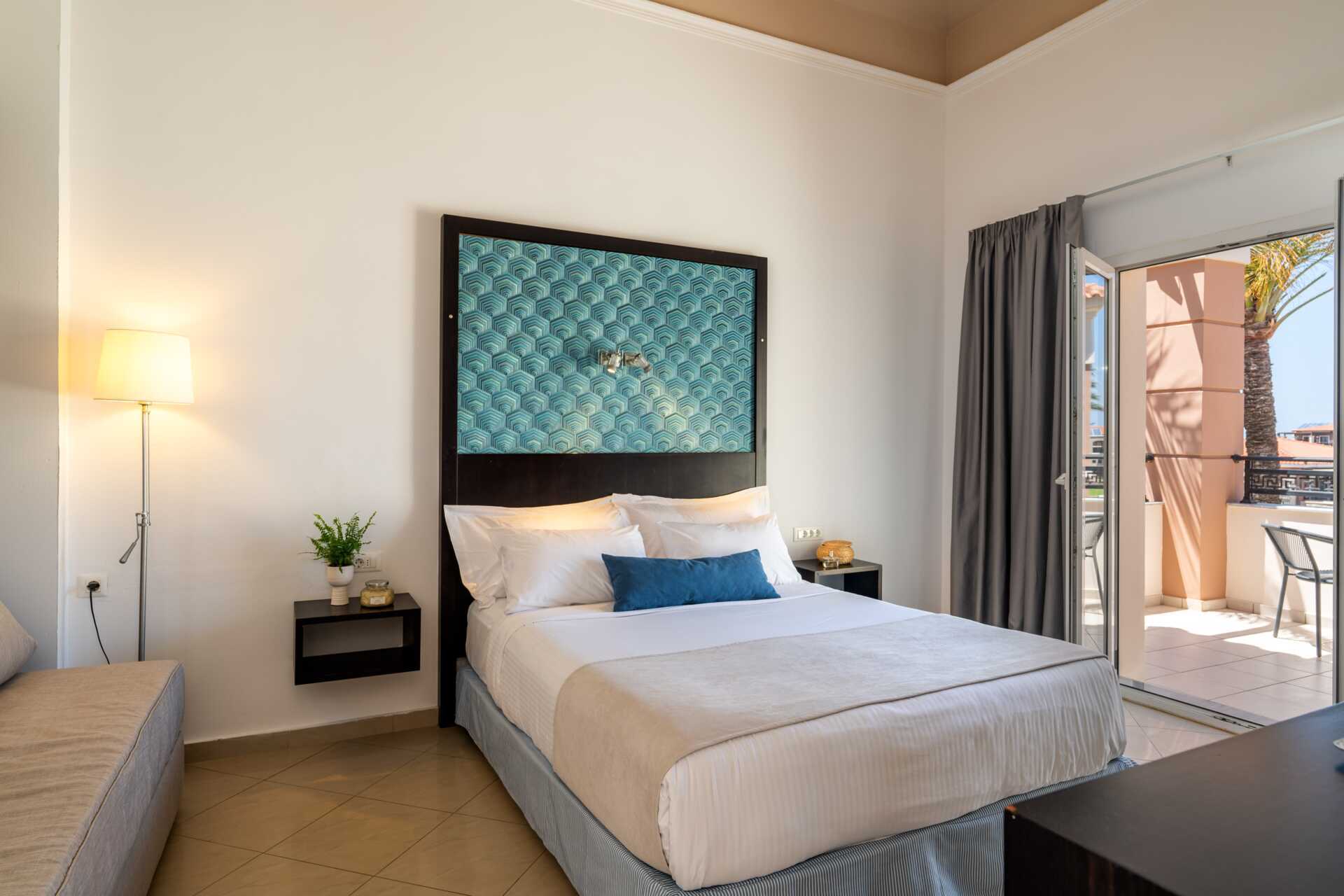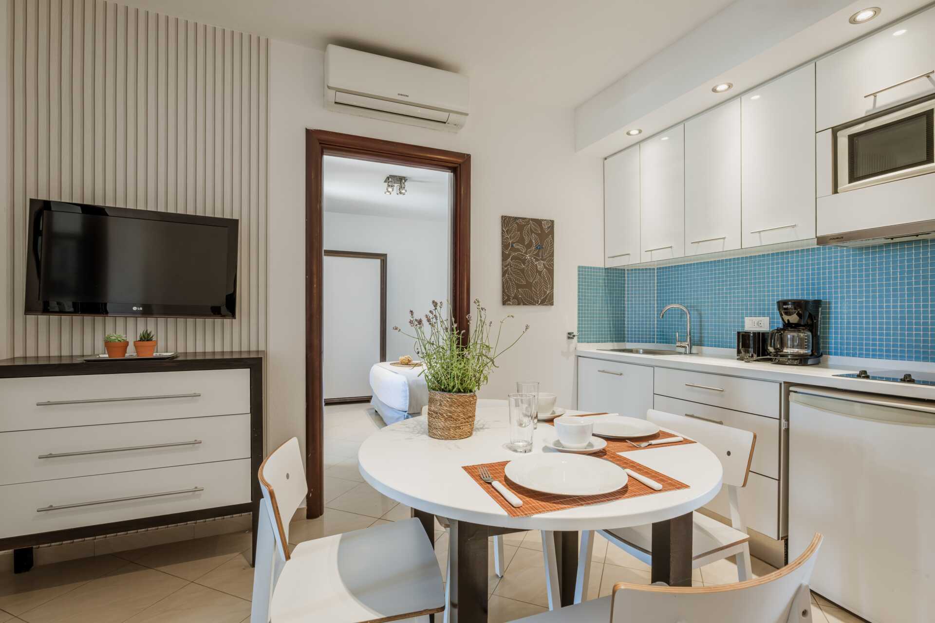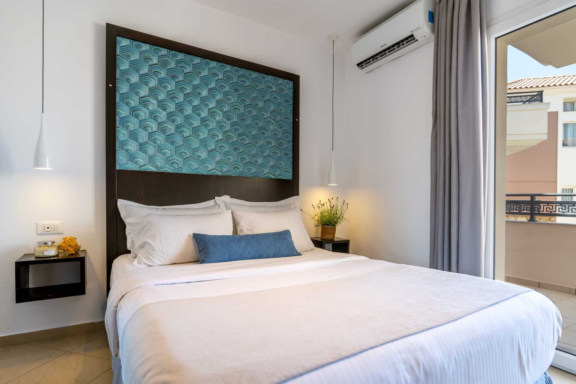 Kaksio parvekkeella, joista osasta on rajoitettu merinäköala tai merinäköala. Huoneistot sijaitsevat hotellin Aphrodite-osassa, lähempänä merta. Kolmen hengen huoneet ovat kooltaan n. 28-30 neliömetriä, neljän hengen huoneet noin 30-40 neliömetriä. Makuuhuone sekä yhdistetty olohuone ja minikeittiö. Parivuode. Lisävuodemahdollisuus vuodesohvaan. Minikeittiössä jääkaappi, keittolevyt, kahvinkeitin, vedenkeitin, leivänpaahdin ja yksinkertainen keittiövarustus. Maksuton wifi, ilmastointi ja tallelokero. Tv kansainvälisillä kanavilla. Hiustenkuivain. Kylpyhuoneessa suihku ja wc. Siivous 6 krt/viikko.