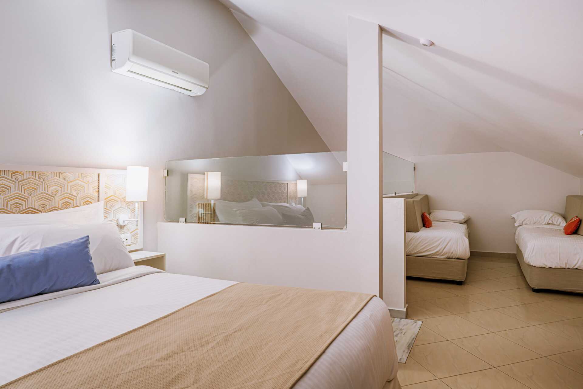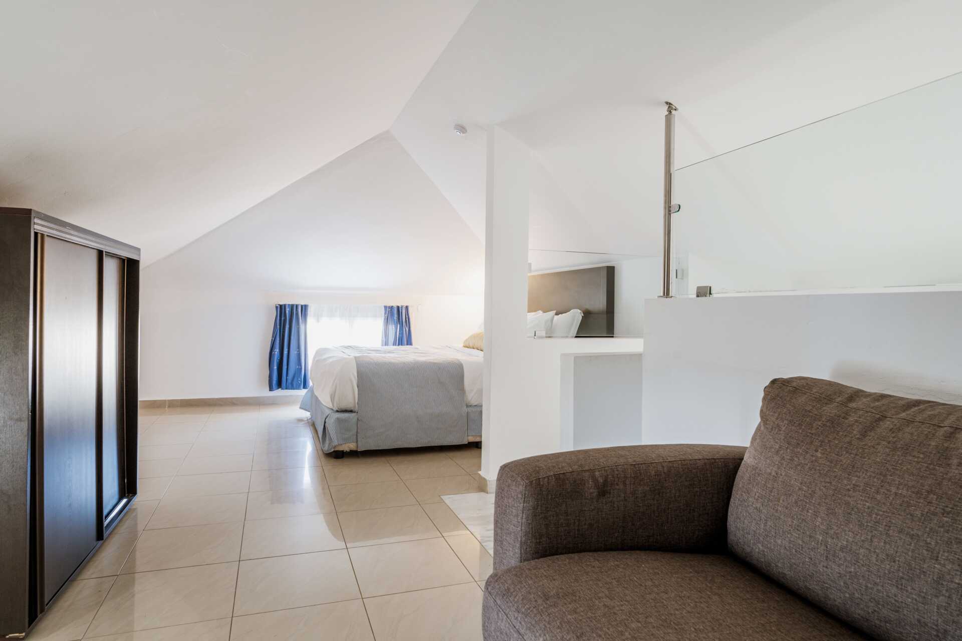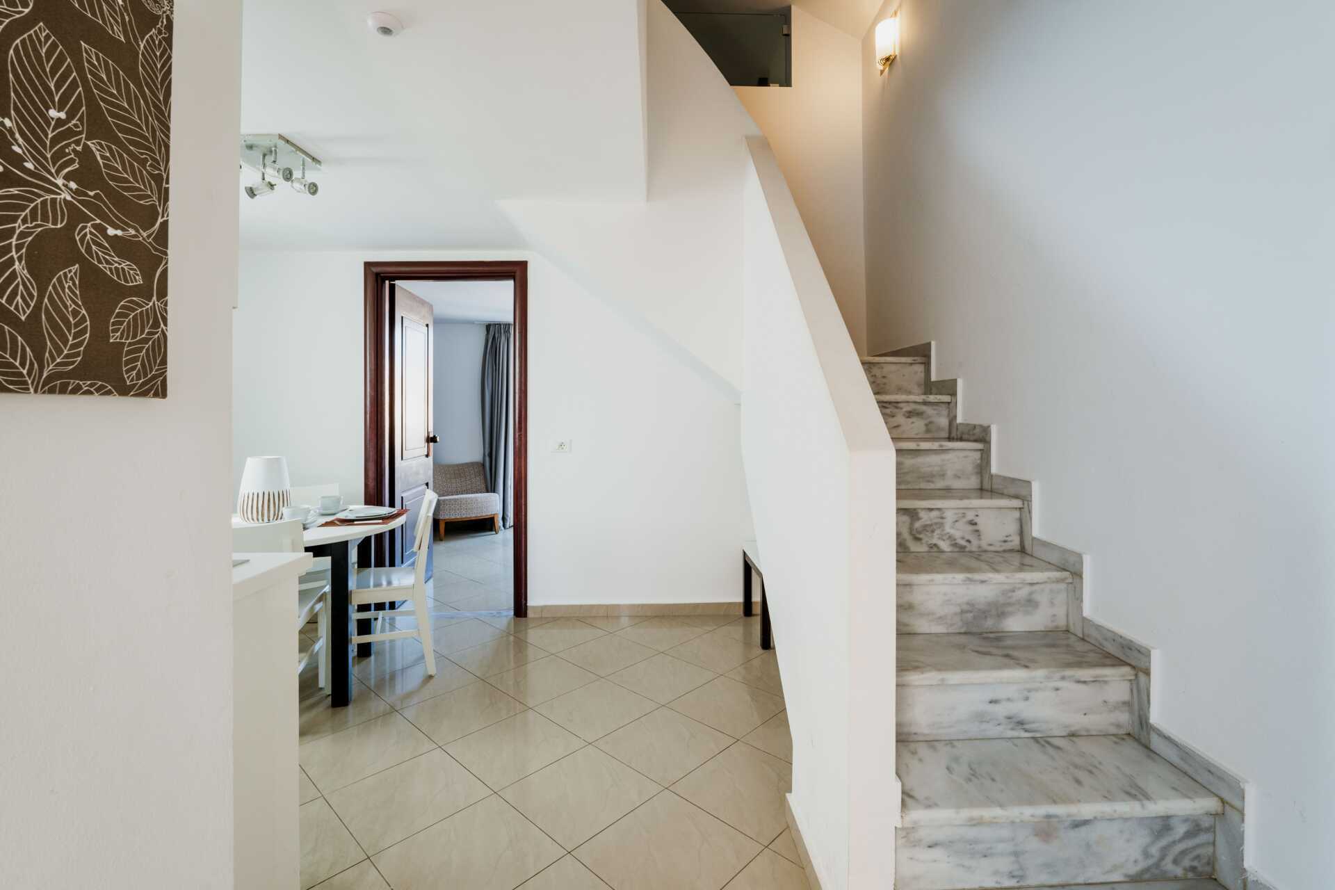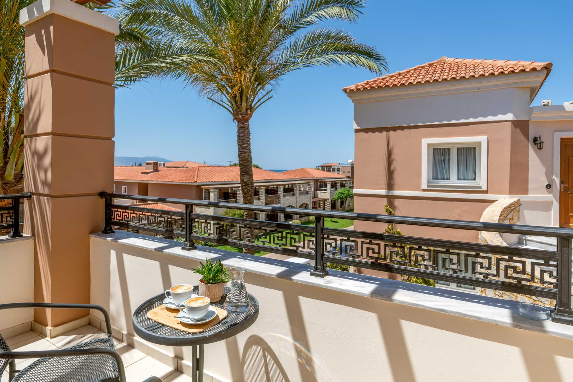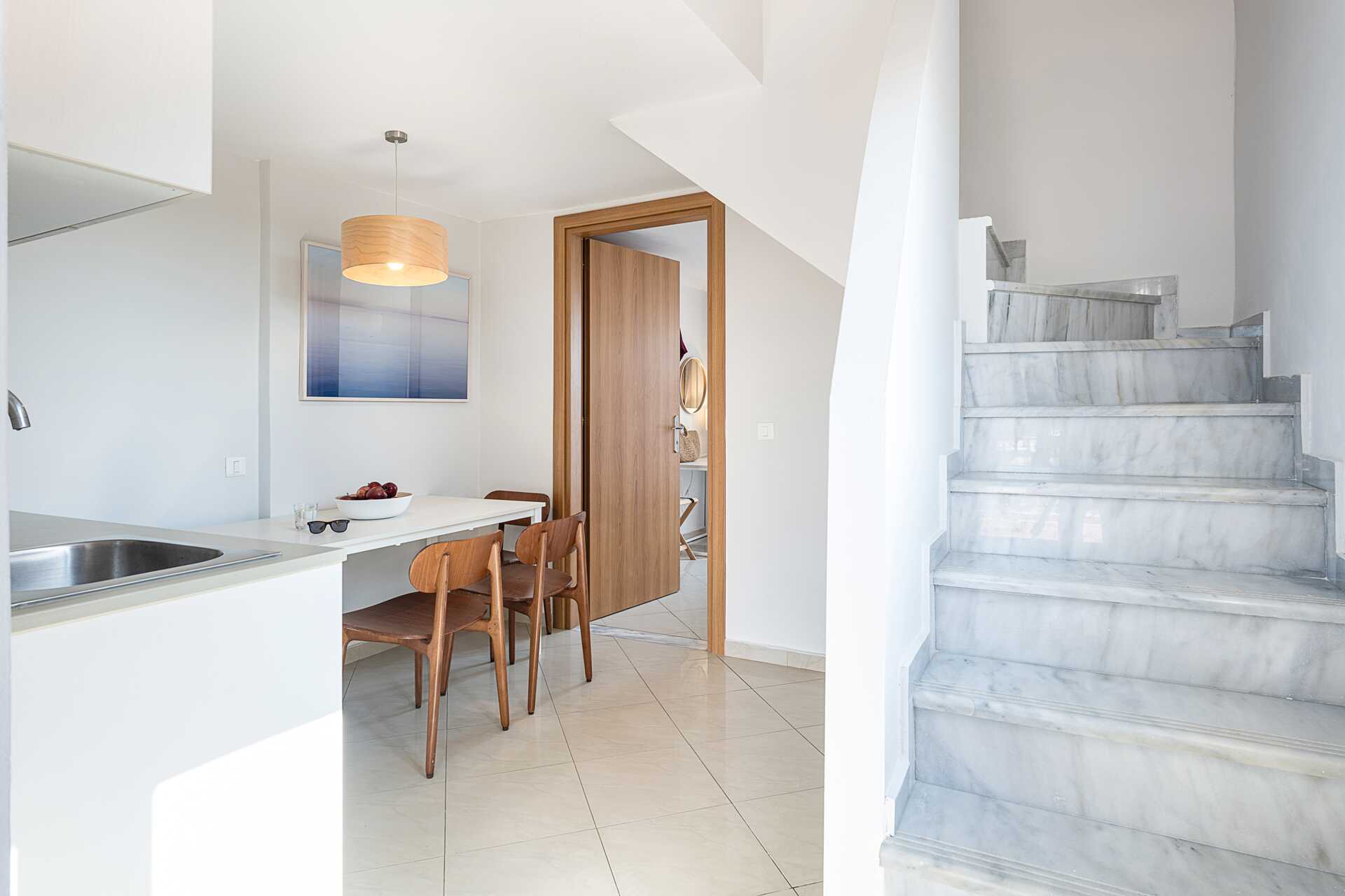 Suurempi kaksikerroksinen kaksio parvekkeella, joista osasta on merinäköala tai rajoitettu merinäköala. Huoneistot sijaitsevat hotellin Aphrodite-osassa, lähempänä merta. Sisääntulokerroksessa on minikeittiö ja makuuhuone, jossa on parisängyksi. Yläkerrassa on mahdollisuus lisävuoteisiin makuuparven vuodesohviin. Minikeittiössä jääkaappi, keittolevyt, kahvinkeitin, leivänpaahdin ja yksinkertainen keittiövarustus. Maksuton wifi, ilmastointi ja tallelokero. Tv kansainvälisillä kanavilla. Hiustenkuivain. Kylpyhuoneessa suihku ja wc. Siivous 6 krt/viikko.