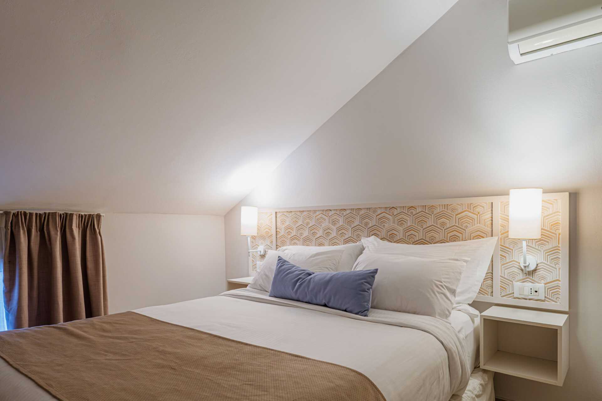 Kaksikerroksinen kaksio, osasta on rajoitettu merinäköala. Huoneistot sijaitsevat hotellin Aphrodite-osassa, lähempänä merta. Sisääntulokerroksessa on minikeittiö ja makuuhuone, jossa on parisänky. Yläkerrassa on mahdollisuus lisävuoteisiin makuuparven vuodesohviin. Minikeittiössä jääkaappi, keittolevyt, kahvinkeitin, vedenkeitin, leivänpaahdin ja yksinkertainen keittiövarustus. Maksuton wifi, ilmastointi ja tallelokero. Tv kansainvälisillä kanavilla. Hiustenkuivain. Kylpyhuoneessa suihku ja wc. Siivous 6 krt/viikko.