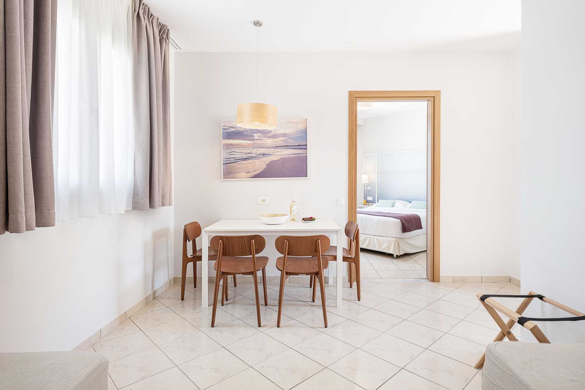 Kahden huoneen huoneisto parvekkeella, joista osasta on näkymät uima-altaalle. Huoneistot sijaitsevat hotellin Olympus-osassa. Kolmen hengen huoneet ovat kooltaan n. 24-30 neliömetriä, neljän hengen huoneet noin 32-43 neliömetriä. Makuuhuone sekä yhdistetty olohuone ja minikeittiö. Parivuode. Lisävuodemahdollisuus vuodesohvalla. Minikeittiössä jääkaappi, keittolevyt, kahvinkeitin, vedenkeitin, leivänpaahdin ja yksinkertainen keittiövarustus. Maksuton wifi, ilmastointi ja tallelokero. Tv kansainvälisillä kanavilla. Hiustenkuivain. Kylpyhuoneessa suihku ja wc. Siivous 6 krt/viikko.