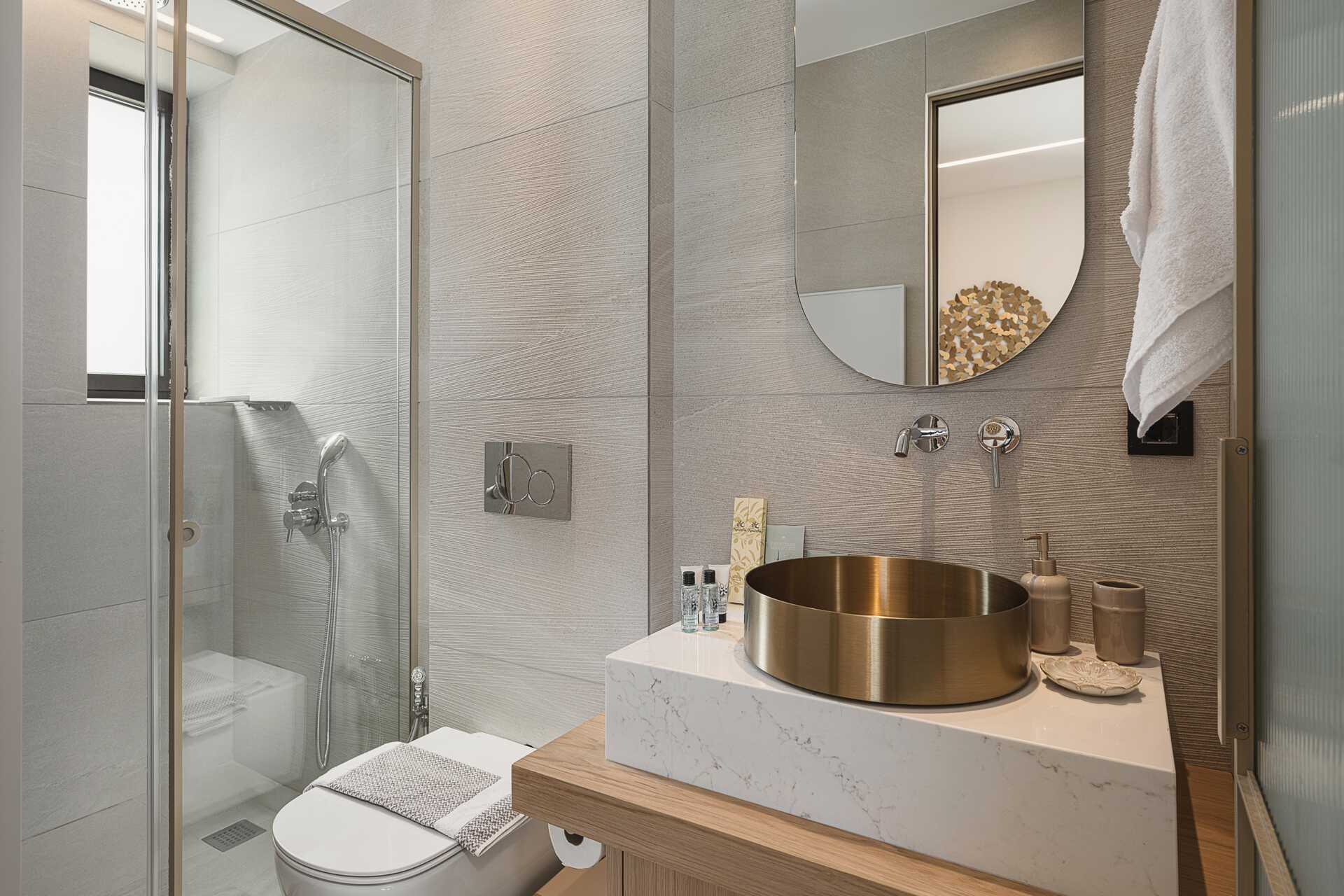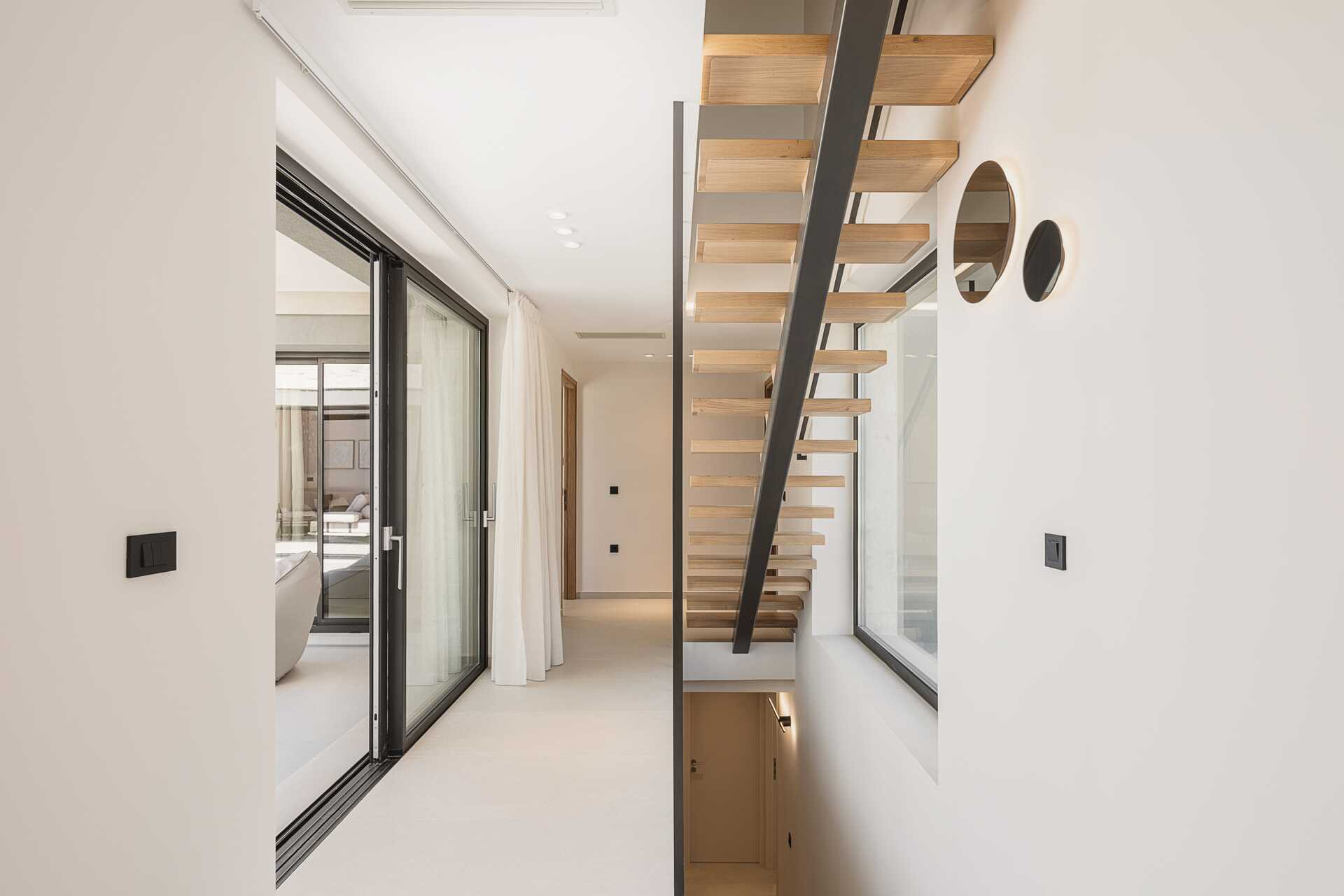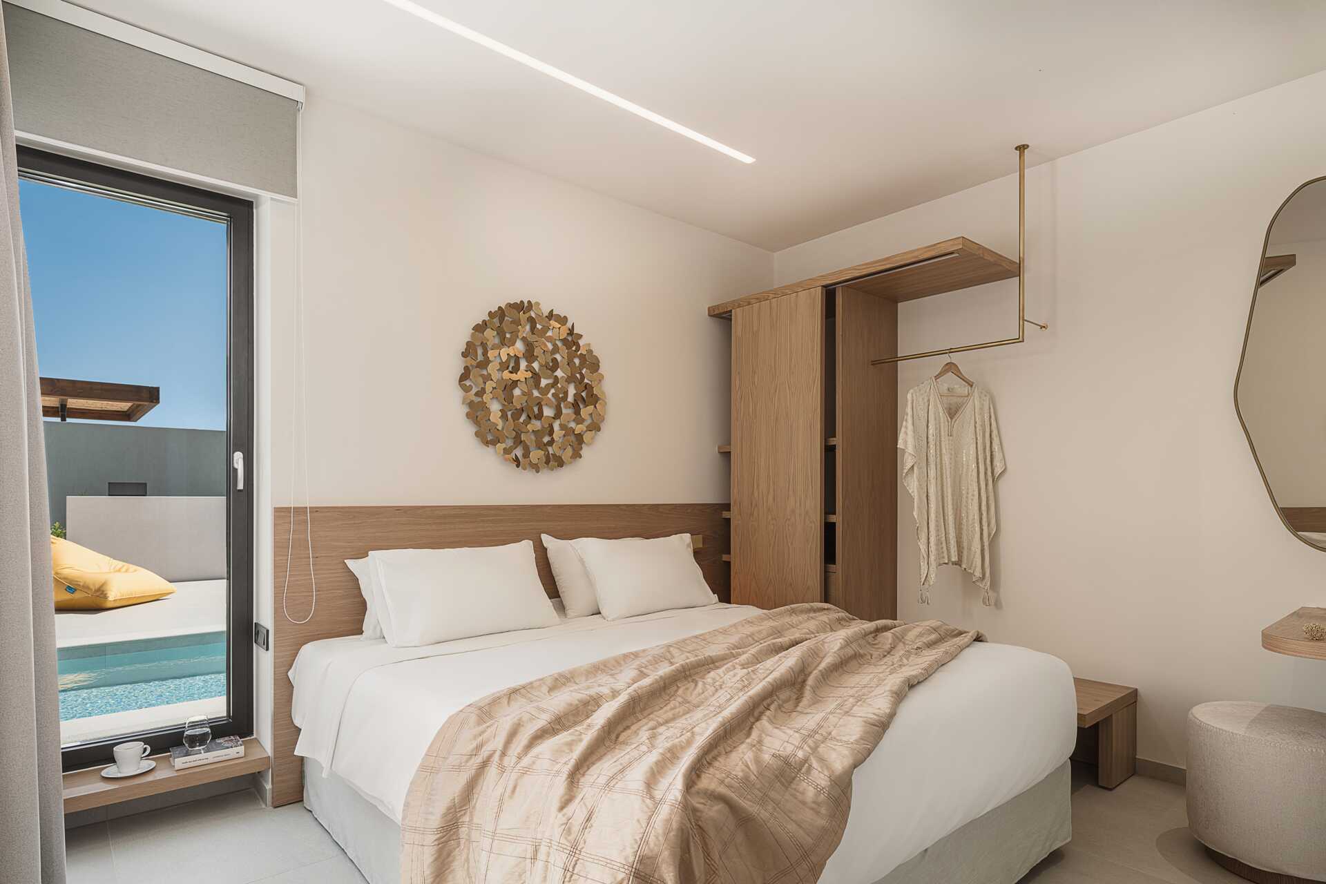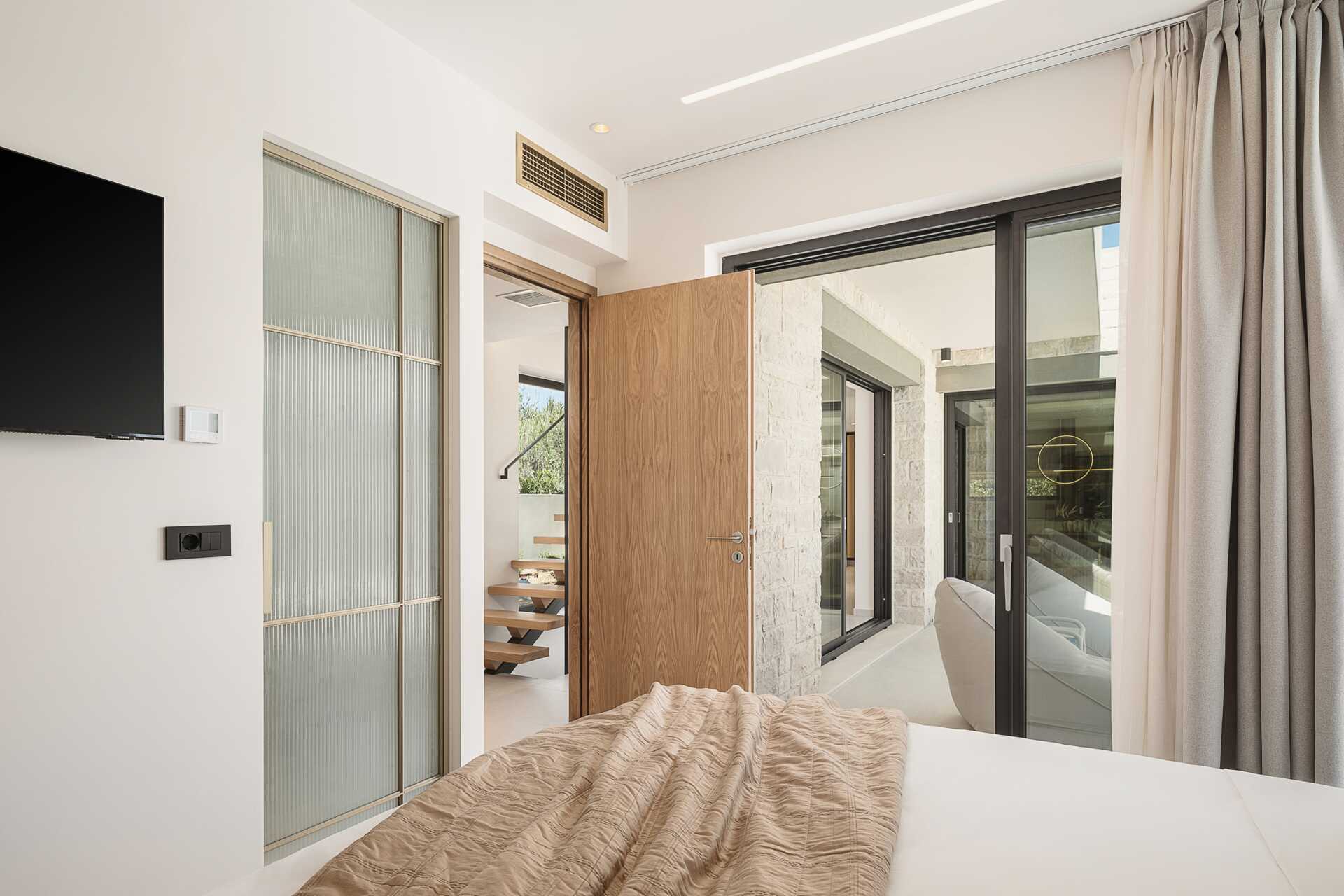 Sisääntulokerroksessa on myös kaksi makuuhuonetta ja jokaisessa makuuhuoneessa on TV Smart TV:llä ja kansainvälisillä kanavilla, kylpyhuone suihkulla ja wc sekä avoin vaatekaappi. Yhdessä makuuhuoneessa on parivuode ja toisessa makuuhuoneessa kaksi erillistä vuodetta. Yläkerrassa on isompi makuuhuone parivuoteella, kylpyhuone suihkulla ja wc sekä älytelevisio ja kansainväliset kanavat. Siellä on myös suuri kalustettu terassi, jossa on poreallas jopa viidelle hengelle.