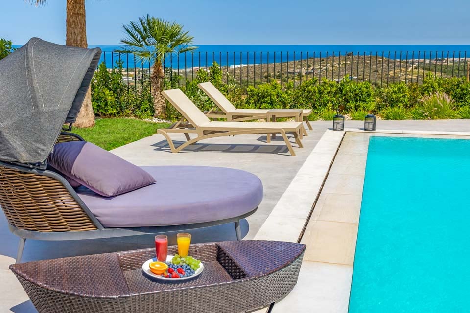 Vietä koko päivä rentoutuen omalla uima-altaallasi ja ihaillen upeaa näkymää valtavalle merelle – rauhallisempaa iltapäivää ei voi olla. Pulahda läheistesi kanssa keskipäivän helteessä tai pulahda aamun valossa tai hämärän alla – oma uima-allas on käytettävissäsi milloin tahansa. Luo unohtumattomia muistoja yhdessä auringon alla ja nauti kaikesta, mitä huvilaloma Kreetalla tarjoaa – on helppo omaksua elämäsi loma. Kuivaa itsesi uima-altaassa ja ota rusketustasi uima-altaan aurinkotuoleilla – täydellinen paikka katsella tuntien kulumista Välimeren tuijottaessa takaisin. Maalauksellinen ei ole lähelläkään sitä!