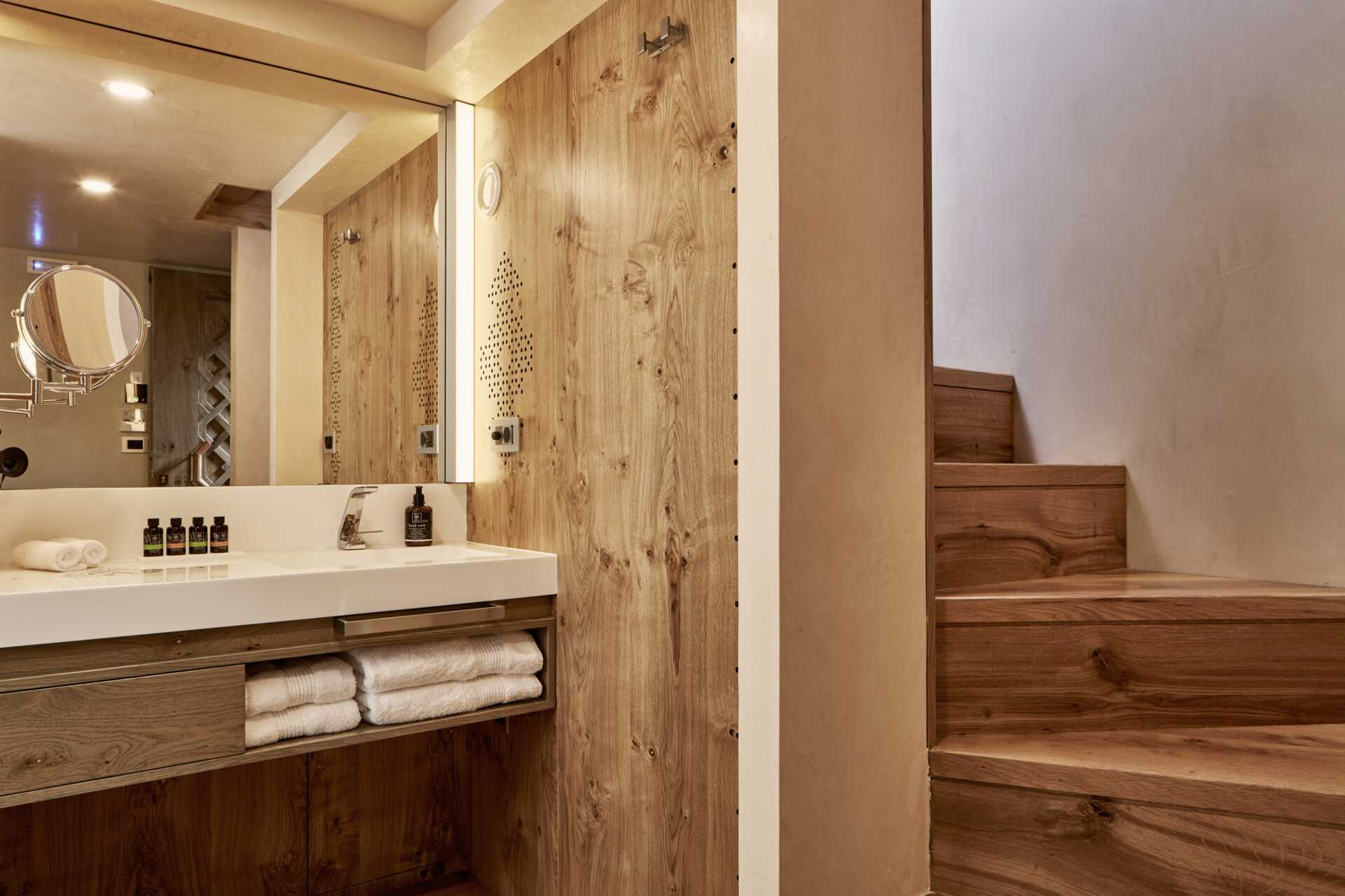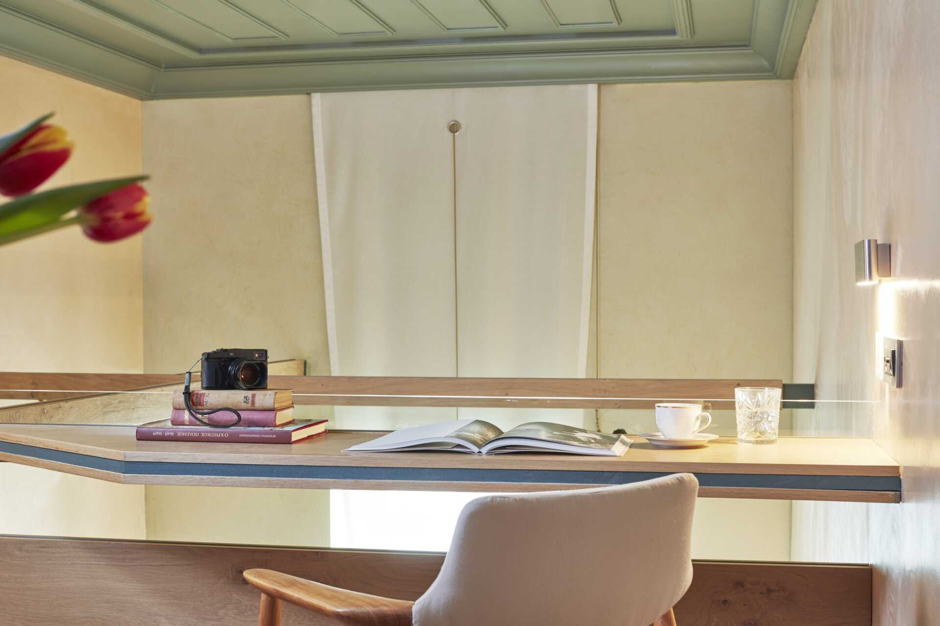 Deluxe-sviitti, ilman ulkotilaa. Ikkunasta näkymä venetsialaiseen satamaan ja merelle. Sisääntulokerroksessa on yhdistetty makuuhuone ja olohuone sekä kylpyhuone ja yläkerrassa oleskelutila, jossa työpöytä ja sohva - avoin pohjaratkaisu huonealueiden väliin. Parivuode. Tyynymenu. Minibaari. Espresso kahvinkeitin. Tv kansainvälisillä kanavilla. Kylpytakit ja tossut. Hiustenkuivain. Kylpyamme tai suihku ja wc. Siivous 7 krt/viikko.