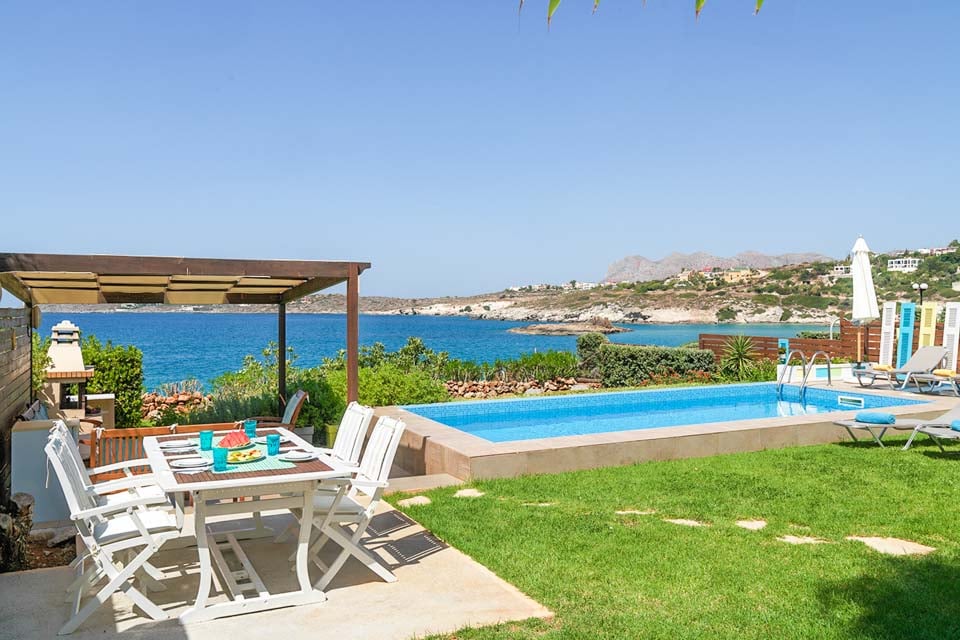 Villa Anemos Kalathas tarjoaa upean uima-altaan, josta on merinäköala, sekä runsaasti auringonottoalueita nurmikolla ja laatoilla terassialueilla. Lisäksi siellä on varjoisa grilli ja ulkoruokailutila, josta voit nauttia upeista näkymistä ja upeista auringonlaskuista.