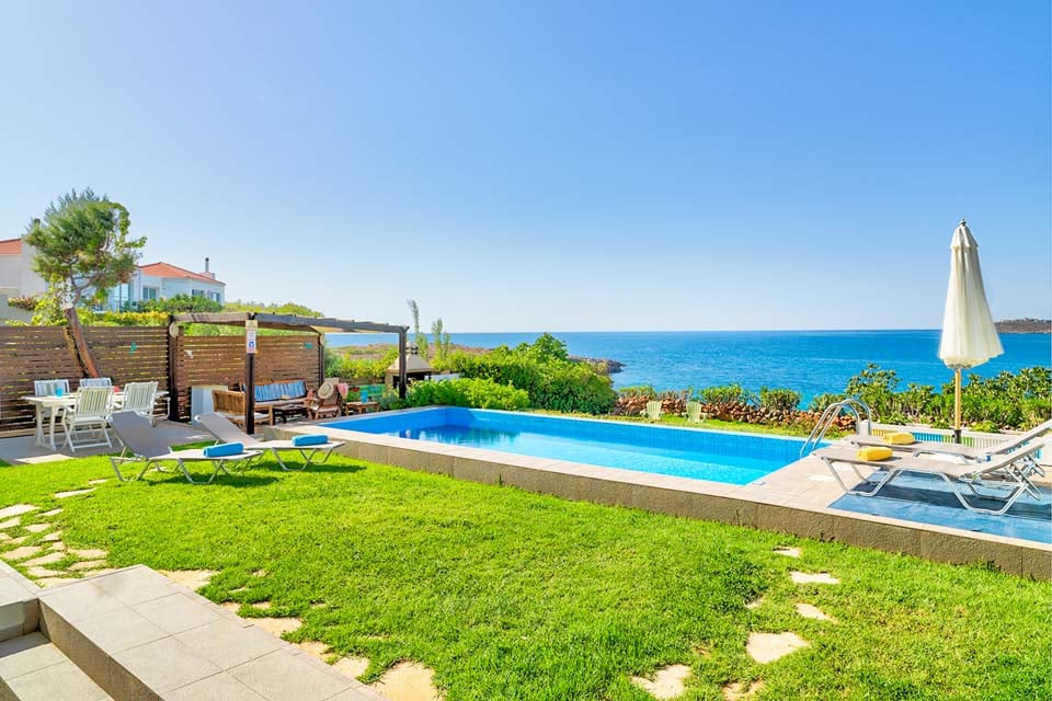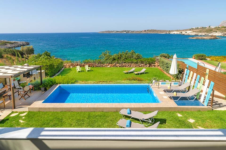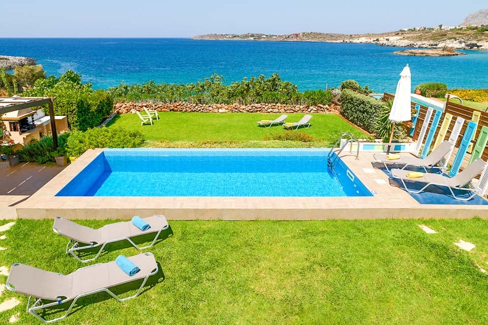 Tämä merenrantahuvila sijaitsee omassa kauniissa, kypsässä puutarhassaan vain 11 km:n päässä upeasta Hanian historiallisesta kaupungista. Tämä huvila sijaitsee Akrotirin alueen laidalla Hanian maakunnassa, ja sieltä on avoimet merinäköalat uima-altaalta ja terassialueilta sekä pääoleskelutilasta. Kalathasin hiekkaranta on vain muutaman metrin päässä. Lyhyen kävelymatkan päässä rannalta löydät vuokrattavia aurinkotuoleja ja -varjoja, joissa voit uida kauniissa kirkkaassa vedessä ja nauttia juomia ja välipaloja rantakadun tavernassa.