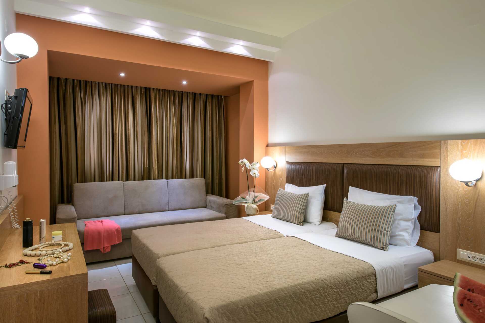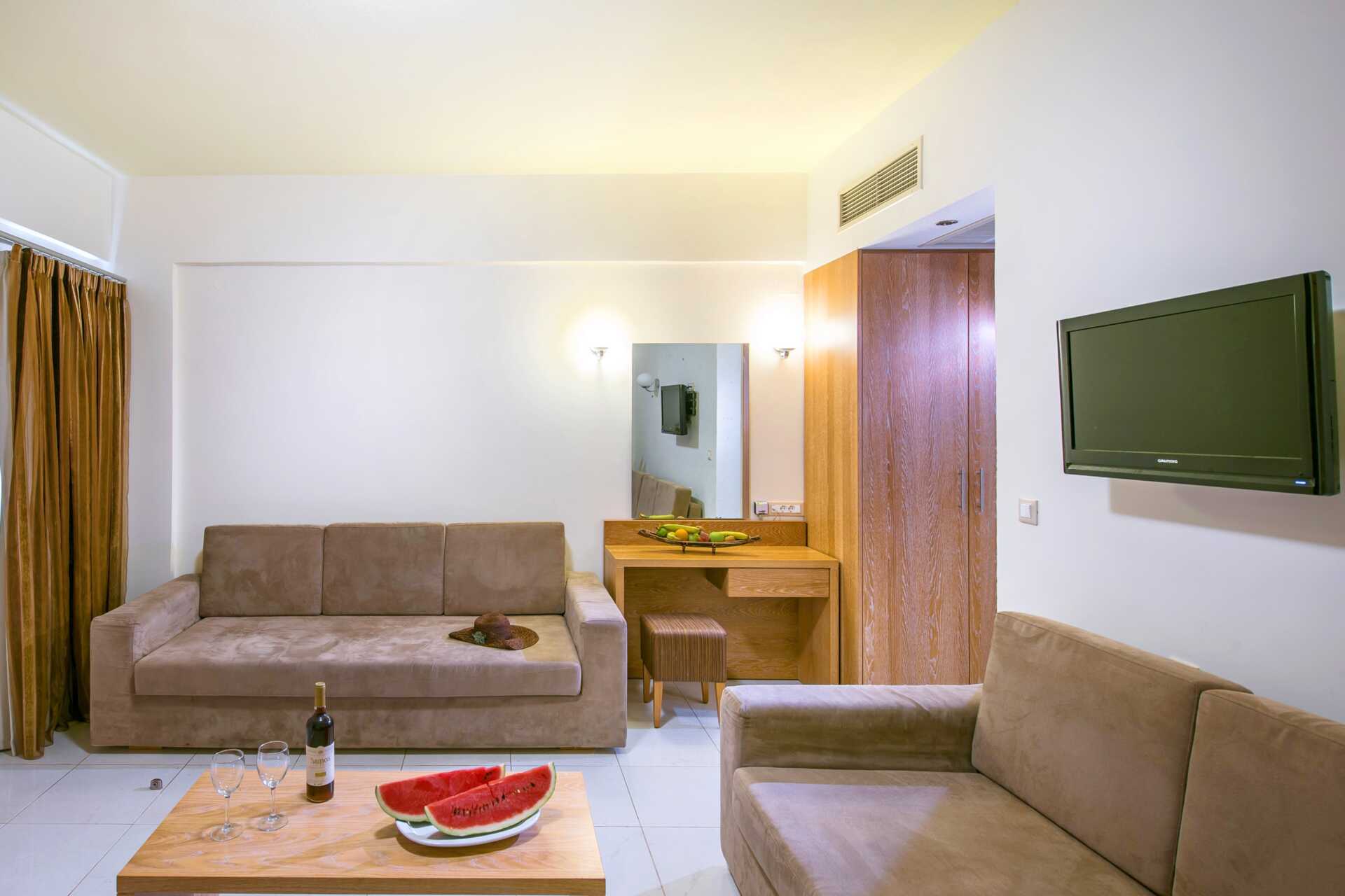 Superior-yksiö, jossa on parveke tai terassi. Yhdistetty makuuhuone ja minikeittiö. Kaksi yhden hengen sänkyä. Mahdollisuus lisävuoteeseen nojatuolissa tai kokoontaitettavassa sängyssä. Minikeittiössä keittolevyt, jääkaappi, vedenkeitin, mikro ja yksinkertainen keittiövarustus. Maksuton wifi. Ilmastointi ja tallelokero lisämaksusta. Tv kansainvälisillä kanavilla. Hiustenkuivain. Kylpyhuoneessa suihku ja wc. Siivous 2 krt/viikko.