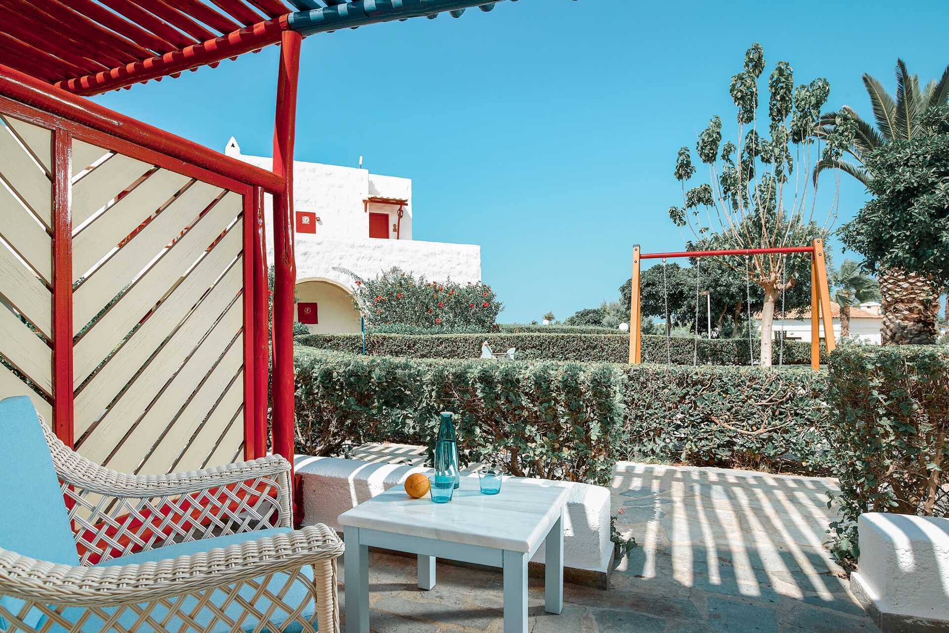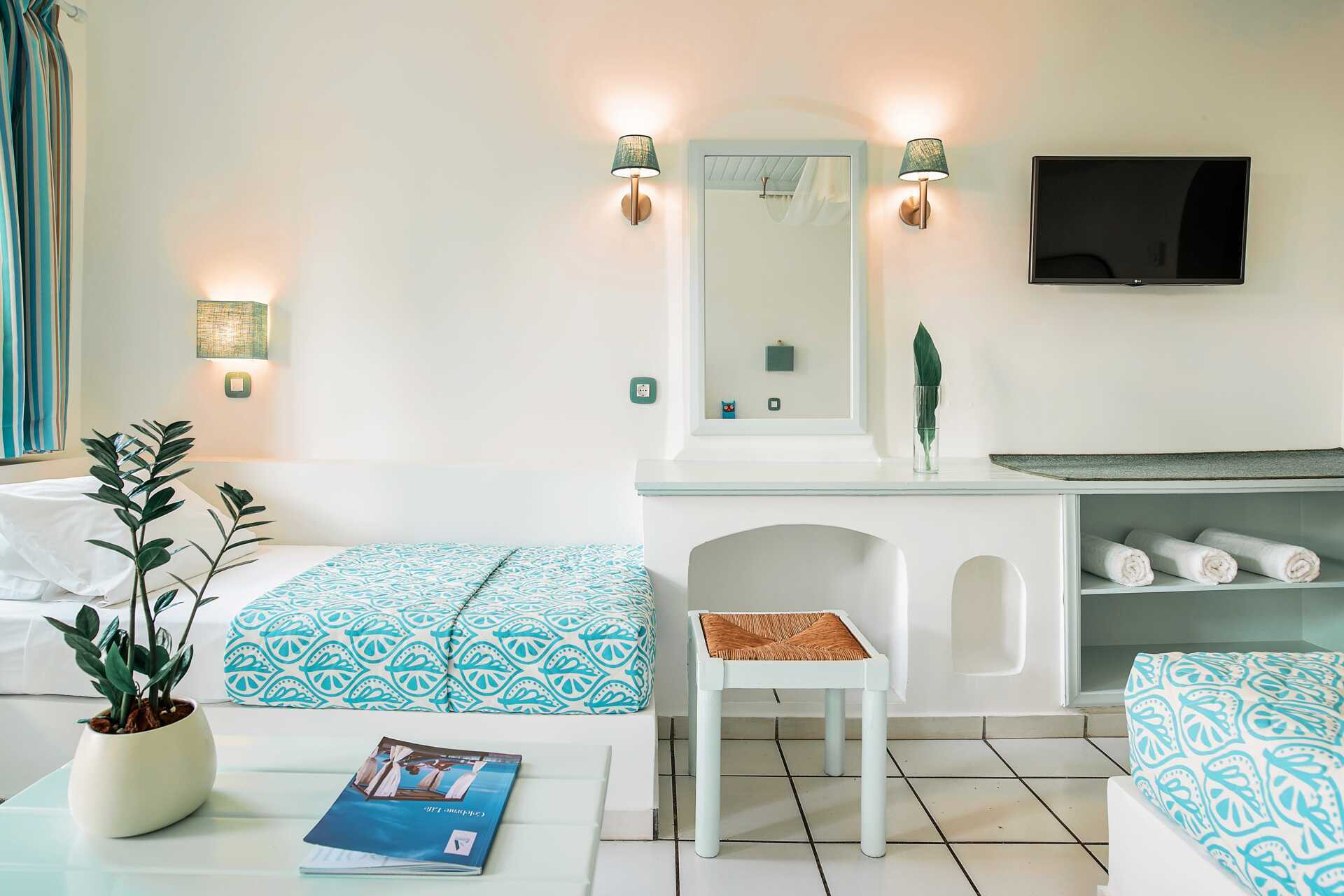 Kahden hengen huone bungalowissa, jossa parveke tai terassi merinäköalalla. Yksi parivuode tai kaksi erillistä vuodetta. Lisävuodemahdollisuus vuodesohvasta. Maksuton wifi, ilmastointi ja tallelokero. Minibaari sisältyy hintaan ja täytetään joka toinen päivä. Vedenkeitin, kahvia ja teetä. Tv kansainvälisillä kanavilla. Hiustenkuivain. Kylpyhuoneessa amme ja wc. Siivous 7 krt/viikko. Alle 2-vuotiaat lapset lasketaan lisävuoteella majoittuviksi henkilöiksi.