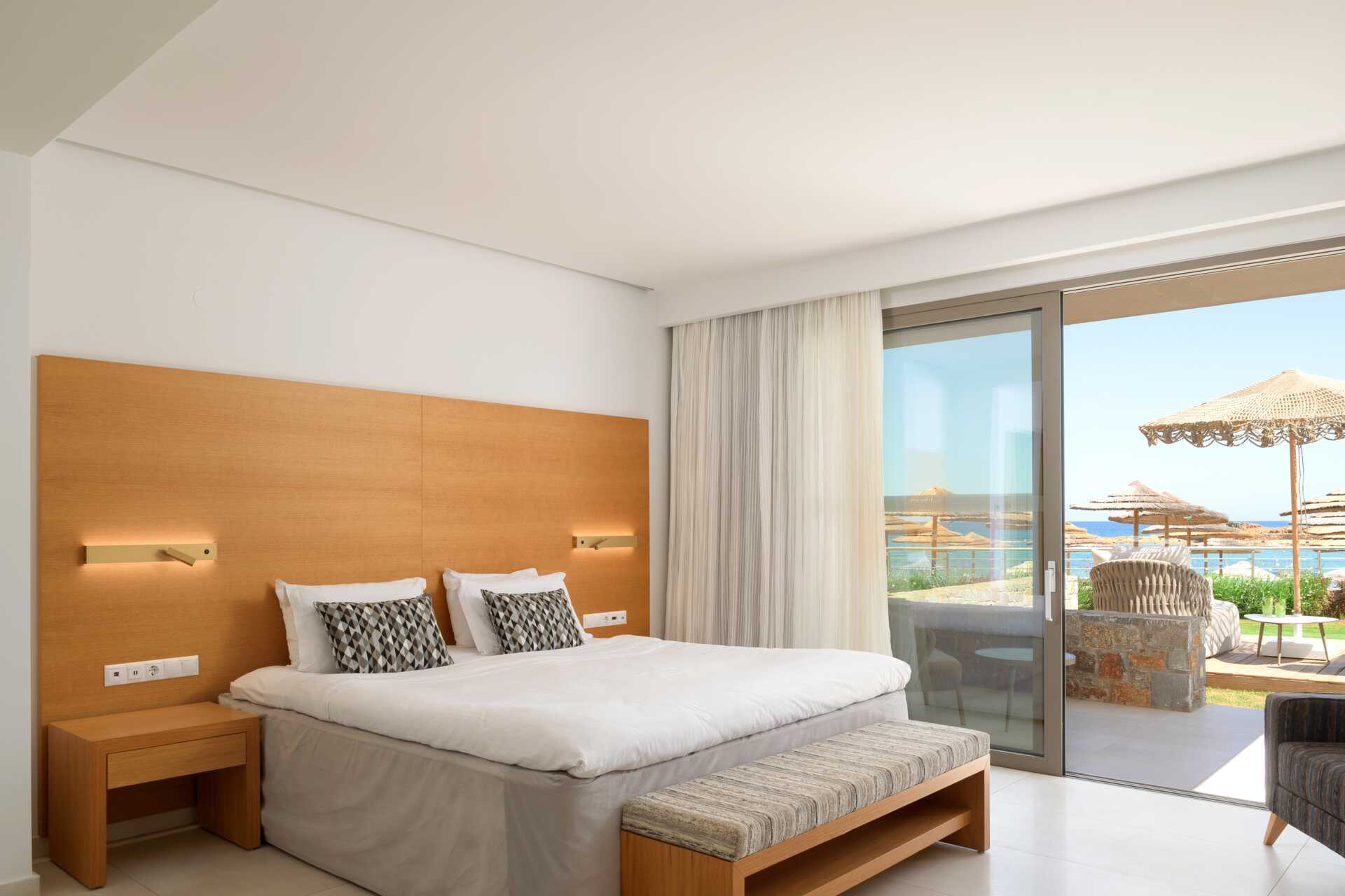 Juniorsviitti Seafront ja parveke tai terassi. Huoneet sijaitsevat rannalla ja niistä on upeat merinäkymät. Parivuode. Maksuton wifi, tallelokero ja ilmastointi. Jääkaappi – vesipullo sisältyy hintaan ja täytetään päivittäin. Vedenkeitin, kahvia ja teetä. Nespresso-keitin, kapselit sisältyvät hintaan. Tv kansainvälisillä kanavilla. Kylpytakit ja tossut. Kylpyhuoneessa kylpyamme, erillinen suihku ja wc. Siivous 7 krt/viikko.