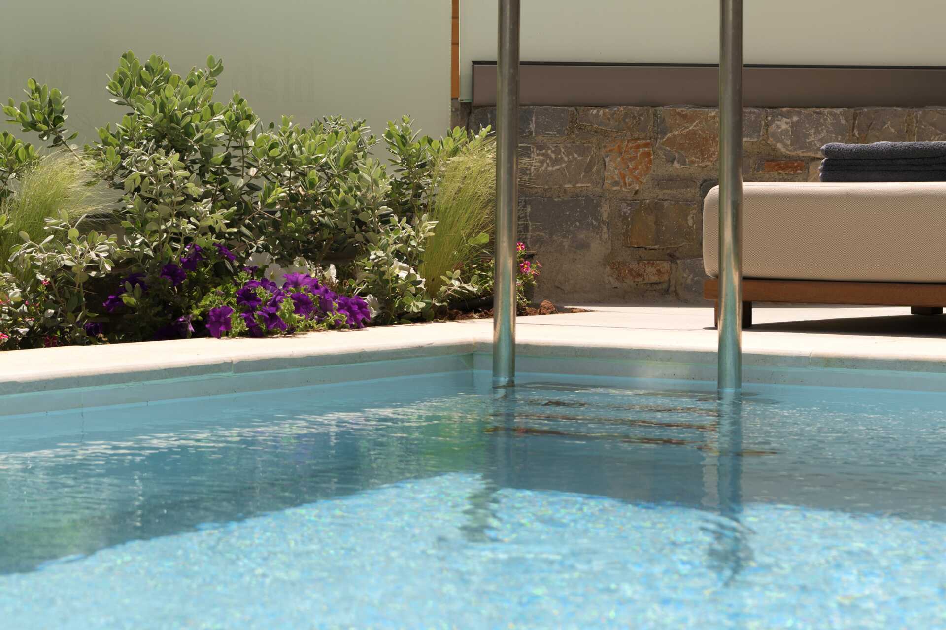 Juniorsviitti jaetulla altaalla ulkotilassa. Sviiteissä on avoin pohjaratkaisu kylpyhuoneeseen. Parivuode. Lisävuodemahdollisuus vuodesohvasta. Maksuton wifi, tallelokero ja ilmastointi. Jääkaappi – vesipullo sisältyy hintaan ja täytetään päivittäin. Vedenkeitin, kahvia ja teetä. Nespresso-keitin, kapselit sisältyvät hintaan. Tv kansainvälisillä kanavilla. Kylpytakit ja tossut. Kylpyhuoneessa kylpyamme, erillinen suihku ja wc. Siivous 7 krt/viikko.