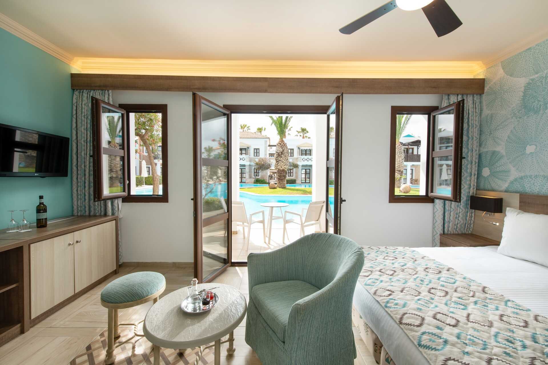 Kahden hengen huone bungalowissa, jossa on parveke tai terassi, joista osasta on merinäköala tai rajoitettu merinäköala. Parivuode tai kaksi yhden hengen sänkyä. Lisävuodemahdollisuus vuodesohvasta. Maksuton wifi, ilmastointi ja tallelokero. Minibaari, pullo viiniä sisältyy saapumisen yhteydessä ja virvoitusjuomat täytetään päivittäin. Vedenkeitin, kahvia ja teetä. Tv kansainvälisillä kanavilla. Kylpytakit ja tossut. Hiustenkuivain. Kylpyhuoneessa kylpyamme tai suihku ja wc. Siivous 7 krt/viikko. Alle 2-vuotiaat lapset lasketaan lisävuoteella majoittuviksi henkilöiksi.