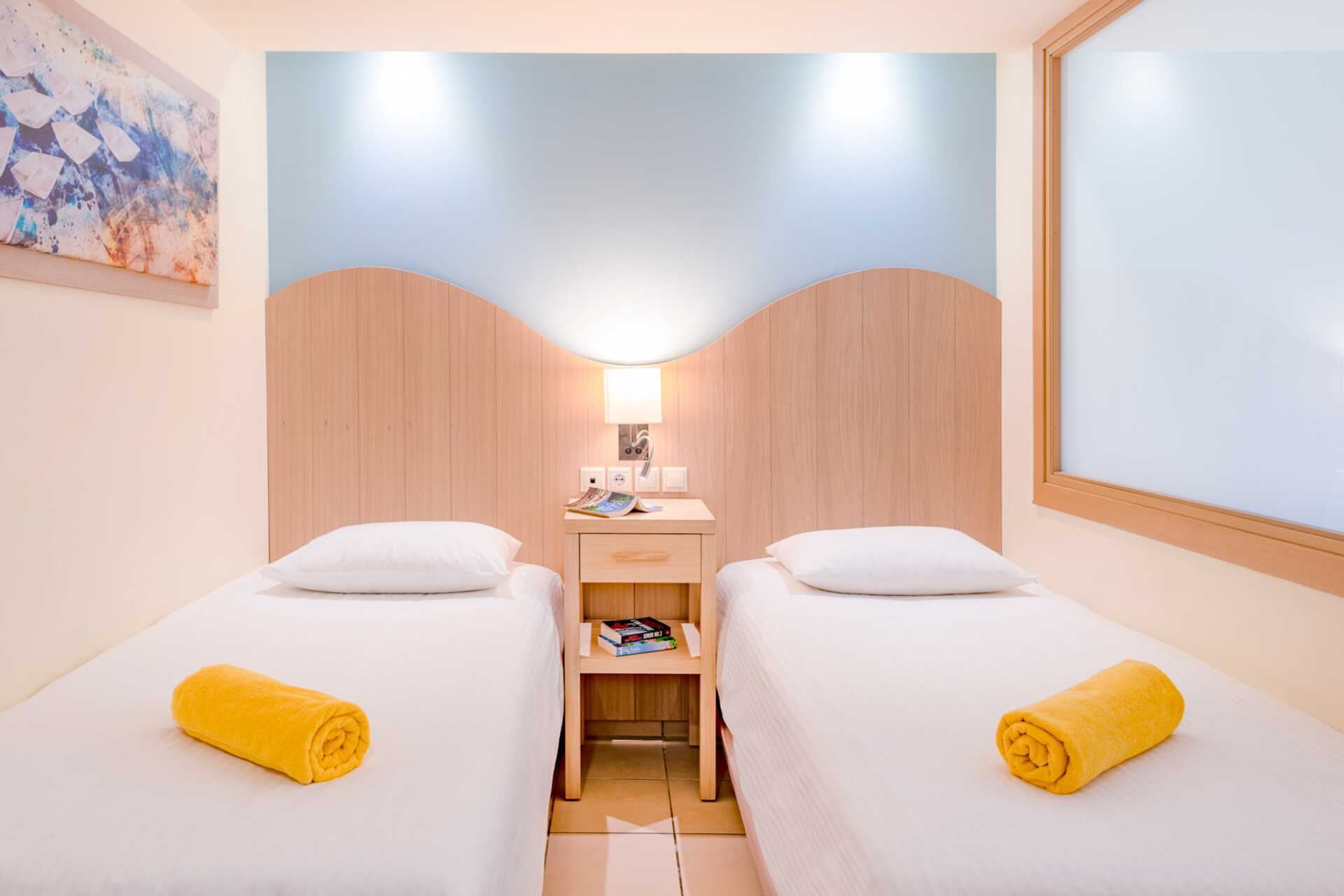 Yhden hengen huone parvekkeella tai terassilla. Yksi sänky. Maksuton wifi, ilmastointi ja tallelokero. Jääkaappi – kaksi vesipulloa sisältyy hintaan ja täytetään päivittäin. Mikroaaltouuni. Vedenkeitin, kahvia ja teetä. Tv kansainvälisillä kanavilla. Hiustenkuivain. Kylpyamme tai suihku ja wc. Siivous 7 krt/viikko.
