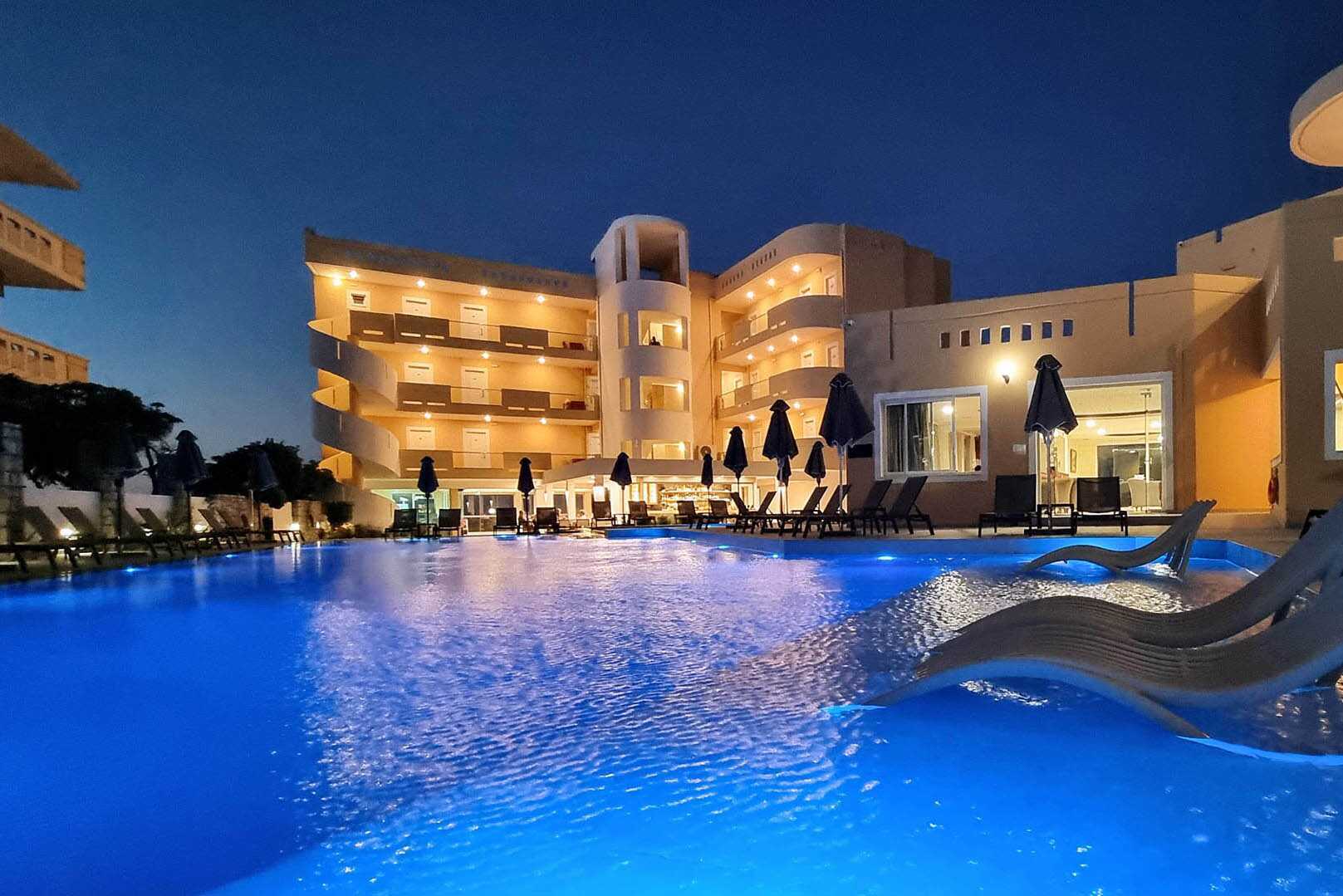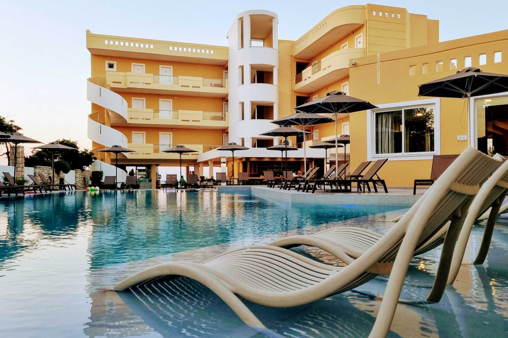 Hotelli koostuu kolmesta rakennuksesta, joista kahdessa on hissi. Minimarket. Jos tutustut Kreetaan vuokra-autolla, hotellilla on mahdollisuus ulkopysäköintiin. Noin 600 metriä rantakadulle, jossa on tavernoja ja kahviloita.
