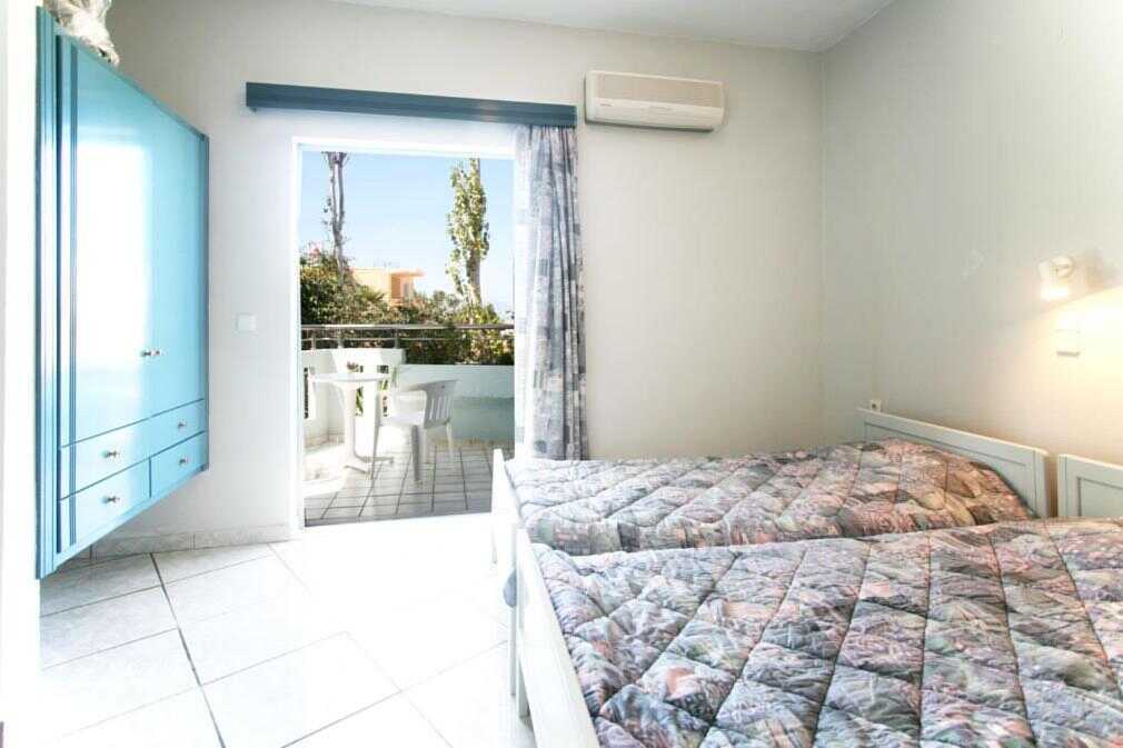 Yksiö, parvekkeella tai terassilla. Yhdistetty makuuhuone ja minikeittiö. Yksi erillinen vuode tai kaksi erillistä vuodetta. Lisävuodemahdollisuus vuodesohvasta. Minikeittiössä keittolevyt, jääkaappi, kahvinkeitin, vedenkeitin ja yksinkertainen keittiövarustus. Maksuton wifi. Tallelokero ja ilmastointi lisämaksulla. Silitysrauta. Kylpyamme tai suihku ja wc. Siivous 6 krt/viikko.