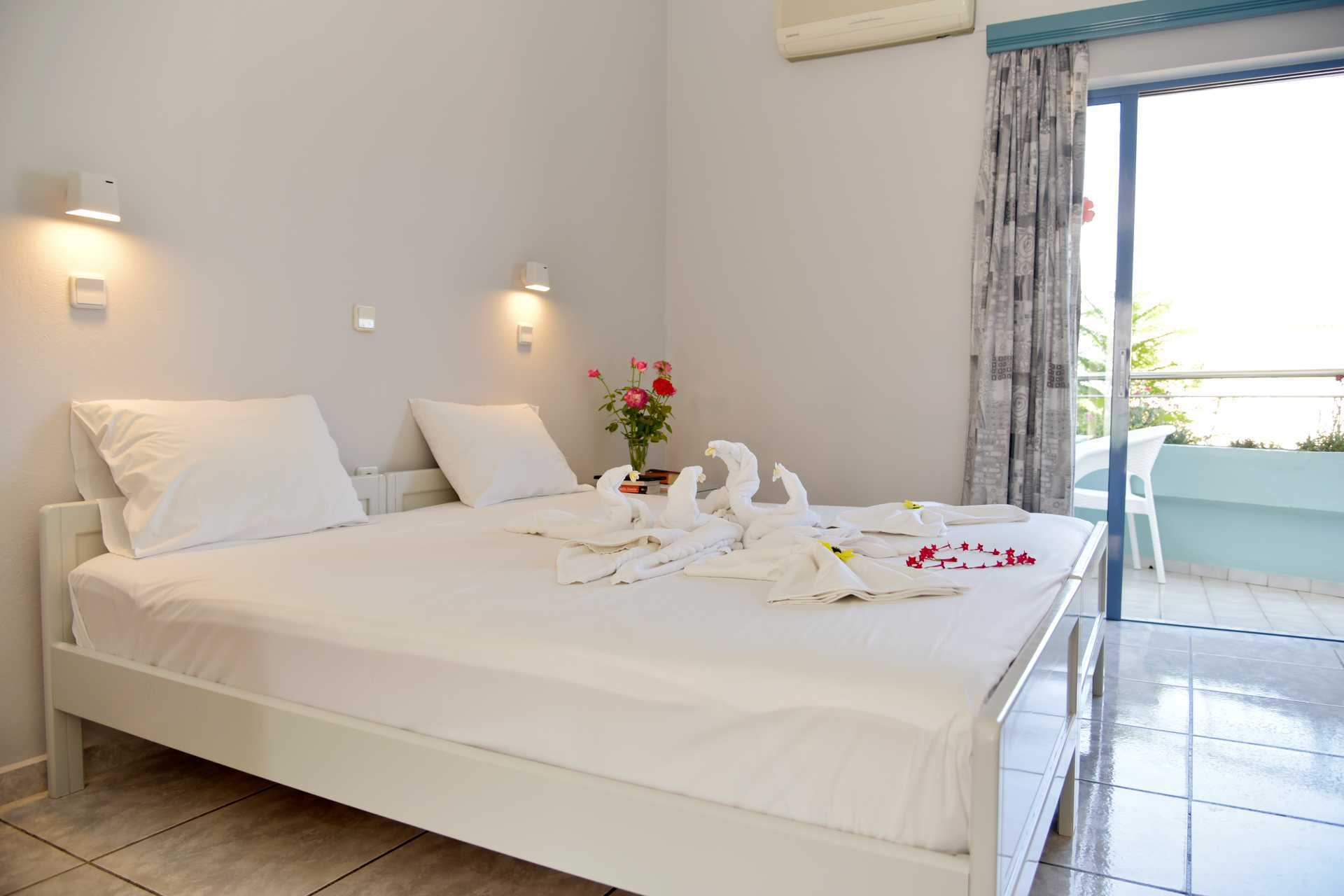 Kaksio parvekkeella tai terassilla. Yksi makuuhuone ja yhdistetty olohuone ja minikeittiö. Parivuode tai kaksi yhden hengen sänkyä. Lisävuodemahdollisuus vuodesohvasta. Minikeittiössä keittolevyt, jääkaappi, kahvinkeitin, vedenkeitin ja yksinkertainen keittiövarustus. Maksuton wifi. Ilmastointi ja tallelokero lisämaksusta. Silitysrauta. Kylpyamme tai suihku ja wc. Siivous 6 krt/viikko.