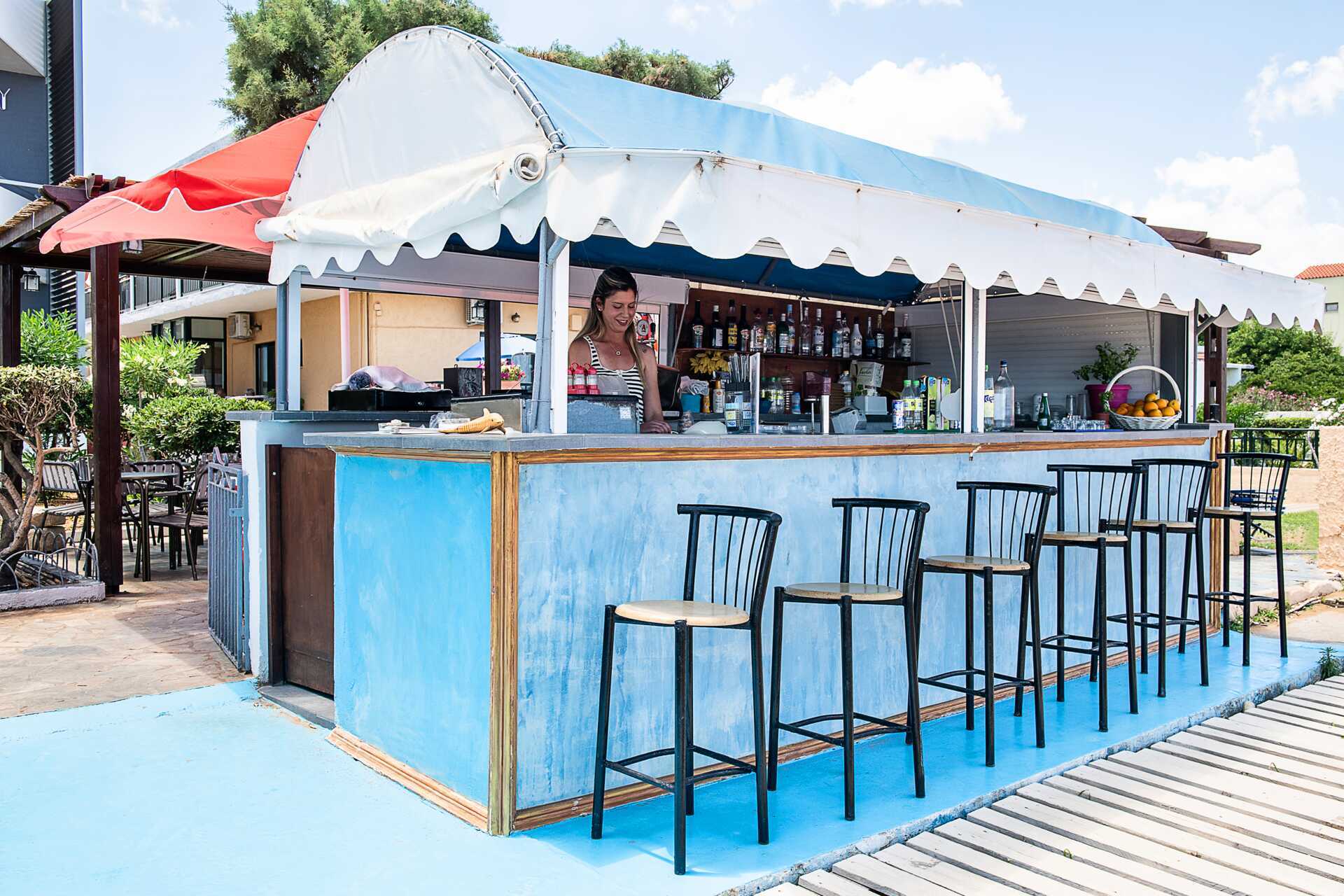 Hotellissa ja aivan rannalla on yhdistetty baari ja ravintola, jossa voit nauttia kevyen aamupala päivän aikana ja nauttia jotain yksinkertaista syötävää ja juotavaa. Aurinkotuolit ja -varjoja lisämaksulla.