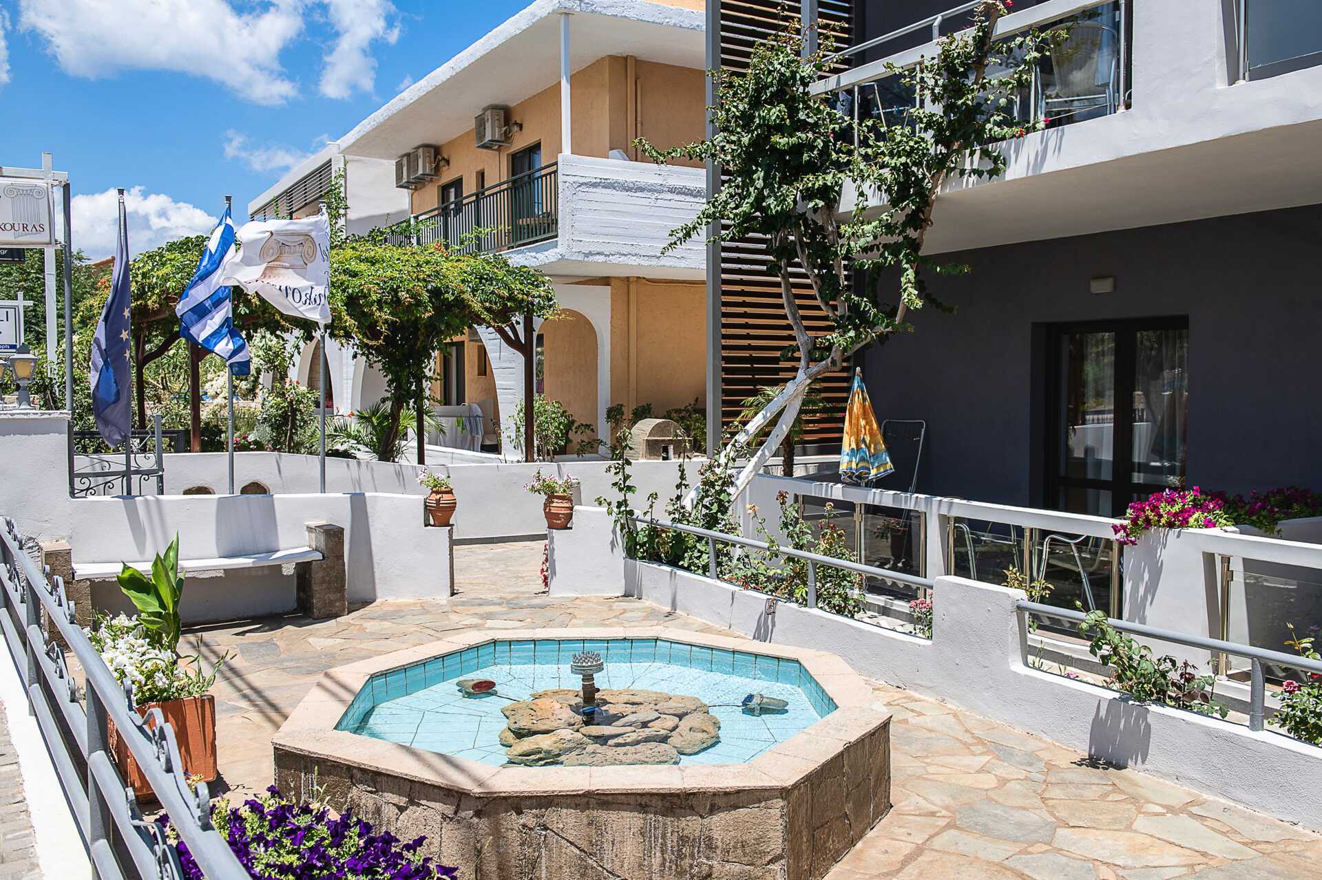 Koukouras Lia sijaitsee suoraan Kato Stalosin pitkällä ja ihanalla hiekkarannalla. Täällä voit majoittua raikkaissa huoneistoissa, joissa on mahdollisuus ruoanlaittoon, tai voit lähteä tutustumaan pääkatuun, jossa ravintolat, baarit, kaupat ja ruokakaupat sijaitsevat kuin helminauha. Hotellin rantabaarissa on tarjolla aamupala, kevyitä aterioita ja juomia päivän aikana.