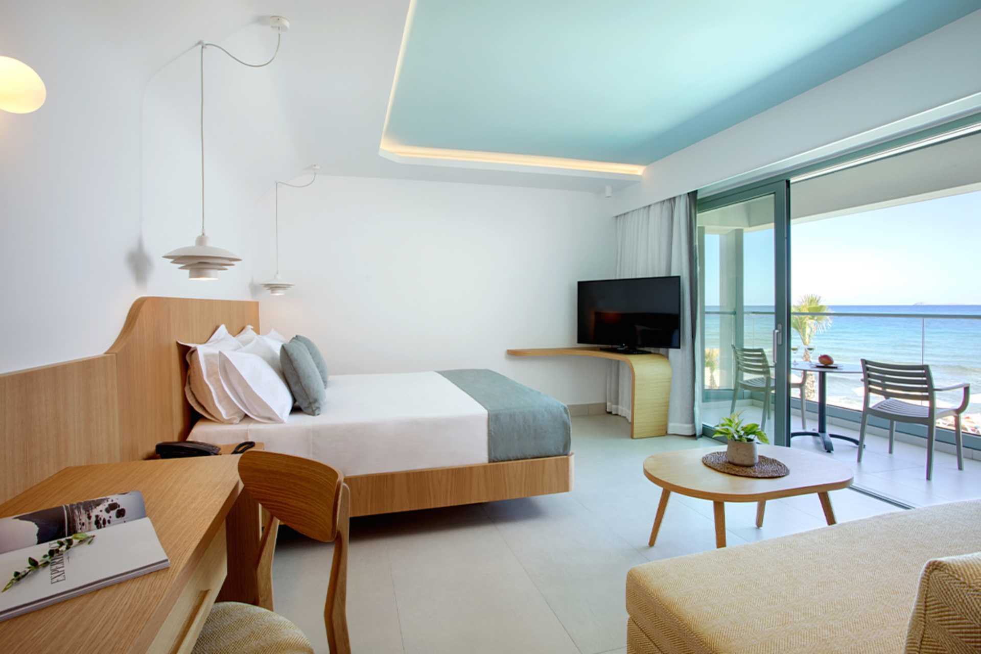 Kahden hengen huoneita, joissa on parveke merinäköalalla. Huoneet sijaitsevat päärakennuksessa. Parivuode tai kaksi yhden hengen vuodetta. Lisävuodemahdollisuus vuodesohvasta. Maksuton wifi, ilmastointi ja tallelokero. Jääkaappi. Vedenkeitin, kahvia ja teetä. Tv kansainvälisillä kanavilla. Hiustenkuivain. Suihku ja wc. Siivous 7 krt/viikko. Alle 2-vuotiaat lapset katsotaan lisävuoteessa majoittuviksi henkilöiksi.