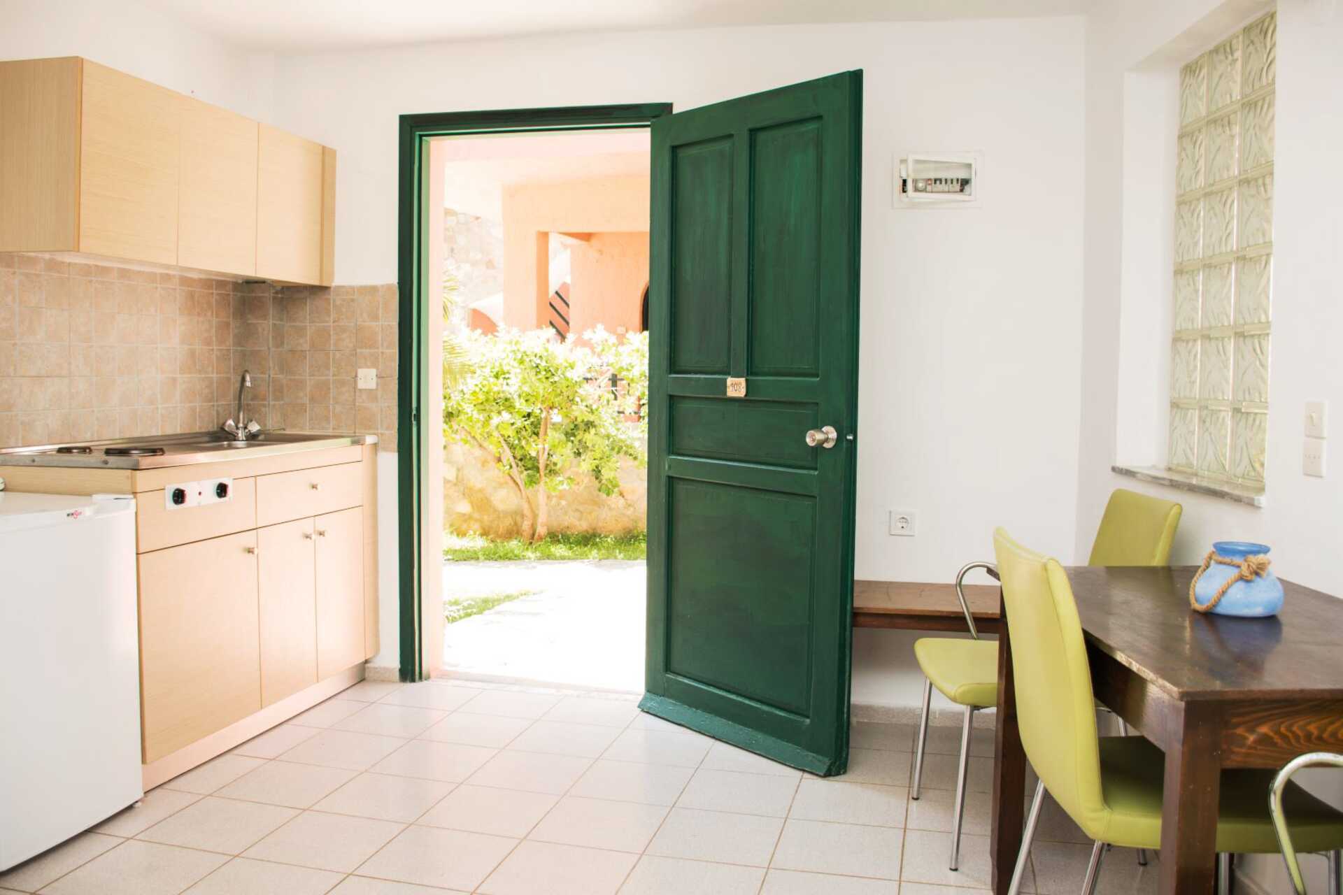 Yksiö, parvekkeella tai terassilla. Yhdistetty makuuhuone ja minikeittiö. Parivuode tai kaksi yhden hengen sänkyä. Minikeittiössä keittolevyt, jääkaappi, vedenkeitin ja yksinkertainen keittiövarustus. Maksuton wifi. Ilmastointi ja tallelokero lisämaksusta. Tv paikallisilla kanavilla. Hiustenkuivain. Suihku ja wc. Siivous 2 krt/viikko.