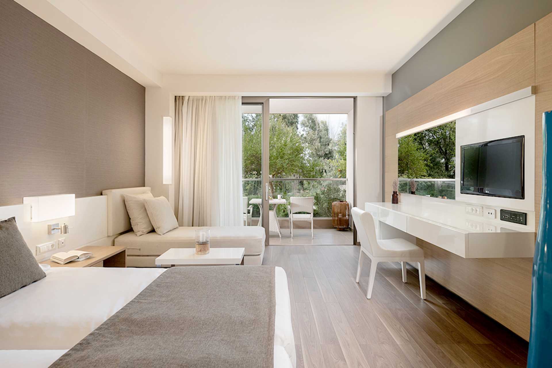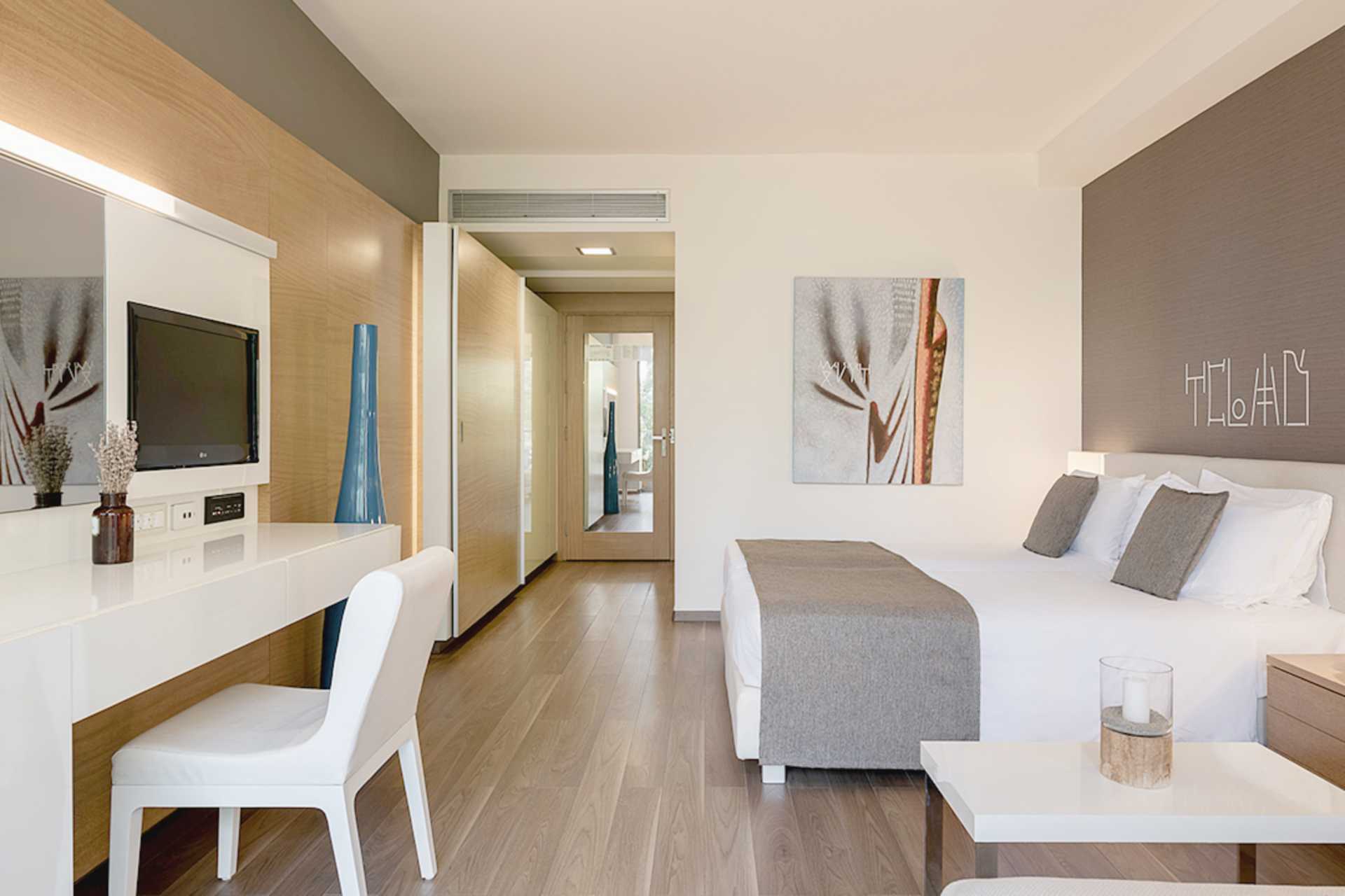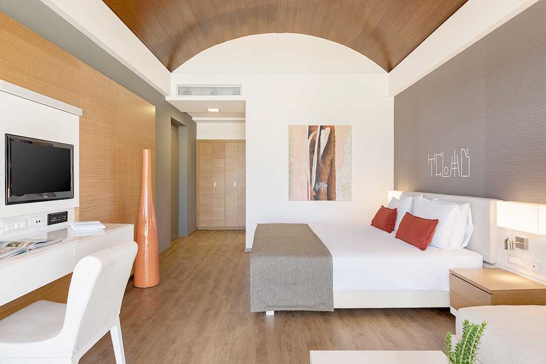 Deluxe -huone, jossa parveke tai terassi ja allasnäköala. Parivuode tai kaksi yhden hengen sänkyä. Lisävuodemahdollisuus vuodesohvasta. Maksuton wifi, ilmastointi ja tallelokero. Minibaari lisämaksulla. Vedenkeitin, kahvia ja teetä. Tv kansainvälisillä kanavilla. Hiustenkuivain. Kylpytakit ja tossut. Kylpyhuoneessa kylpyamme, erillinen suihku ja wc. Siivous 7 krt/viikko. Alle 2-vuotiaat lapset lasketaan lisävuoteella majoittuviksi henkilöiksi.