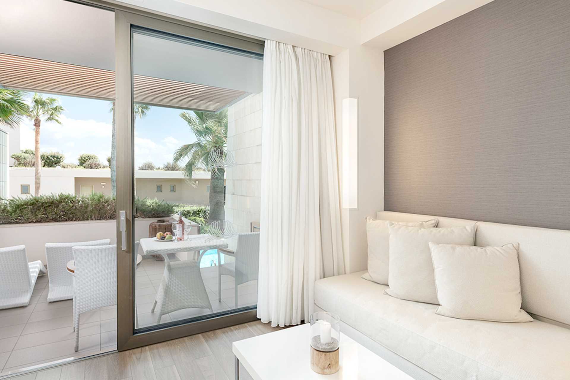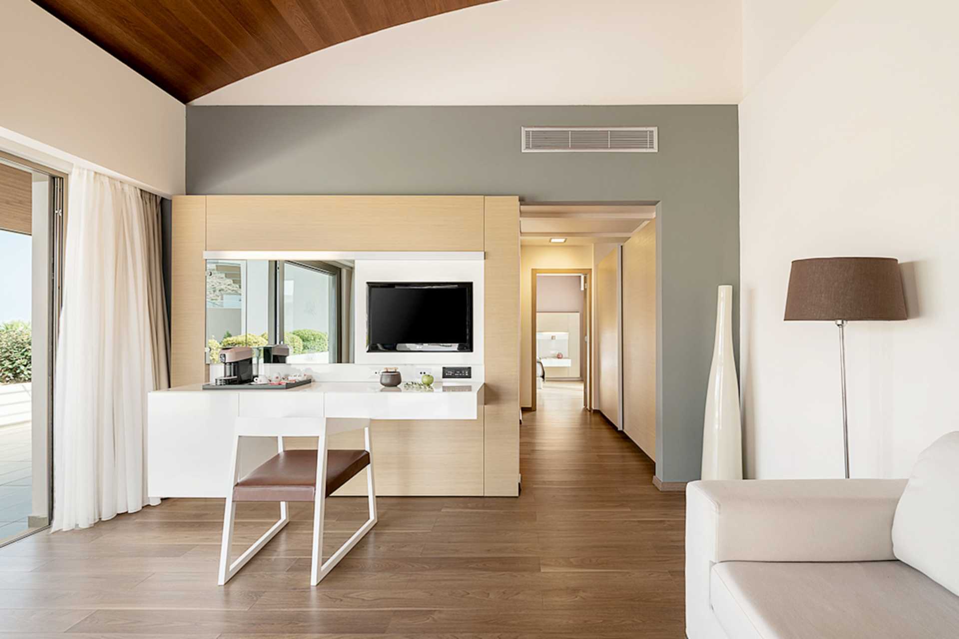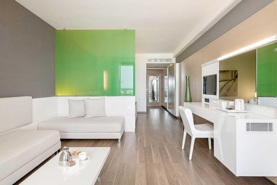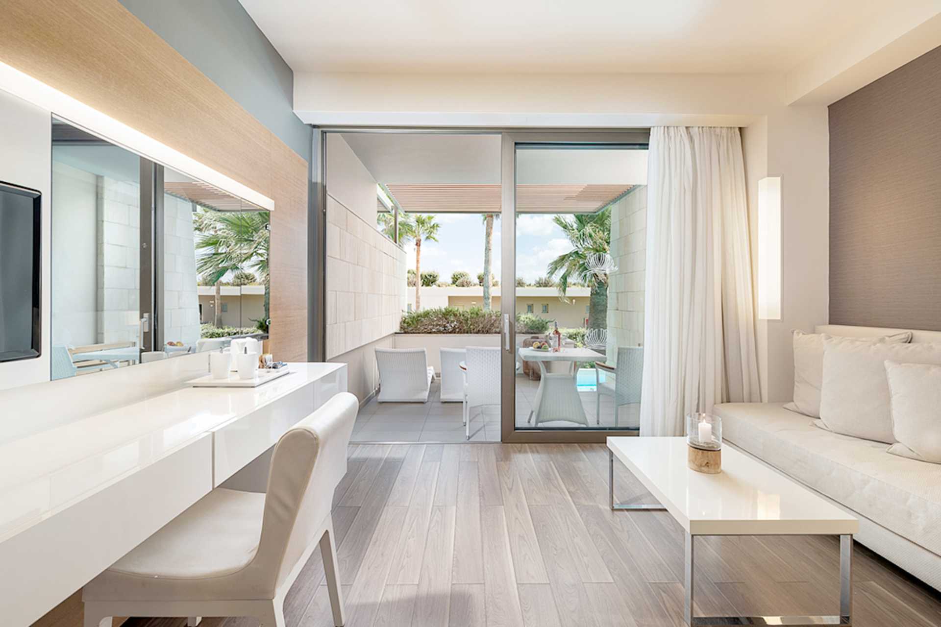 Juniorsviitti Premium oma uima-allas. Portaat altaaseen. Terassilla on aurinkotuolit sekä pöytä ja tuolit. Parivuode. Lisävuodemahdollisuus vuodesohvasta. Tyynymenu. Maksuton wifi, ilmastointi ja tallelokero. Minibaari lisämaksulla. Vedenkeitin, kahvia ja teetä. Tv kansainvälisillä kanavilla. Hiustenkuivain. Kylpytakit ja tossut. Kylpyhuoneessa kylpyamme, erillinen suihku ja wc. Siivous 7 krt/viikko.