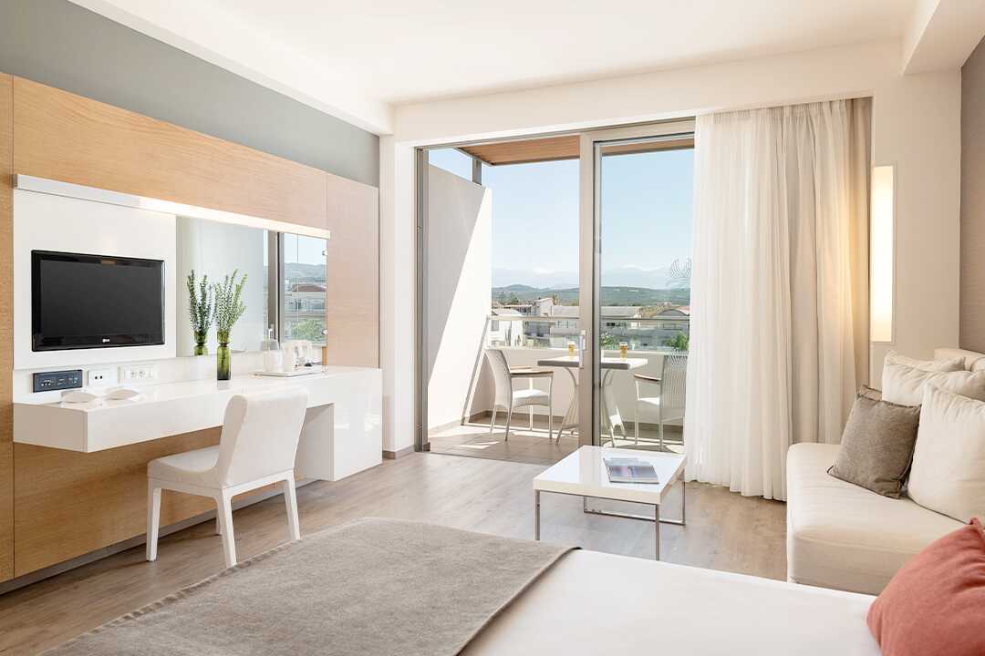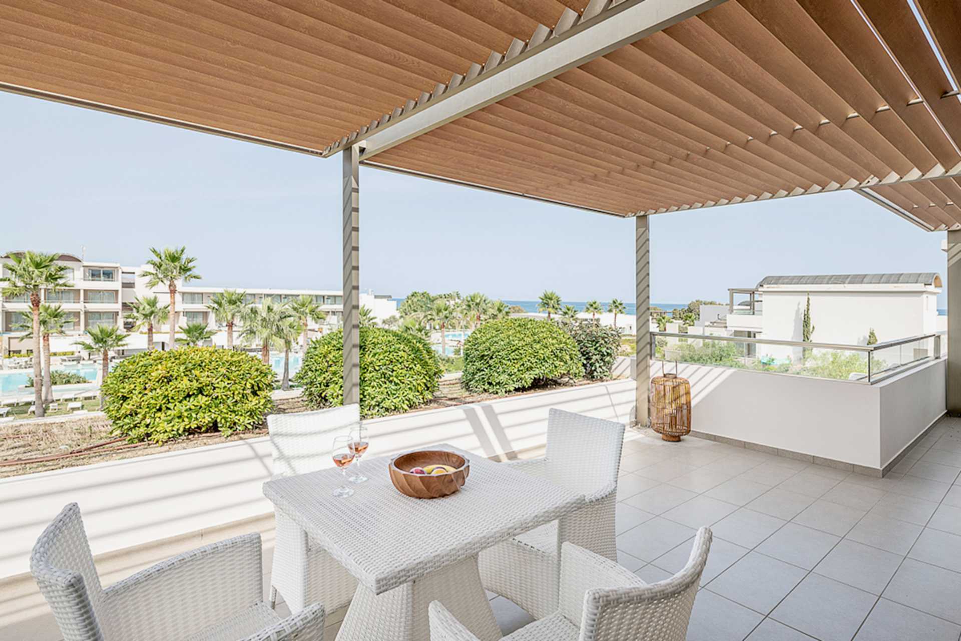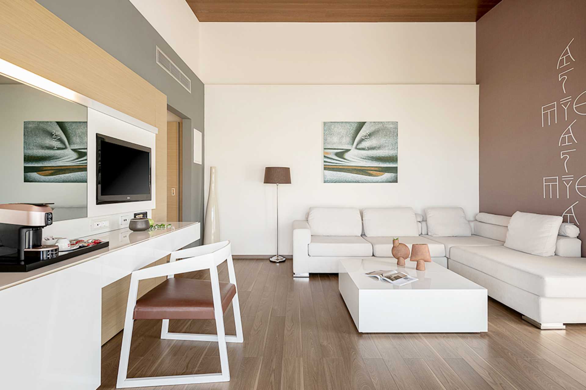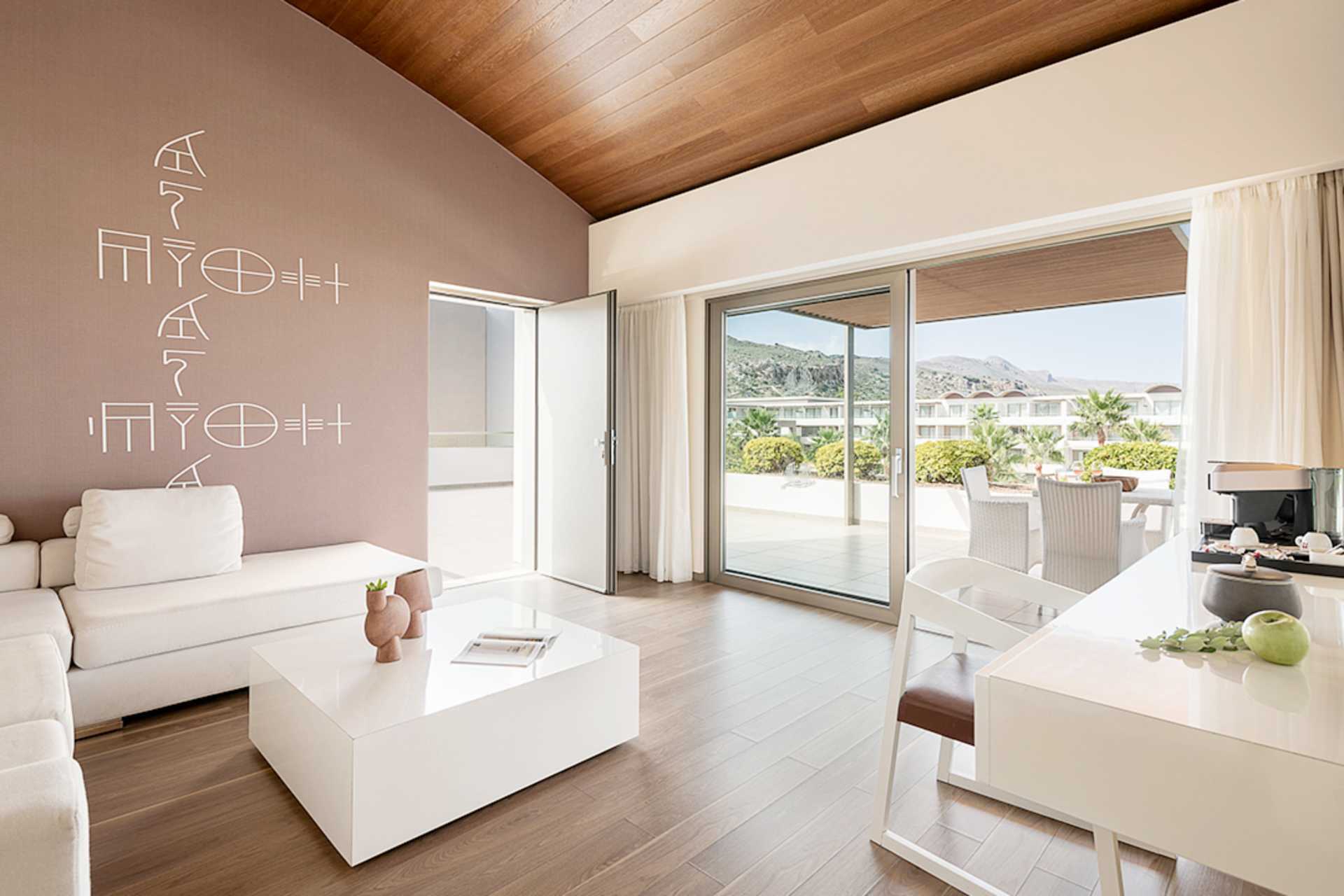 Juniorsviitti Premium oma uima-allas. Portaat altaaseen. Terassilla on aurinkotuolit sekä pöytä ja tuolit. Parivuode. Lisävuodemahdollisuus vuodesohvasta. Tyynymenu. Maksuton wifi, ilmastointi ja tallelokero. Minibaari lisämaksulla. Vedenkeitin, kahvia ja teetä. Tv kansainvälisillä kanavilla. Hiustenkuivain. Kylpytakit ja tossut. Kylpyhuoneessa kylpyamme, erillinen suihku ja wc. Siivous 7 krt/viikko.