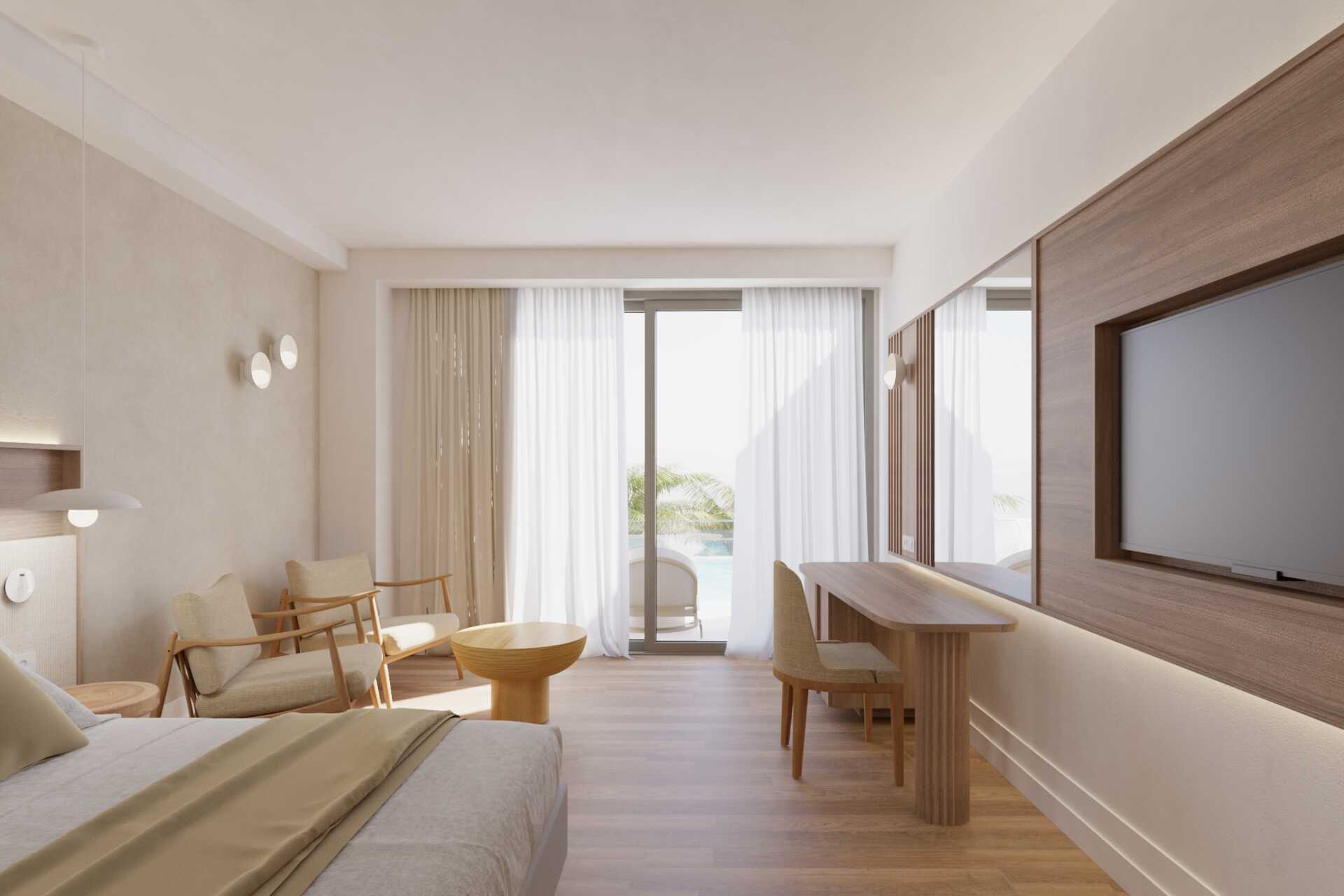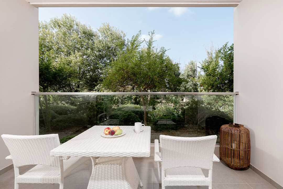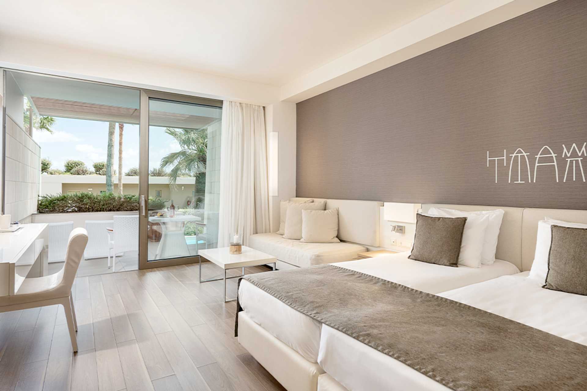 Kahden hengen huone, jossa uloskäynti jaetulle uima-altaalle maaterassilta. Portaat altaaseen. Terassilla on aurinkotuoleja sekä pöytiä ja tuoleja. Parivuode tai kaksi yhden hengen sänkyä. Lisävuodemahdollisuus vuodesohvasta. Maksuton wifi, ilmastointi ja tallelokero. Minibaari lisämaksulla. Vedenkeitin, kahvia ja teetä. Tv kansainvälisillä kanavilla. Hiustenkuivain. Kylpytakit ja tossut. Kylpyhuoneessa kylpyamme, erillinen suihku ja wc. Siivous 7 krt/viikko. Alle 2-vuotiaat lapset lasketaan lisävuoteella majoittuviksi henkilöiksi.