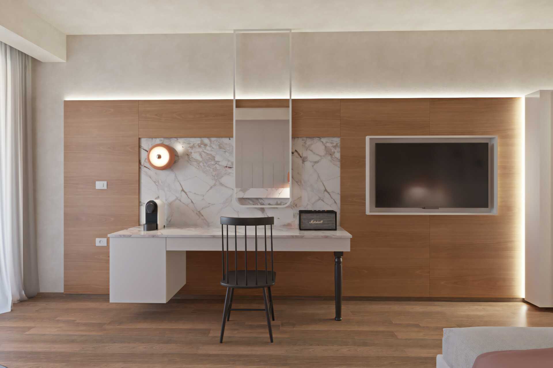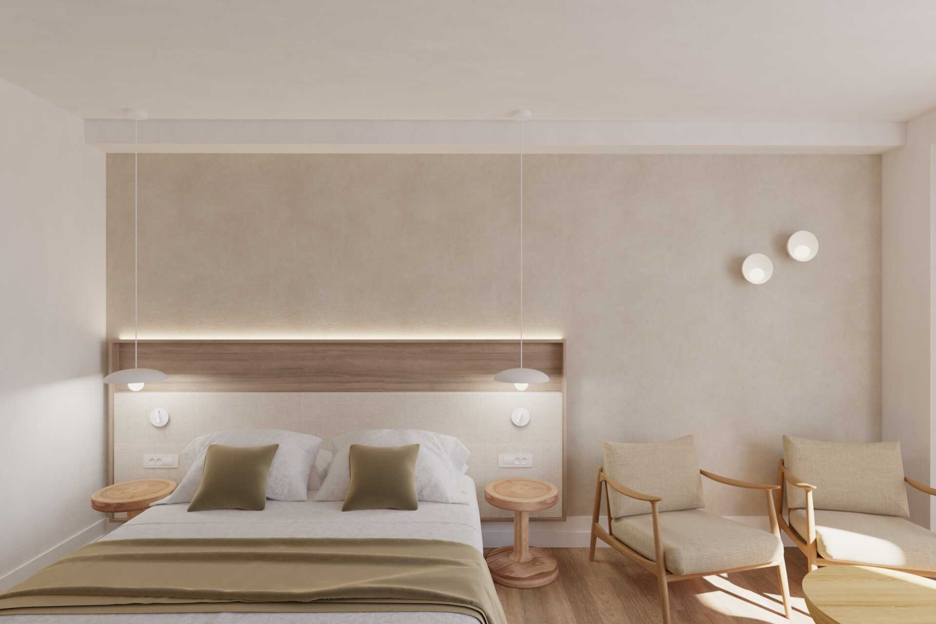 Kahden hengen huone, oma-allas maaterassilla. Parivuode tai kaksi yhden hengen sänkyä. Lisävuodemahdollisuus vuodesohvasta. Maksuton wifi, ilmastointi ja tallelokero. Minibaari. Vedenkeitin, kahvia ja teetä. Tv kansainvälisillä kanavilla. Kylpytakit ja tossut. Hiustenkuivain. Kylpyhuoneessa suihku ja wc. Siivous 7 krt/viikko.