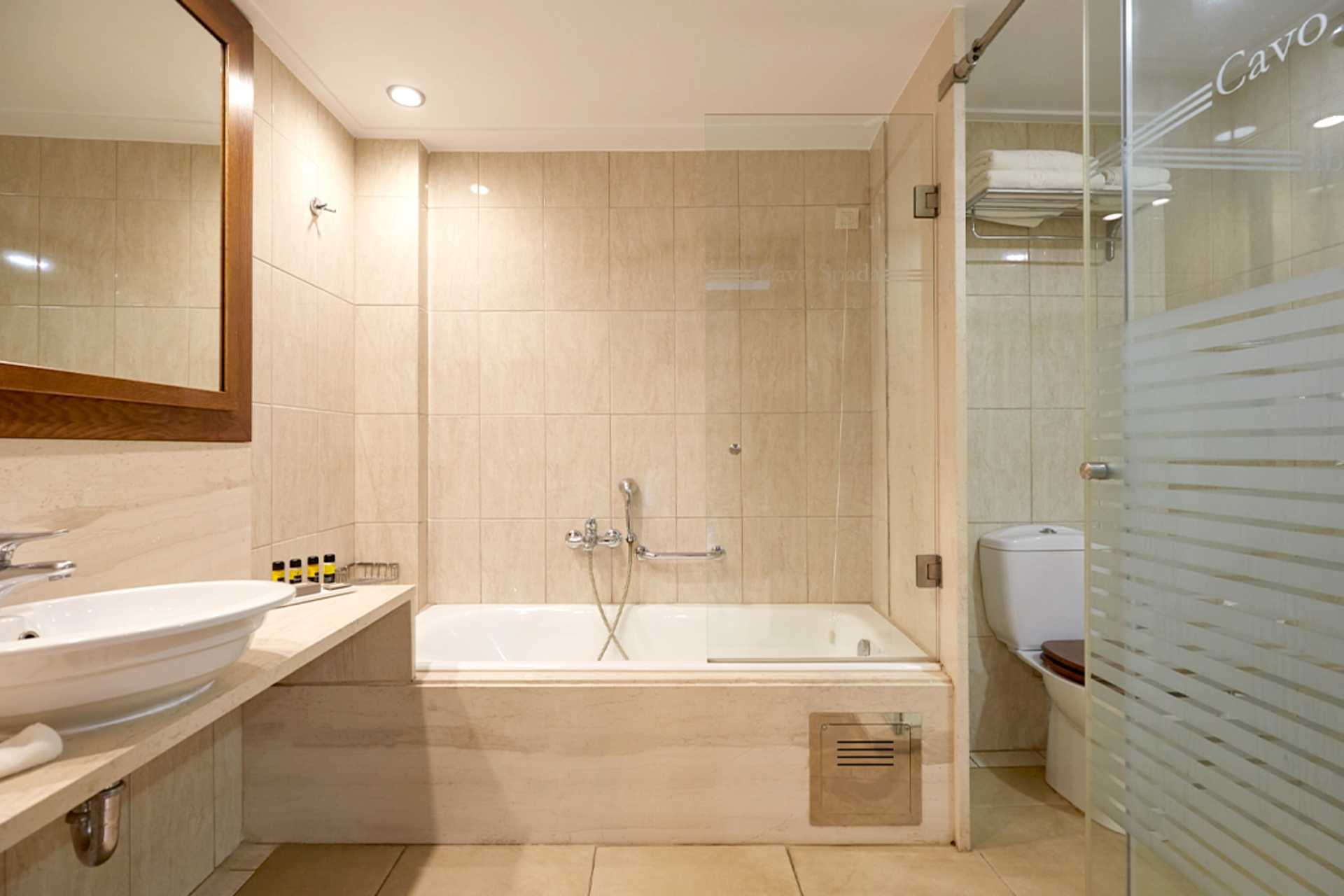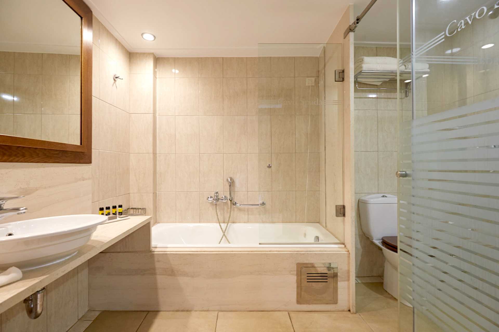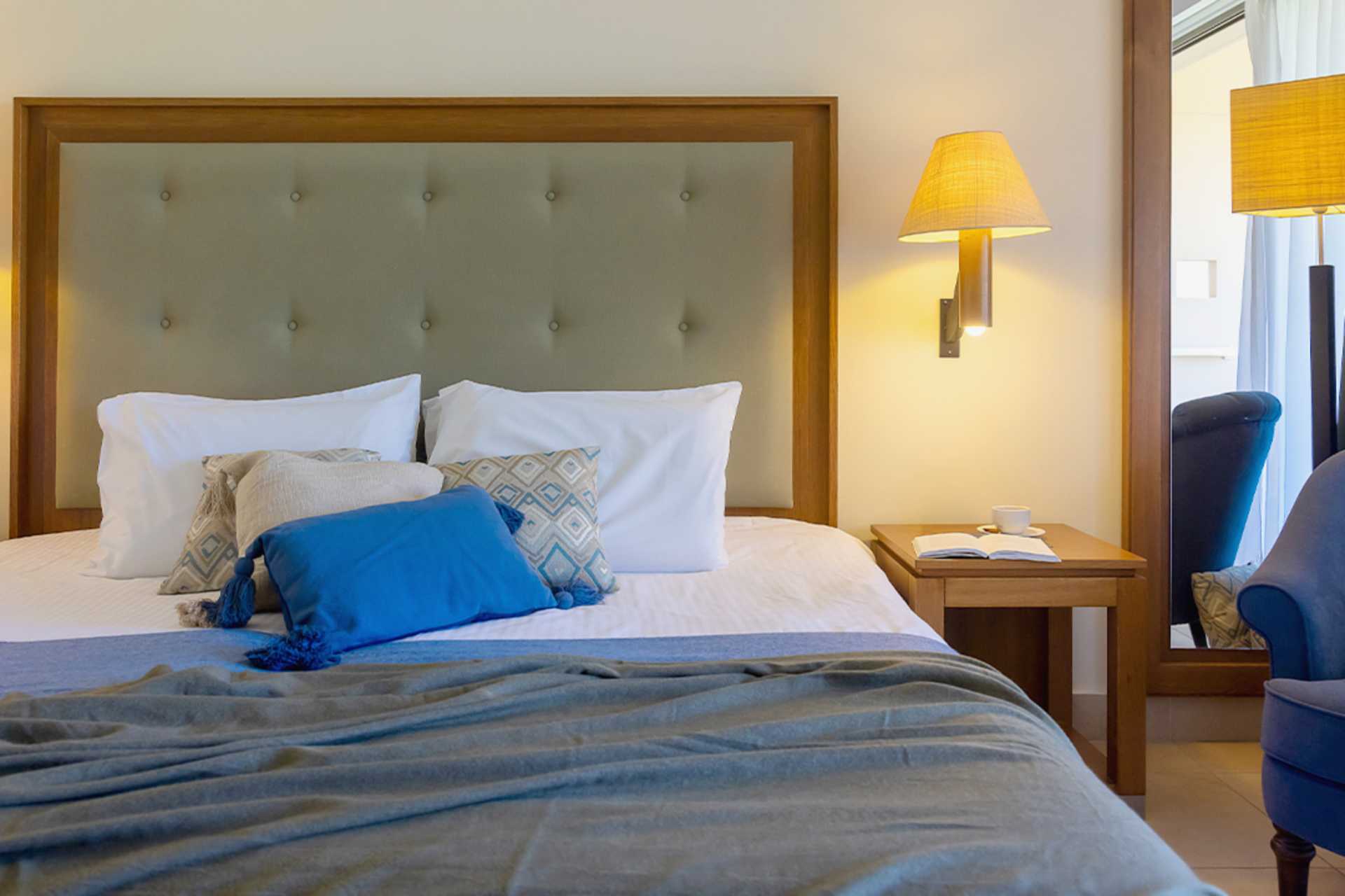 Kahden hengen huone parvekkeella tai terassilla, joissakin huoneissa on rajoitettu merinäköala ja osasta parvekkeista on näkymä uima-altaalle. Eri kokoisia huoneita. Kaksi yhden hengen sänkyä. Lisävuodemahdollisuus vuodesohvasta. Maksuton wifi, ilmastointi ja tallelokero. Vedenkeitin, kahvia ja teetä. Espressokeitin, kapselit lisämaksusta. Minibaari lisämaksulla. Tv kansainvälisillä kanavilla. Kylpytakit ja tossut Hiustenkuivain. Kylpyhuone, jossa kylpyamme, suihku ja wc. Siivous 7 krt/viikko.