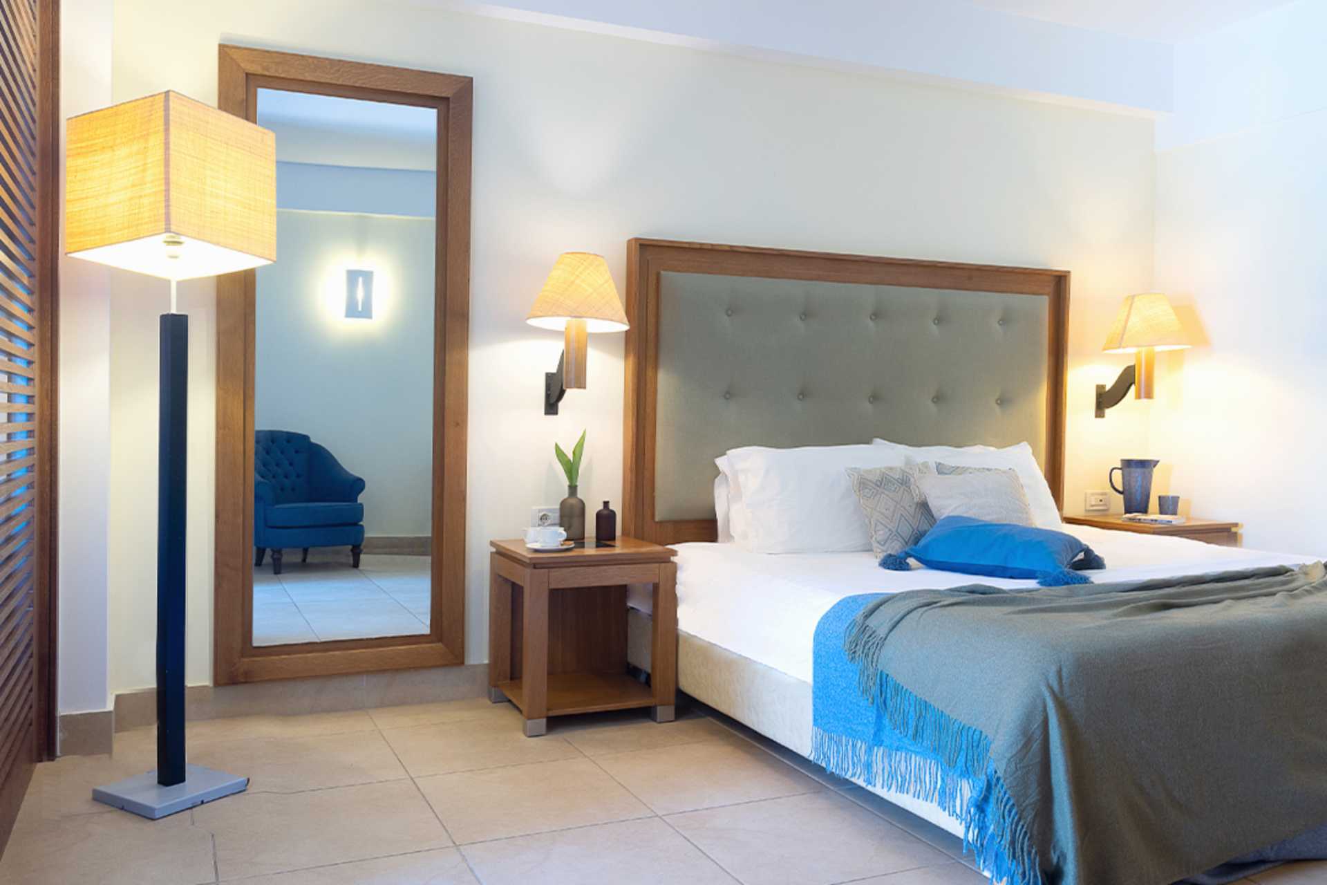 Juniorsviittejä terassilla, rajoitettu merinäköala ja suora pääsy isolle, yleiselle altaalle. Terassilla on kaksi aurinkotuolia, pöytä ja tuolit. Parivuode ja mahdollisuus lisävuoteeseen vuodesohvasta. Minibaari lisämaksusta. Vedenkeitin sekä kahvin ja teen keittomahdollisuus. Espressokone, kapselit lisämaksusta. Tv satelliittikanavilla. Maksuton wifi, ilmastointi ja tallelokero. Kylpytakki ja tossut. Kylpyamme/suihku ja wc. Siivous 7 krt/viikko.