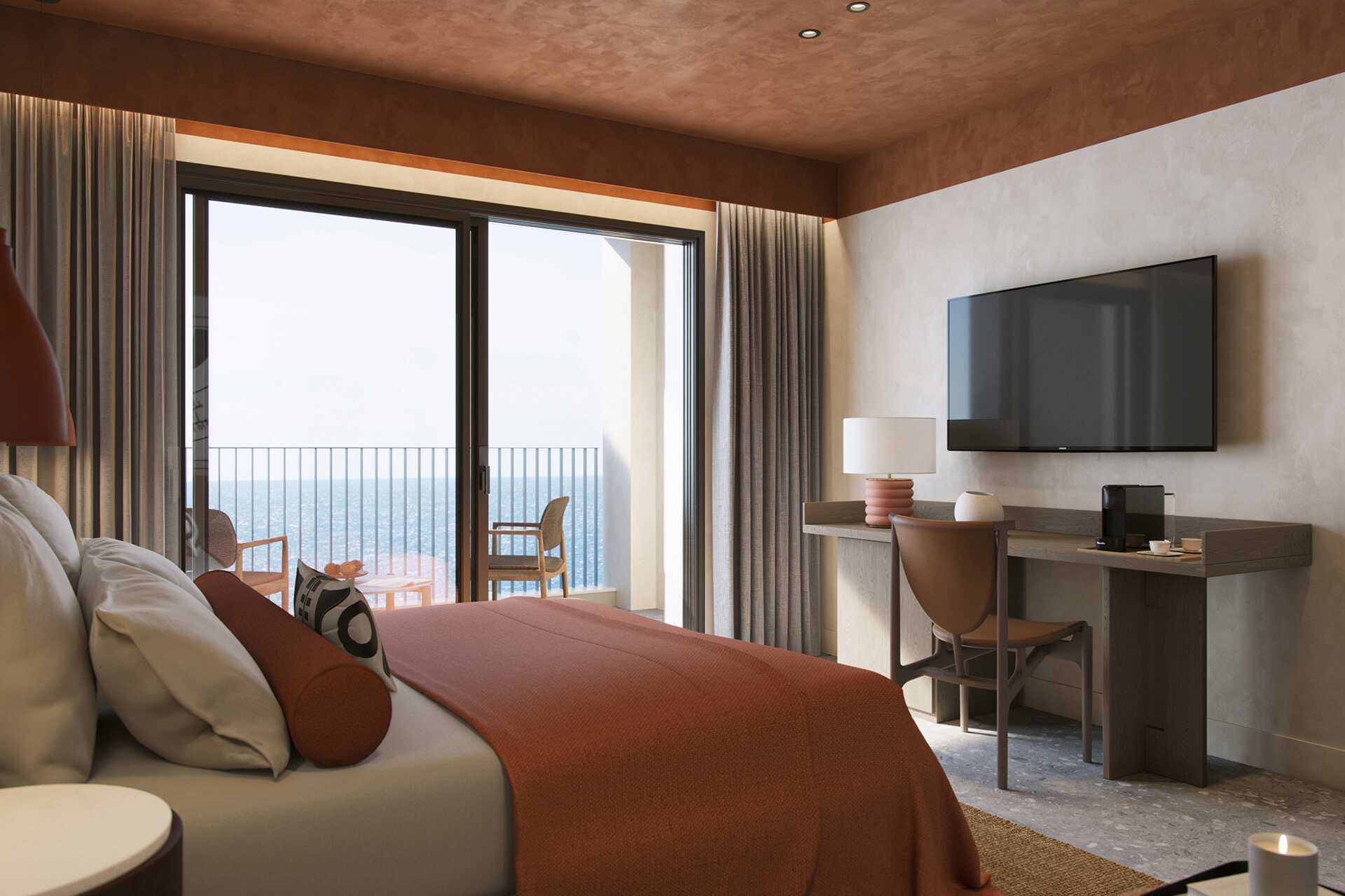 Kahden hengen huone, parvekkeella tai terassilla, osasta merinäköala. Parivuode. Mahdollisuus lisävuoteeseen kolmannelle henkilölle. Maksuton wifi, tallelokero ja ilmastointi. Pieni jääkaappi. Vedenkeitin, kahvia ja teetä. Tv kansainvälisillä kanavilla. Kylpytakit ja tossut. Hiustenkuivain. Kylpyhuone suihkulla. Siivous 7 krt/viikko.
