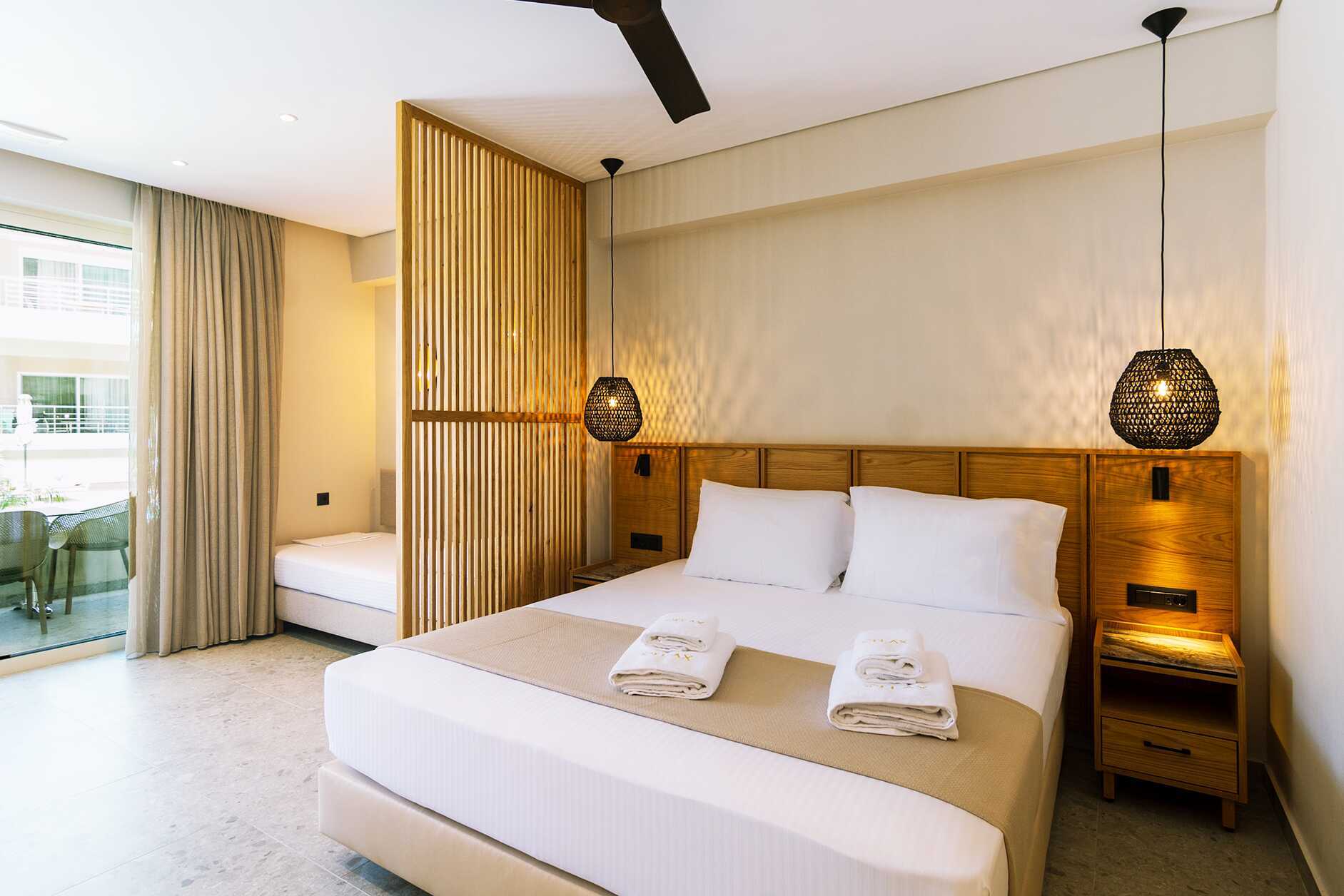 Superior-yksiö, jossa on parveke tai terassi. Makuuhuone yhdistetty minikeittiöön. Parivuode. Lisävuodemahdollisuus vuodesohvasta. Minikeittiössä keittolevyt, jääkaappi, vedenkeitin ja yksinkertainen keittiövarustus. Maksuton wifi, ilmastointi ja tallelokero. Tv kansainvälisillä kanavilla. Hiustenkuivain. Kylpyhuoneessa suihku ja wc. Siivous 6 krt/viikko.