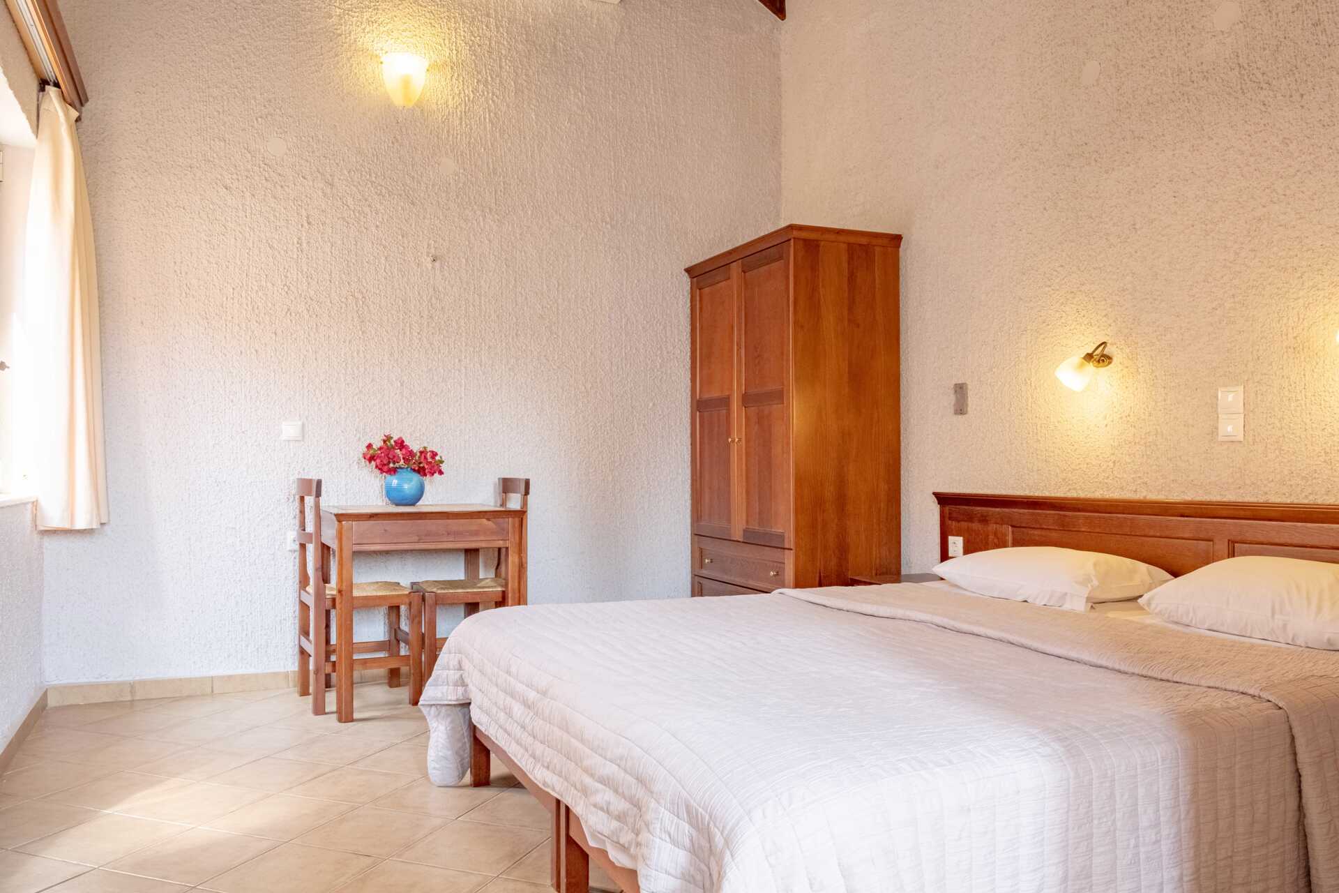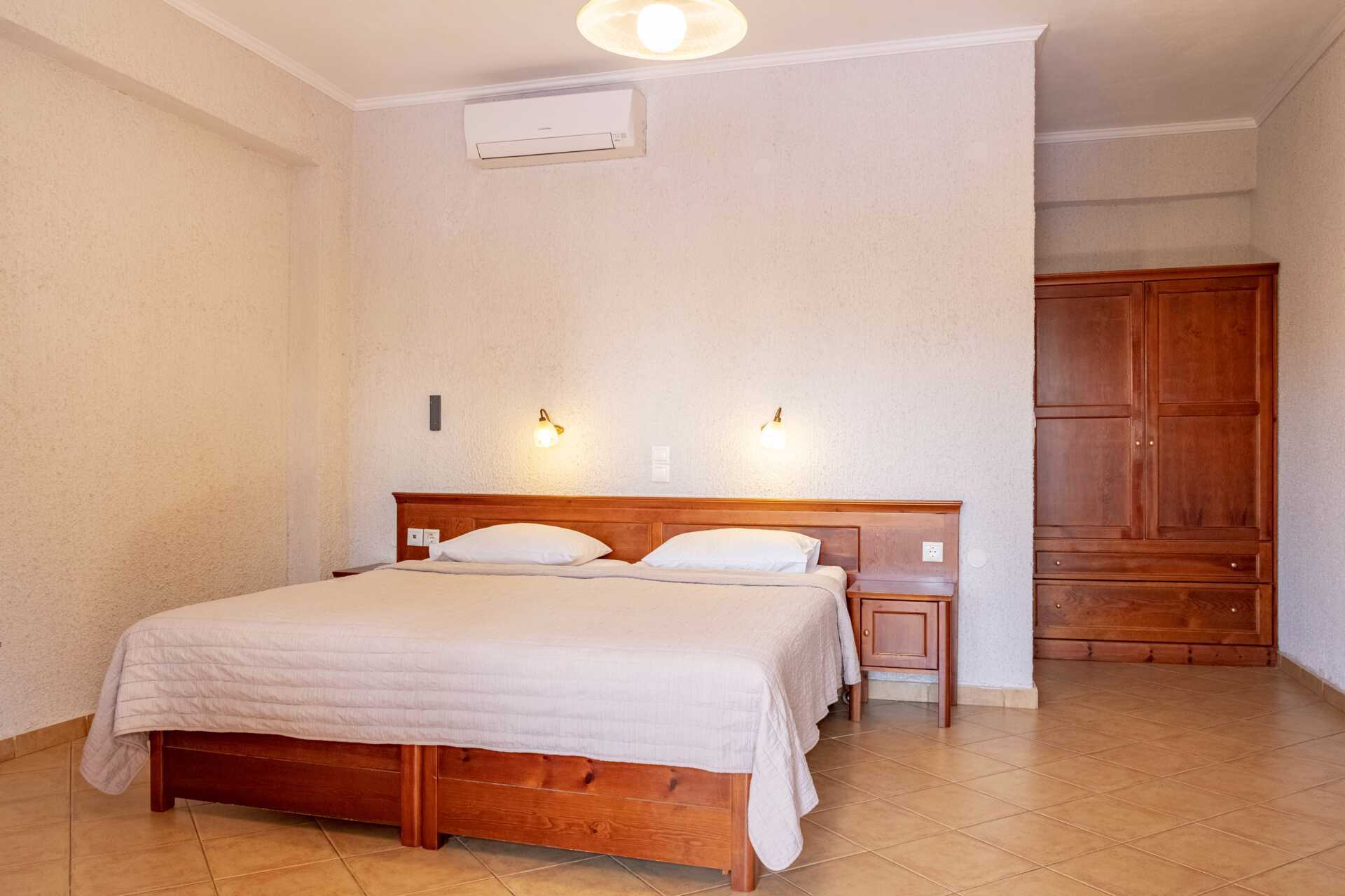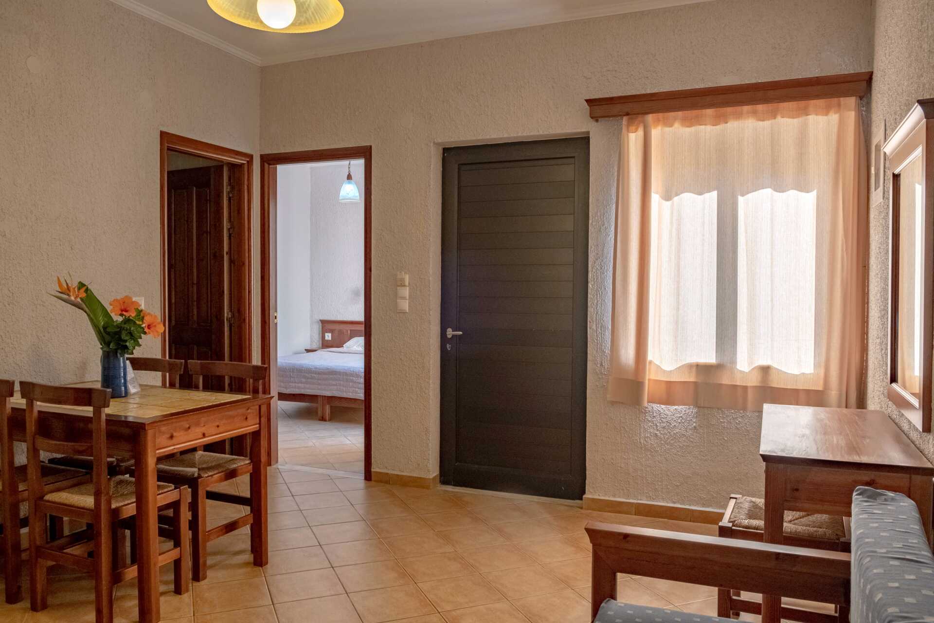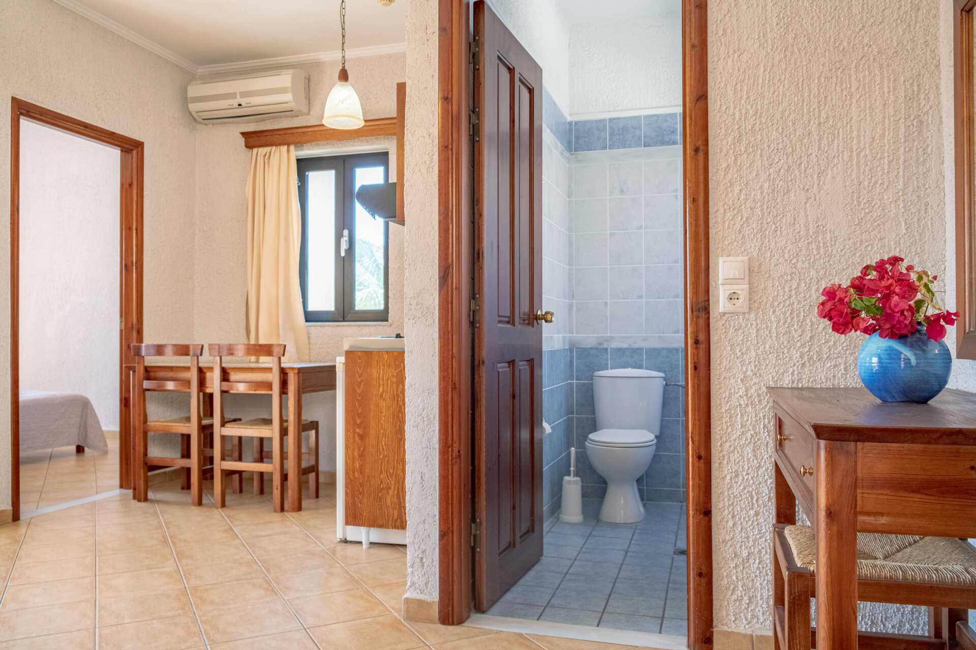 Yhden huoneen huoneisto, jossa on parveke, maaparveke tai maaterassi, osasta on näköala uima-altaalle. Portaat ylös terassille. Yläkerran asunnossa on yhteinen ulkotila. Yhdistetty makuuhuone ja minikeittiö. Parivuode tai kaksi yhden hengen sänkyä. Mahdollisuus saada lisävuode yhden hengen vuoteeseen tai kokoontaitettavaan sänkyyn. Minikeittiössä keittolevyt, jääkaappi, vedenkeitin, kahvinkeitin ja yksinkertainen keittiövarustus. Maksuton wifi, ilmastointi ja tallelokero. Tv kansainvälisillä kanavilla. Hiustenkuivain. Suihku ja wc. Siivous 6 krt/viikko.