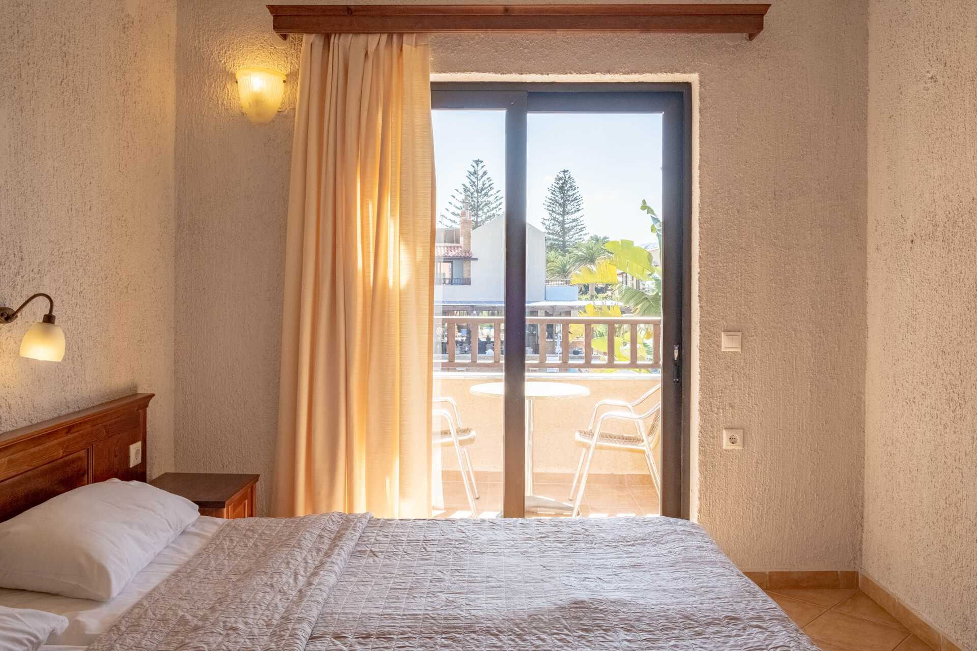 Kolmio parvekkeella, iso parveke/terassi tai maaterassi. Joihinkin Kolmioihin on pääsy parvekkeen kautta. Portaat ylös terassille. Kaksi makuuhuonetta ja yhdistetty olohuone ja minikeittiö. Lisävuodemahdollisuus vuodesohvasta. Minikeittiössä keittolevyt, jääkaappi, kahvinkeitin ja yksinkertainen keittiövarustus. Maksuton wifi, ilmastointi ja tallelokero. Tv kansainvälisillä kanavilla. Hiustenkuivain. Kaksi kylpyhuonetta, joissa on suihku ja wc. Siivous 6 krt/viikko.