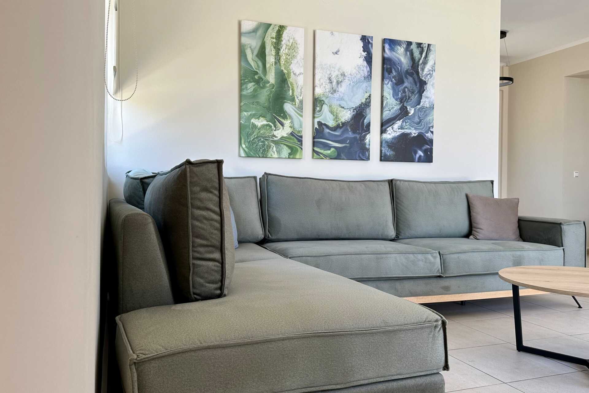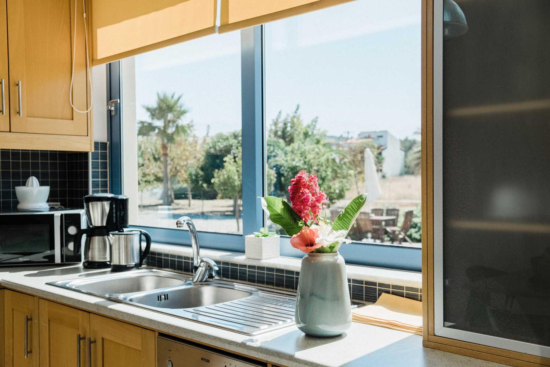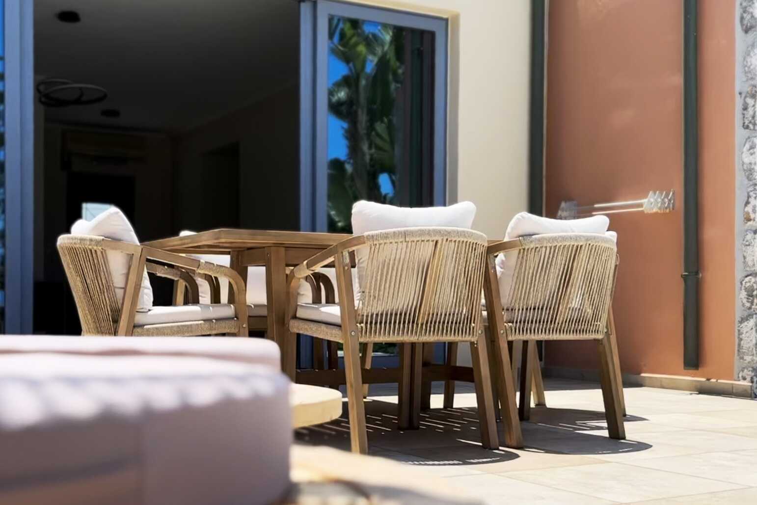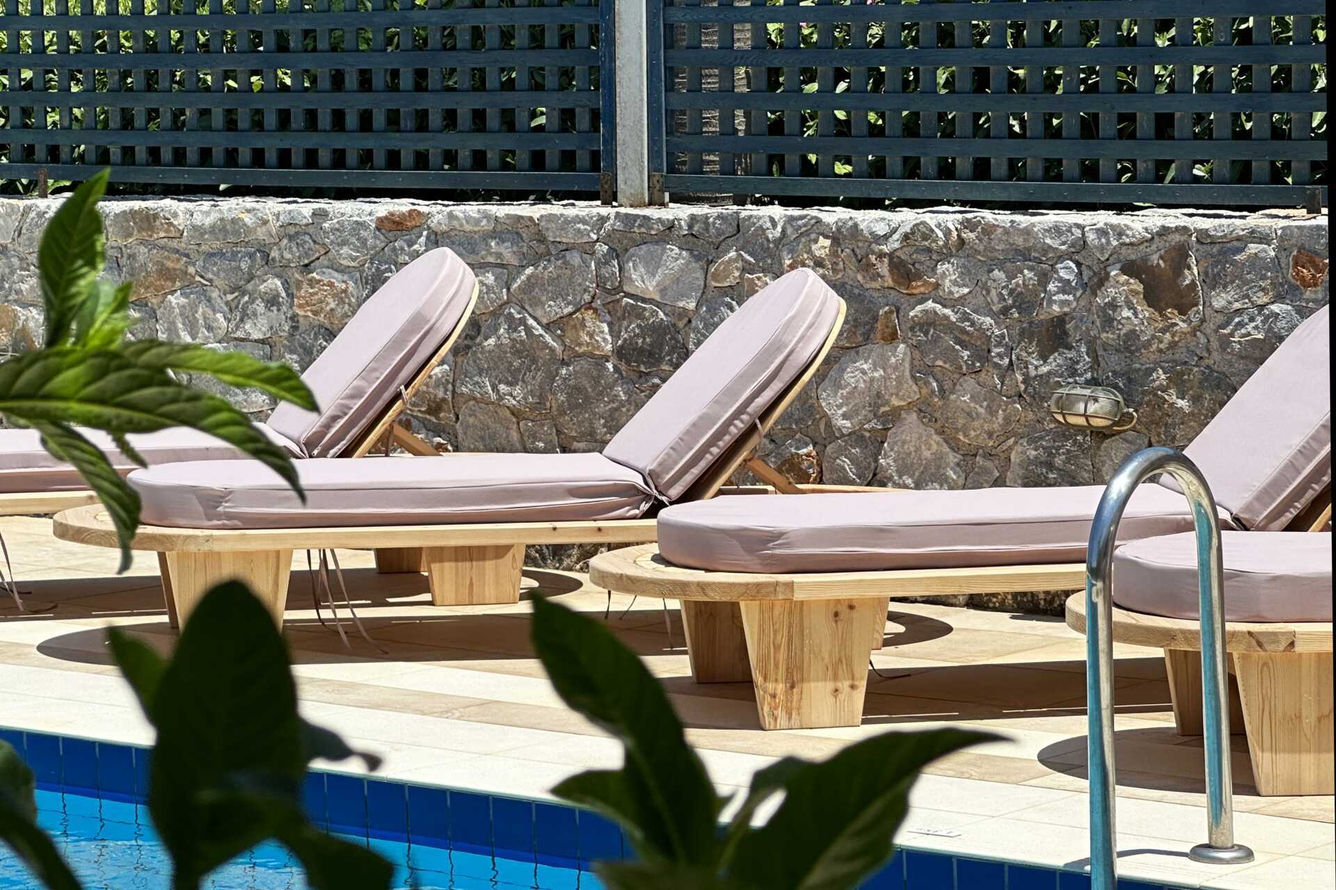 Kolmio maaterassilla, oma uima-allas ja rajoitettu merinäköala. Terassilla on ruokailutila ja aurinkotuolit, ja jokaiselle asunnolle on oma bali-vuode puutarhan nurmikolla. Huoneistot sijaitsevat yksi- tai kaksikerroksisissa huviloissa, joissa on moderni sisustus. Kaksi makuuhuonetta ja yhdistetty olohuone keittiön kanssa. Mukava parisänky, jossa on petauspatja makuuhuoneissa. Mahdollisuus lisävuoteisiin muunneltavissa nojatuoleissa. Hyvin varusteltu keittiö, jossa liesi ja uuni, jääkaappi, astianpesukone, kahvinkeitin, mehustin, mikroaaltouuni ja peruskeittiövälineet. Vedenkeitin pyynnöstä. Maksuton wifi, ilmastointi ja tallelokero. Tv kansainvälisillä kanavilla. Hiustenkuivain. Kaksi kylpyhuonetta, jossa kylpyamme tai suihku ja wc. Siivous 6 krt/viikko.
