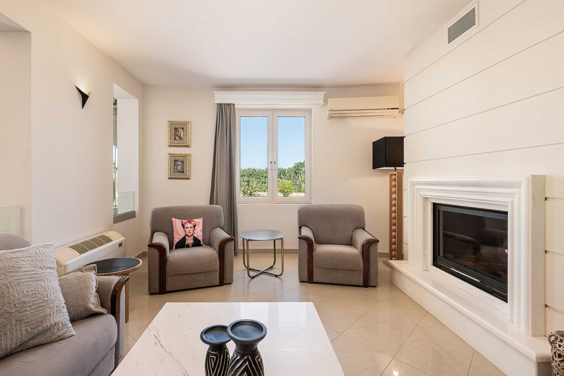 Viiden huoneen huvila oma uima-allas, joka on yhdistetty sisä- ja ulkouima-allas. Alakerran terassilla on aurinkotuolit ja aurinkovarjot. Huvila on kahdessa kerroksessa. Sisäänkäyntikerroksessa on tilava olohuone, jossa on ruokailutila, sohvaryhmä ja takka – yhdistettynä avokeittiöön, wc, makuuhuone parivuoteella ja viereinen kylpyhuone, jossa on hiustenkuivaaja, kylpyamme ja wc. Yläkerrassa on toinen makuuhuone, jossa on parivuode ja parveke, sekä kylpyhuone, jossa on hiustenkuivaaja, suihku ja wc. Mahdollisuus lisävuoteisiin olohuoneen vuodesohvalla. Keittiössä liesi, tuuletin, jääkaappi ja pakastin, leivänpaahdin, mikroaaltouuni, kahvikone, kahvinkeitin, vedenkeitin ja yksinkertaiset keittiövälineet. Maksuton wifi, ilmastointi ja tallelokero. Olohuoneessa ja jokaisessa makuuhuoneessa on tv kansainvälisillä kanavilla. Pesukone. Silitysrauta ja -lauta. Siivous 4 krt/viikko.