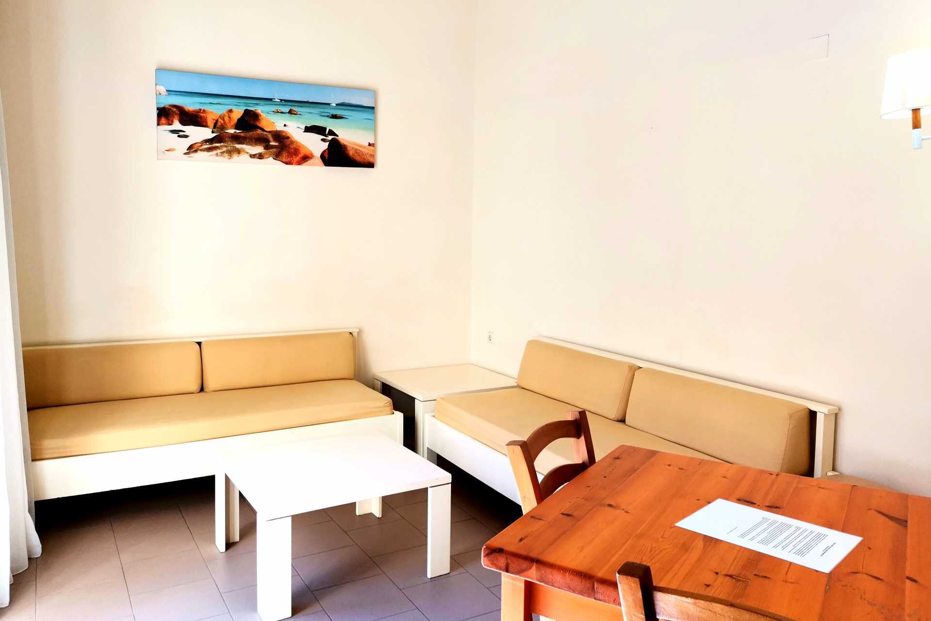 Kaksioita, joissa yhdistettu olohuone ja minikeittiö sekä erillinen makuuhuone. Parveke tai terassi joiden koko vaihtelee. Osassa huoneistoja on merinäköala tai rajoitettu merinäköala. Keittolevyt, jääkaappi ja yksinkertainen keittiövarustus. Vedenkeitin. Maksuton wifi, ilmastointi ja tallelokero (ilmastointi vain olohuoneessa). Lisävuodemahdollisuus vuodesohvasta. Vedenkeitin. Tv kansainvälisillä kanavilla. Hiustenkuivain. Amme tai suihku ja wc. Siivous 7 krt/viikko.