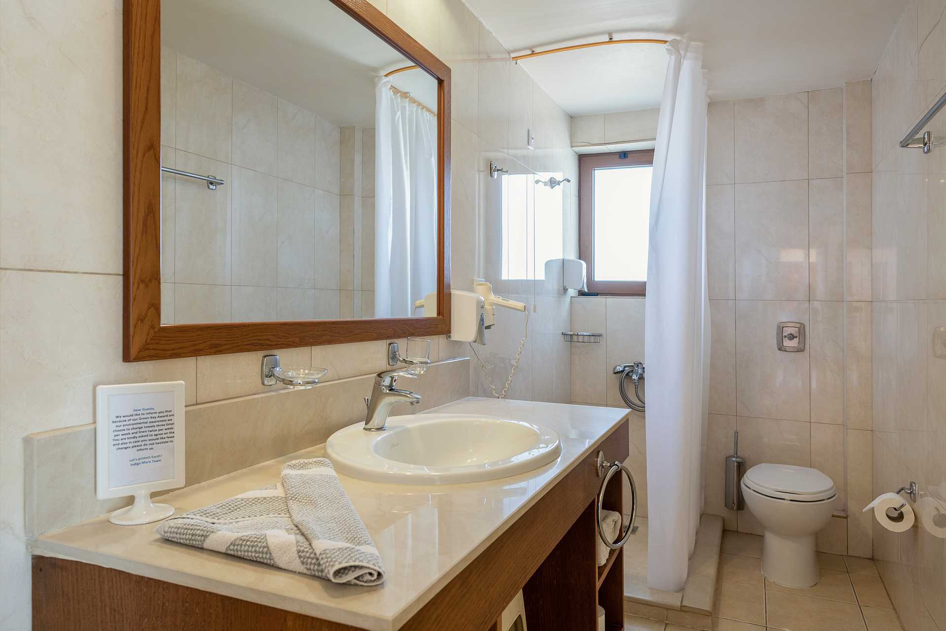 Yksiö parvekkeella tai terassilla, joista osasta on rajoitettu merinäköala. Yhdistetty makuuhuone ja minikeittiö. Kaksi yhden hengen sänkyä. Lisävuodemahdollisuus vuodesohvasta. Minikeittiössä keittolevyt, jääkaappi, vedenkeitin ja yksinkertainen keittiövarustus. Maksuton wifi, ilmastointi ja tallelokero. Tv kansainvälisillä kanavilla. Hiustenkuivain. Suihku ja wc. Siivous 7 krt/viikko.