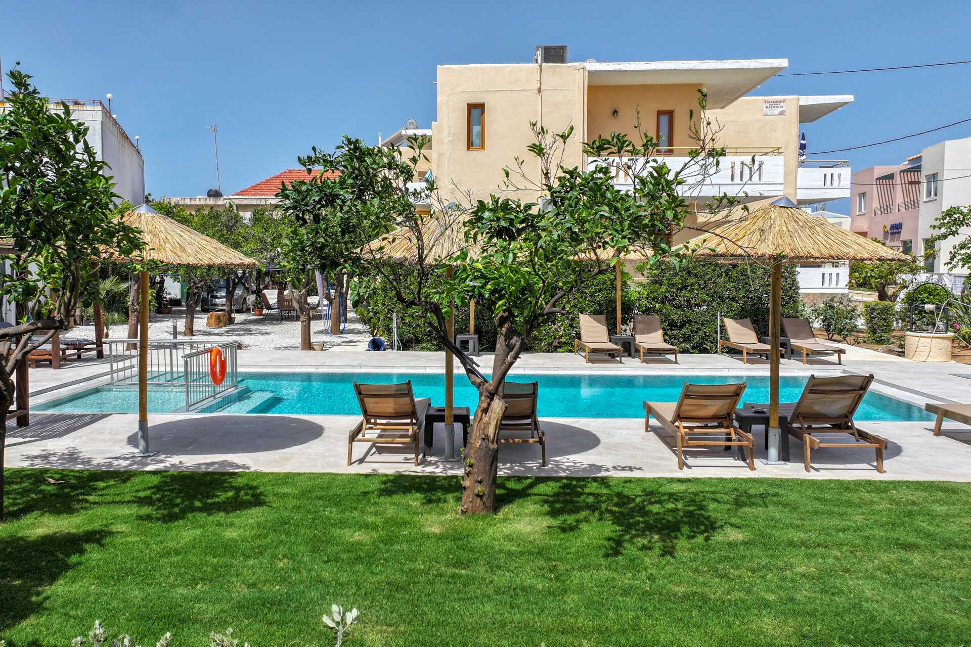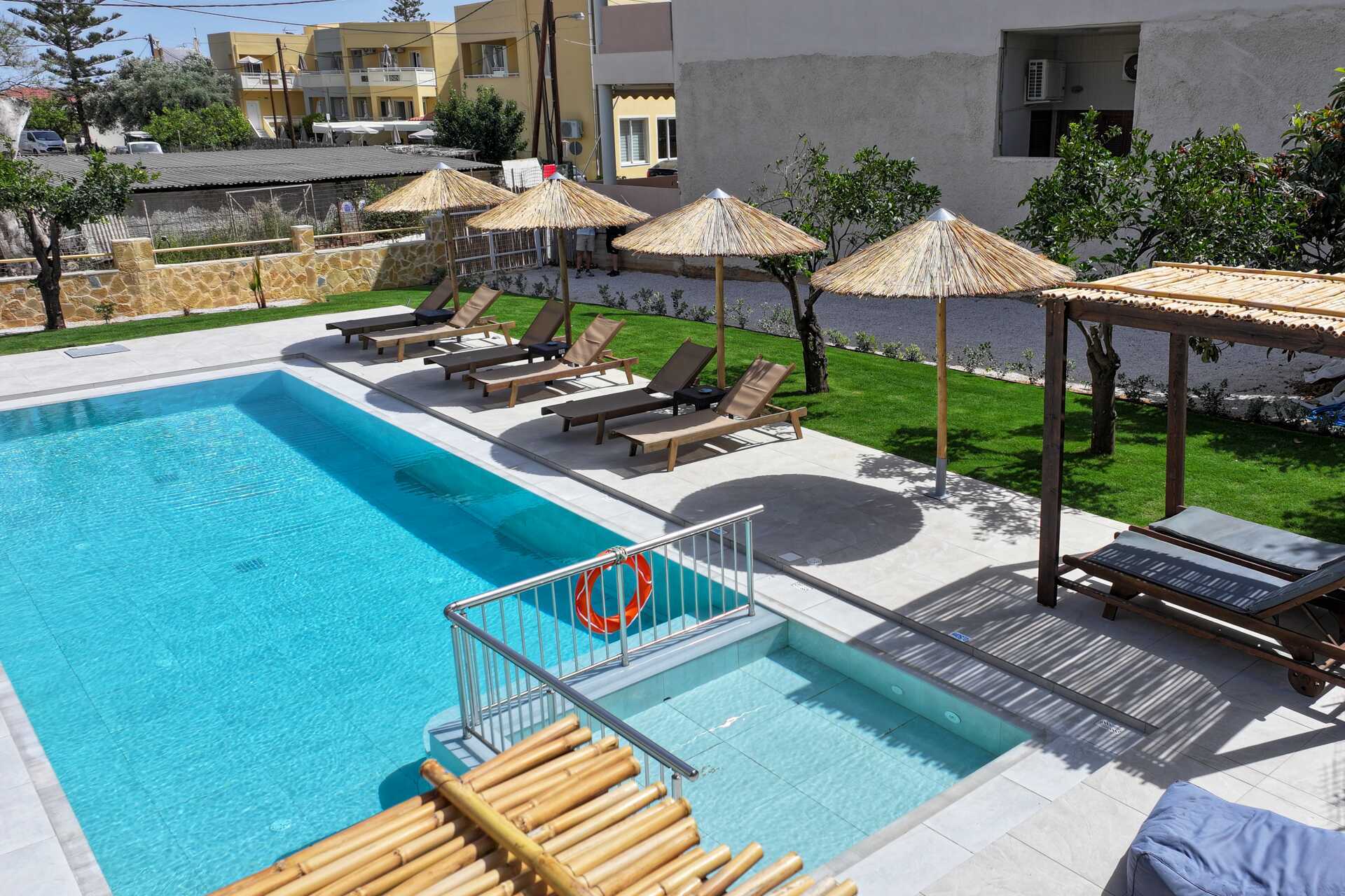 Upouusi allasalue, toimiva ilmastointi sekä iso parveke.