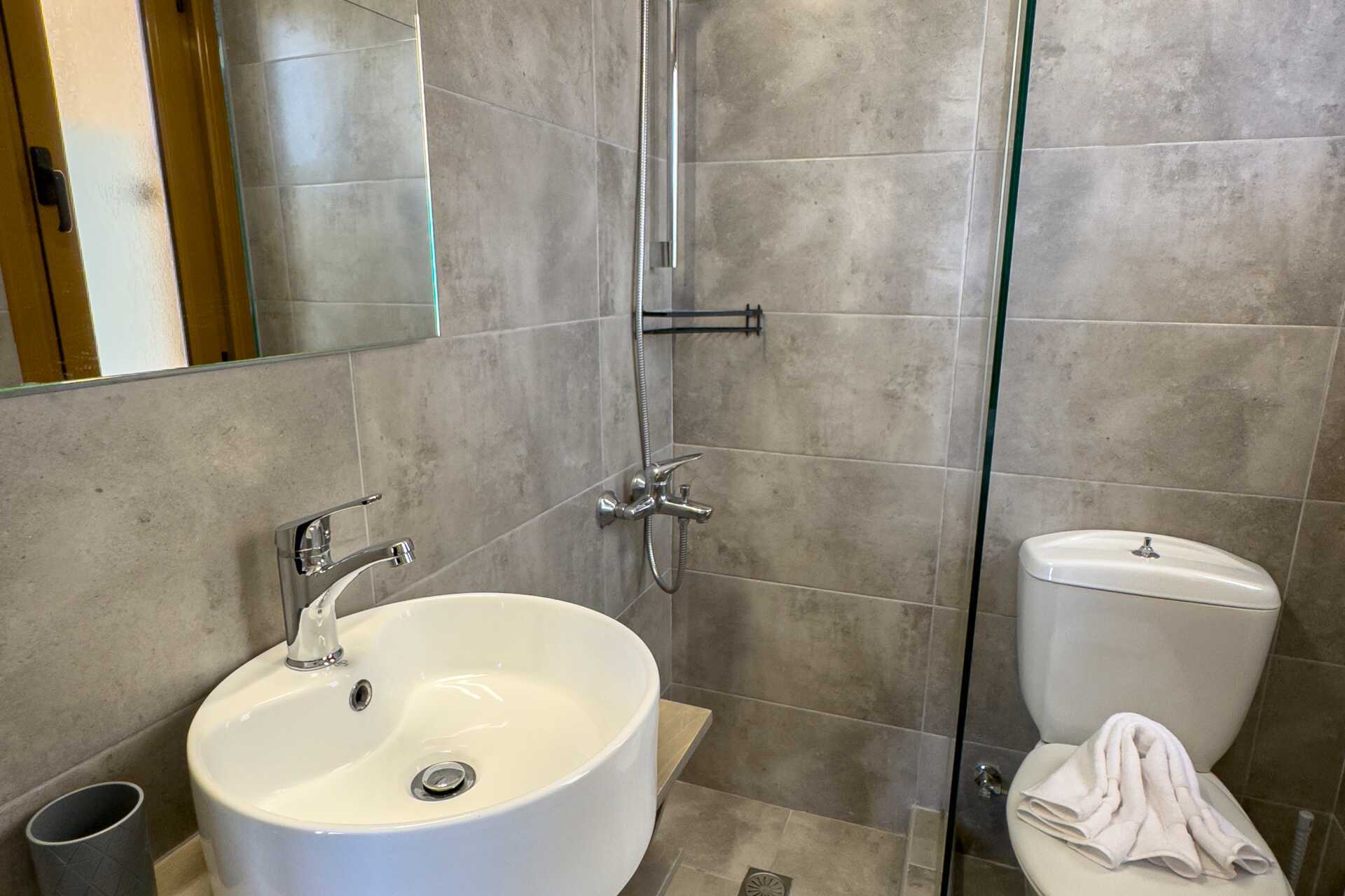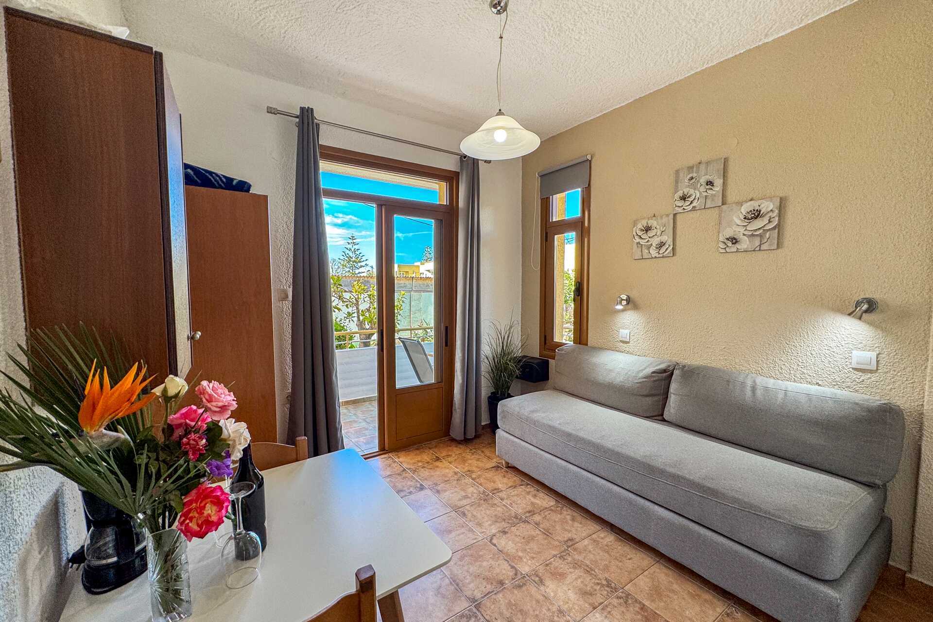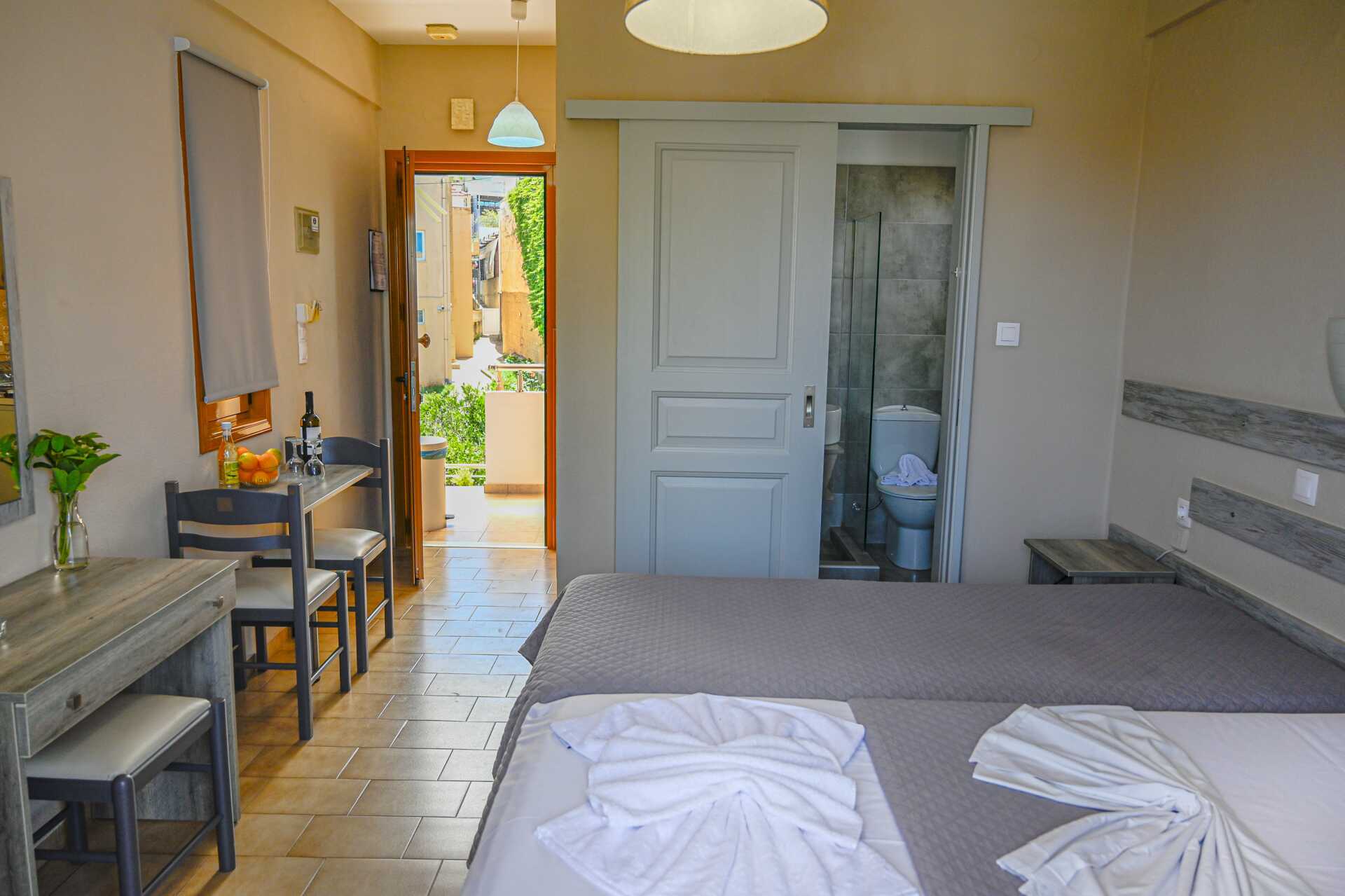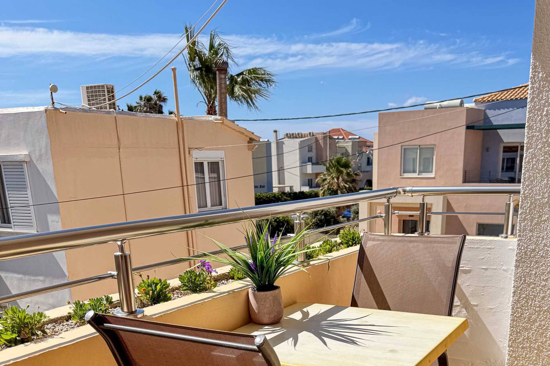 Pienehkö kaksio parvekkeella. Makuuhuone ja yhdistetty olohuone/minikeittiö. Minikeittiössä jääkaappi, kahvinkeitin, voileipägrilli, keittolevyt ja yksinkertainen keittiövarustus. Maksuton wifi, ilmastointi ja tallelokero. Tv paikallisilla kanavilla. Hiustenkuivain. Pieni kylpyhuone jossa suihku ja wc. Siivous 6 krt/viikko.