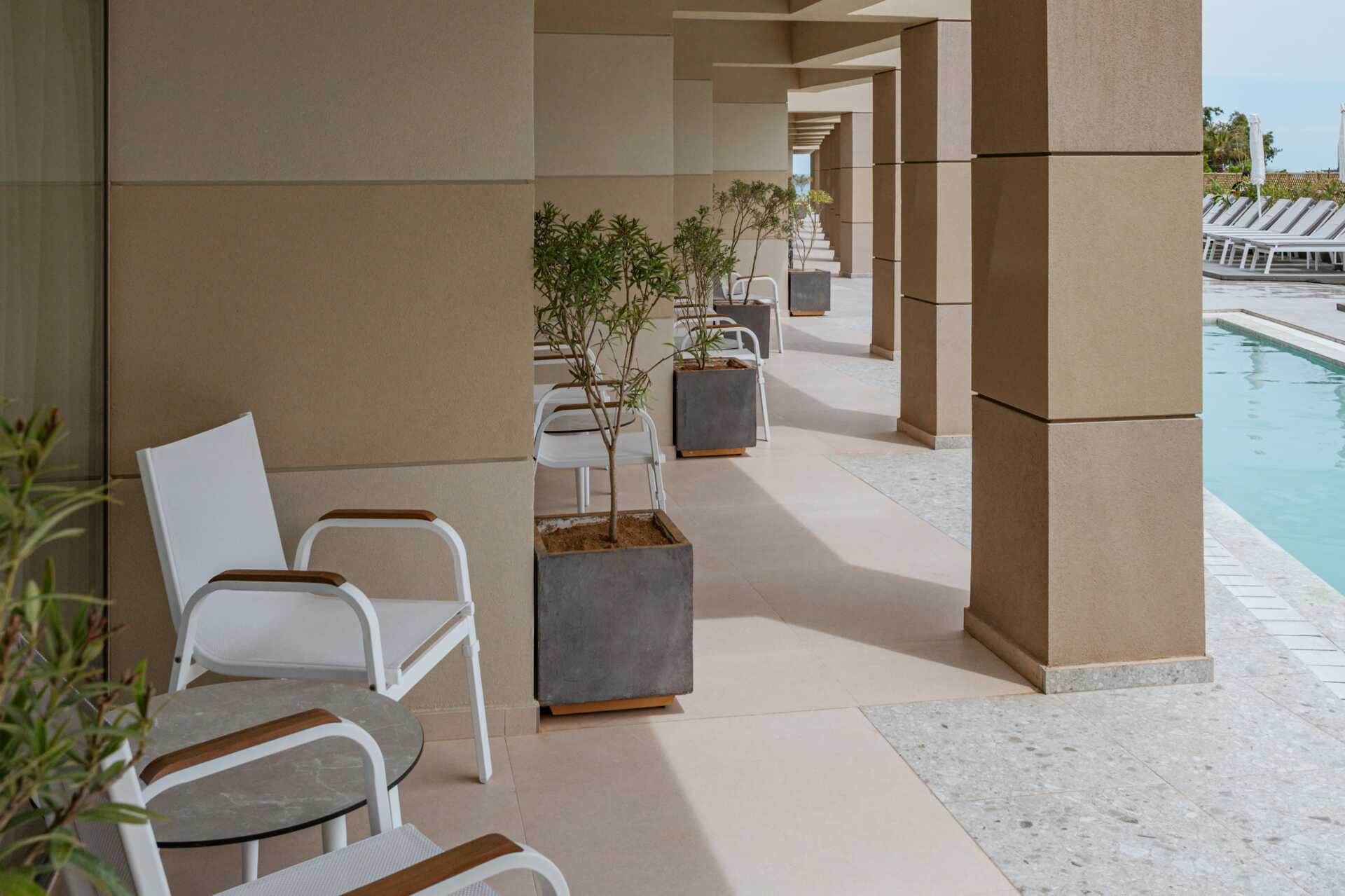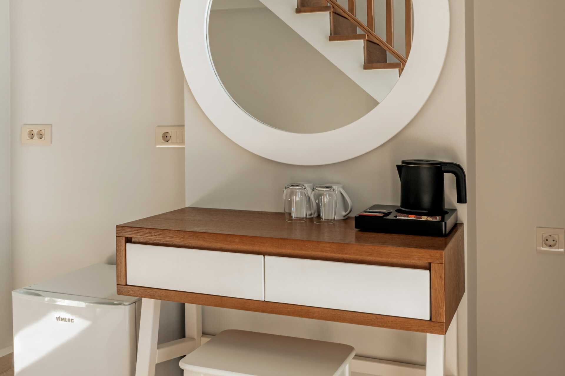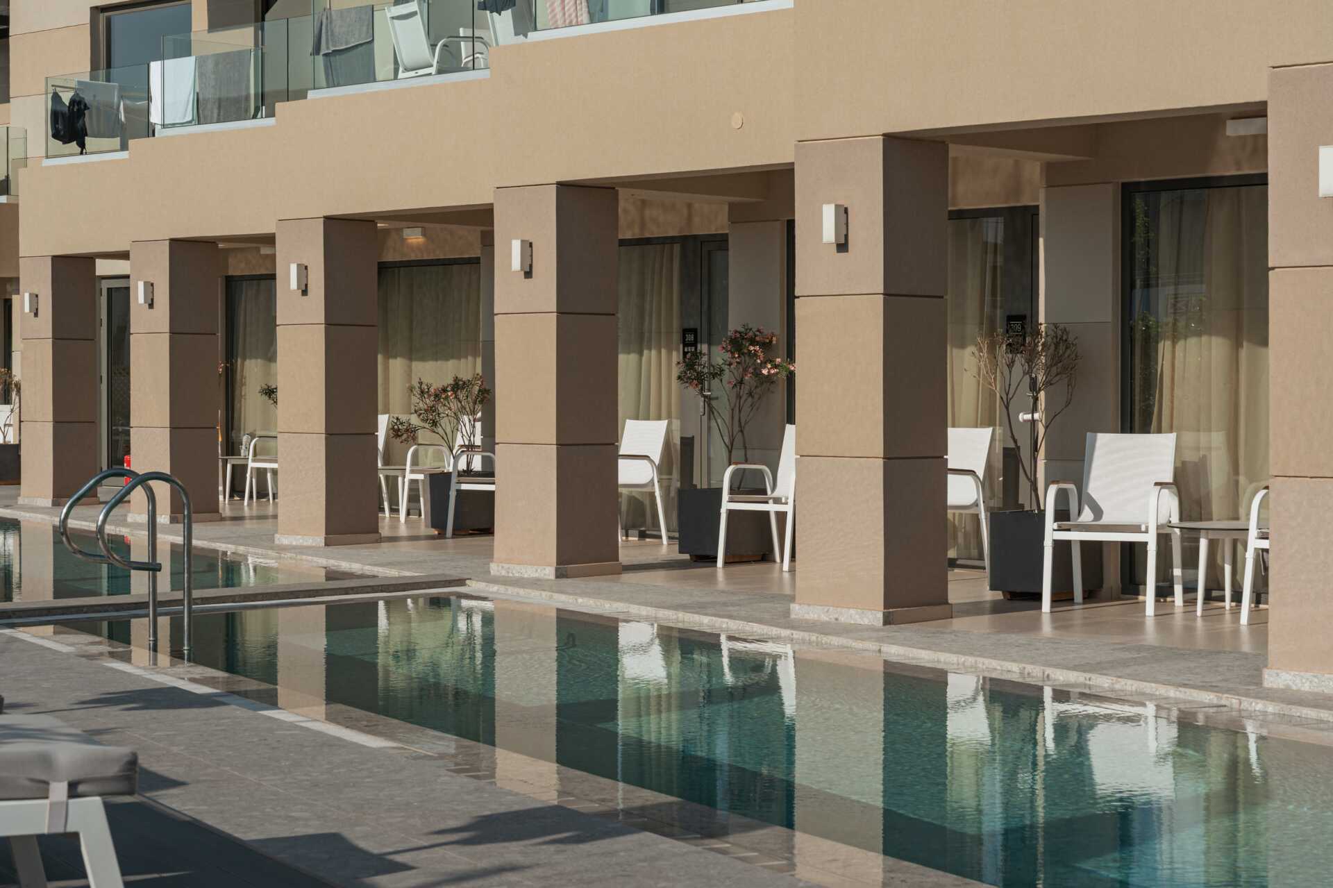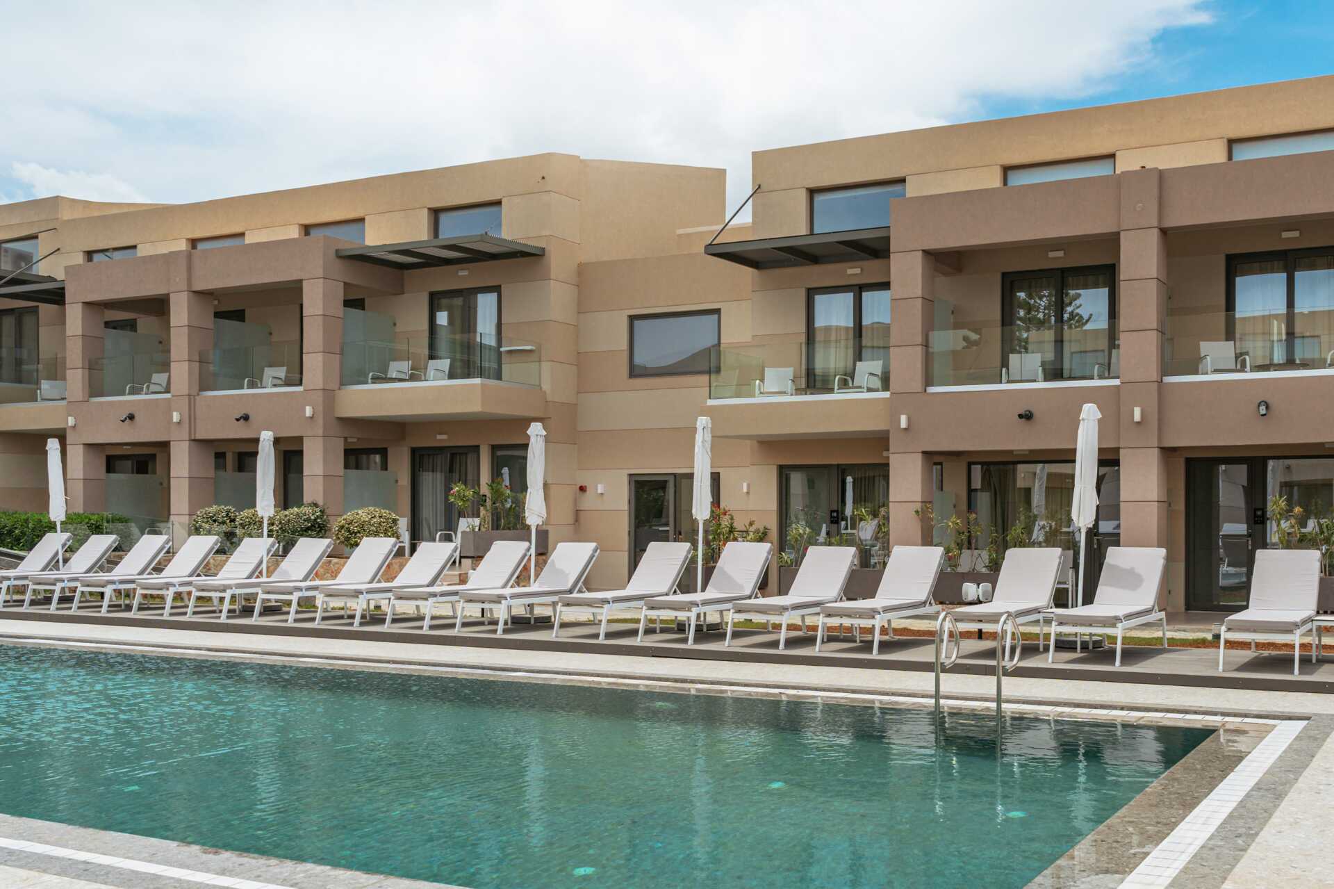 Kahden hengen huone, josta on pääsy jaetulle uima-altaalle. Parivuode tai kaksi yhden hengen sänkyä. Joissakin huoneissa on mahdollisuus lisävuoteeseen kolmannelle henkilölle. Maksuton wifi, ilmastointi ja tallelokero. Jääkaappi, joka voidaan täyttää minibaarina ja on silloin lisämaksullinen. Vedenkeitin. Tv kansainvälisillä kanavilla. Kylpyhuoneessa suihku ja wc. Siivous 6 krt/viikko.