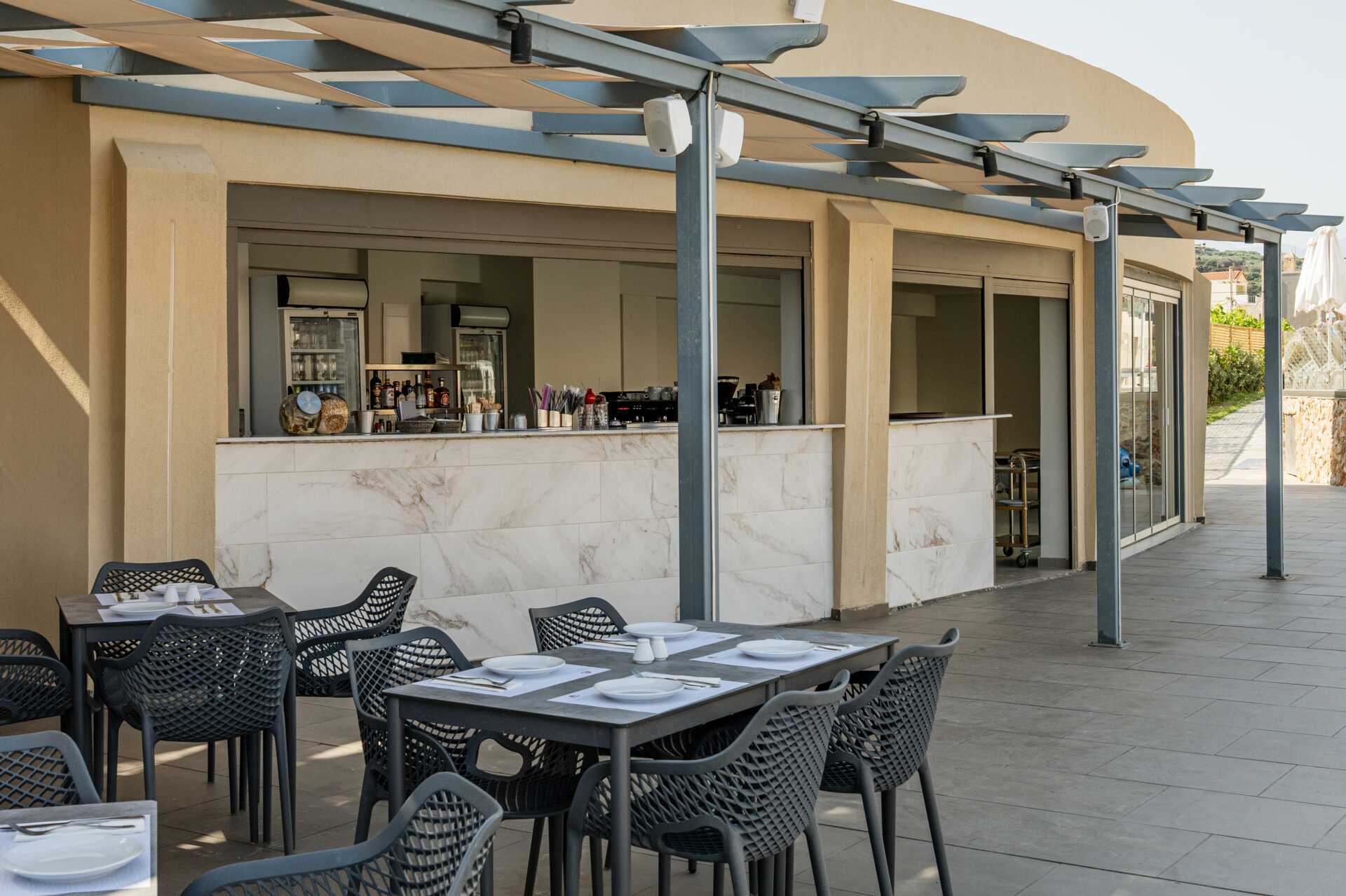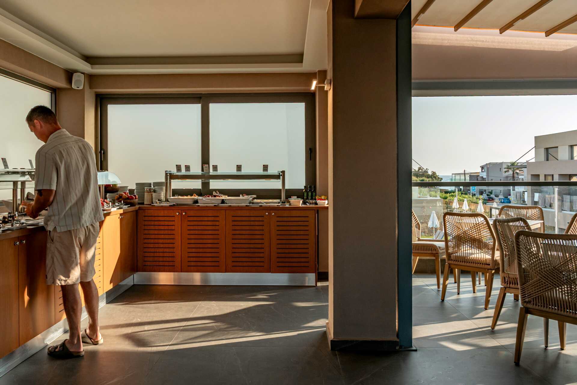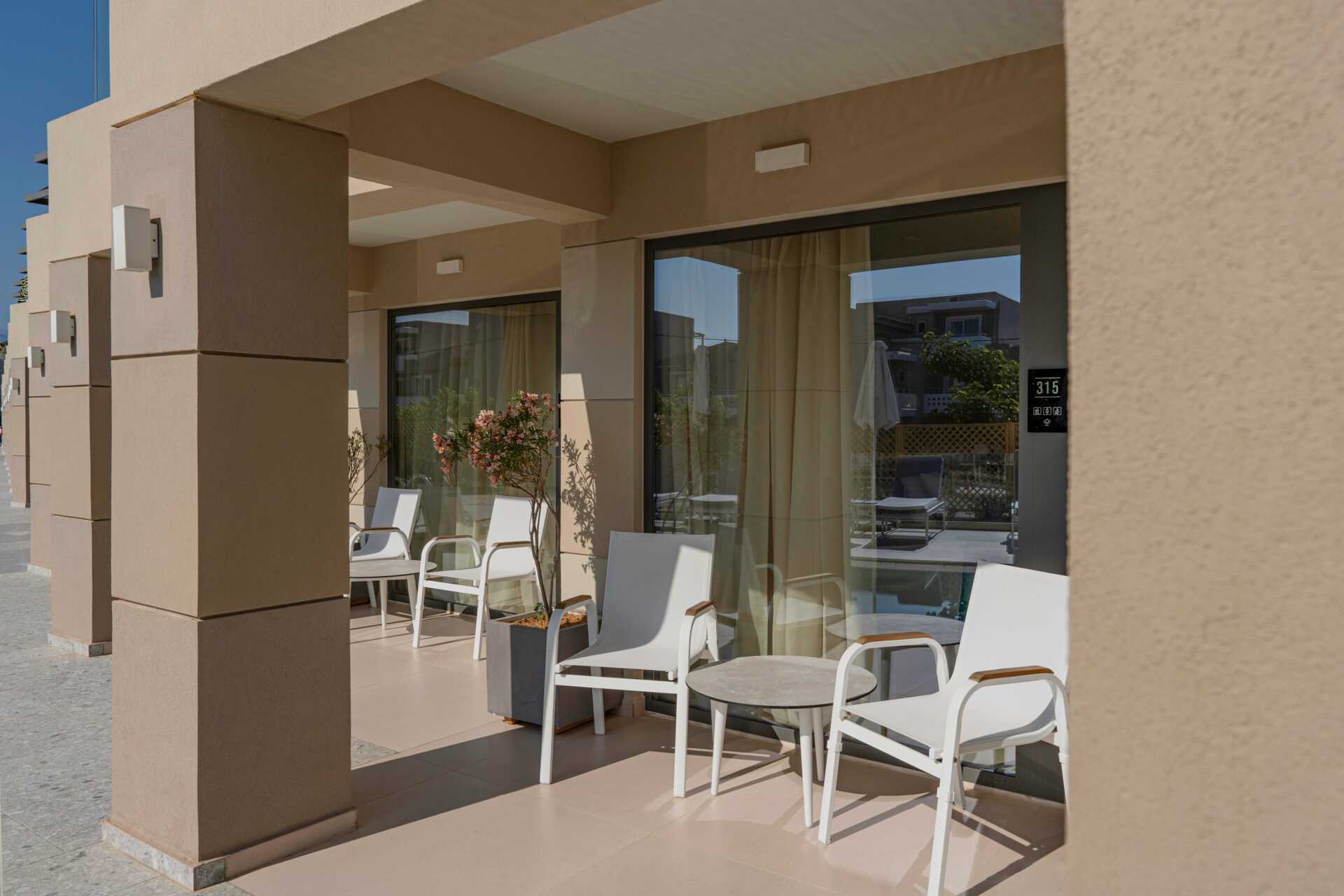 Kahden hengen huone alennetulla maatasolla, maaterassi. Kolme askelmaa johtaa alas huoneeseen. Parivuode tai kaksi yhden hengen sänkyä. Maksuton wifi, ilmastointi ja tallelokero. Jääkaappi, joka voidaan täyttää minibaarina ja on silloin lisämaksullinen. Vedenkeitin. Tv kansainvälisillä kanavilla. Kylpyhuoneessa suihku ja wc. Siivous 6 krt/viikko.