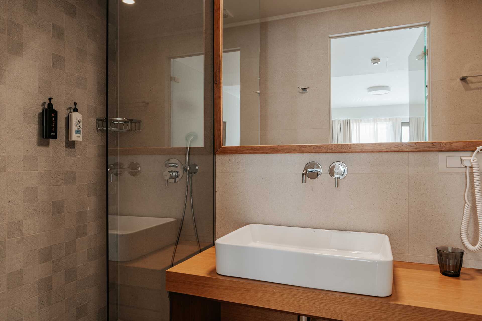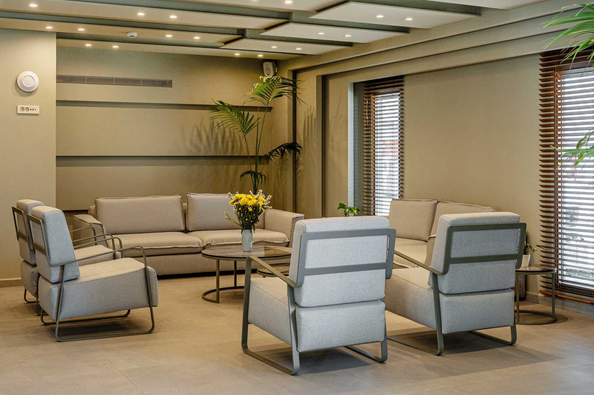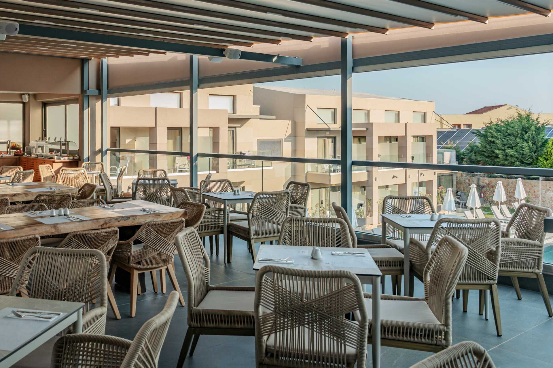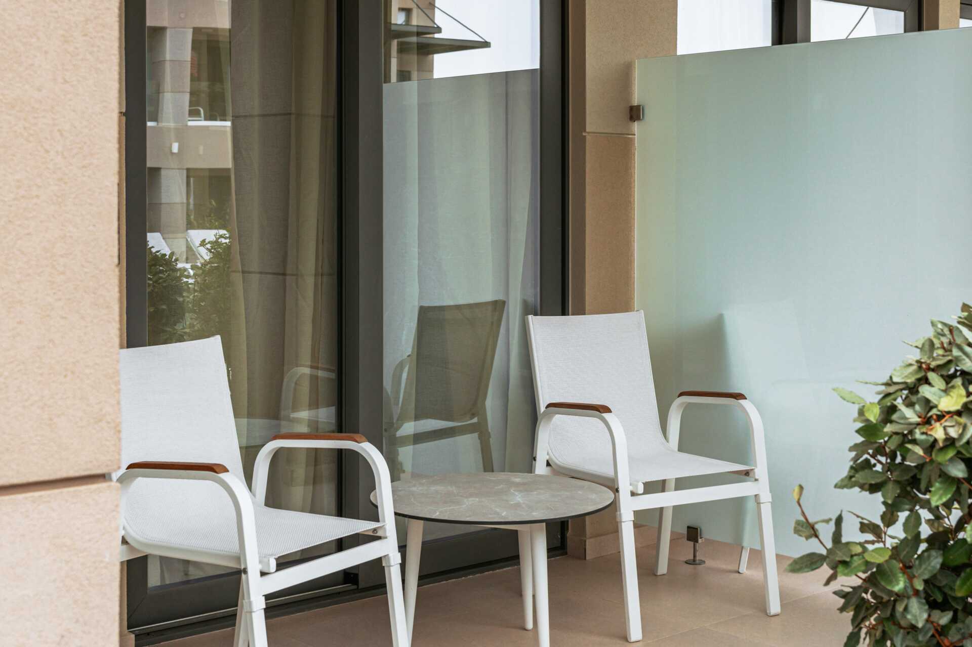 Kahden hengen huone alennetulla maatasolla, maaterassi. Kolme askelmaa johtaa alas huoneeseen. Parivuode tai kaksi yhden hengen sänkyä. Maksuton wifi, ilmastointi ja tallelokero. Jääkaappi, joka voidaan täyttää minibaarina ja on silloin lisämaksullinen. Vedenkeitin. Tv kansainvälisillä kanavilla. Kylpyhuoneessa suihku ja wc. Siivous 6 krt/viikko.