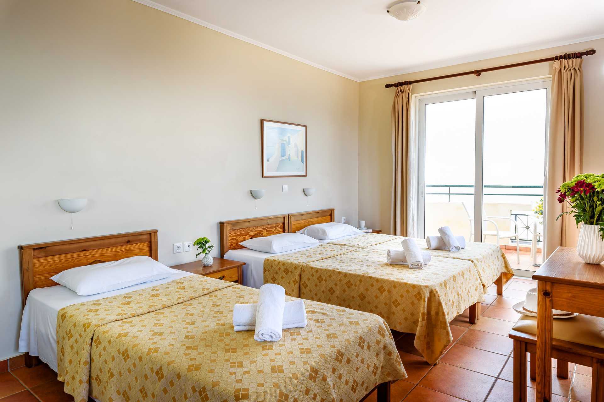 Yksiö parveke- tai maaparveke, joissakin parveke ja rajoitettu merinäköala. Yhdistetty makuuhuone, olohuone ja minikeittiö. Kaksi yhden hengen sänkyä. Lisävuodemahdollisuus yhden hengen sängystä. Minikeittiössä on keittolevyt, jääkaappi ja yksinkertainen keittiövarustus. Maksuton wifi ja ilmastointi. Tallelokero lisämaksusta. Suihku ja wc. Siivous 6 krt/viikko.
