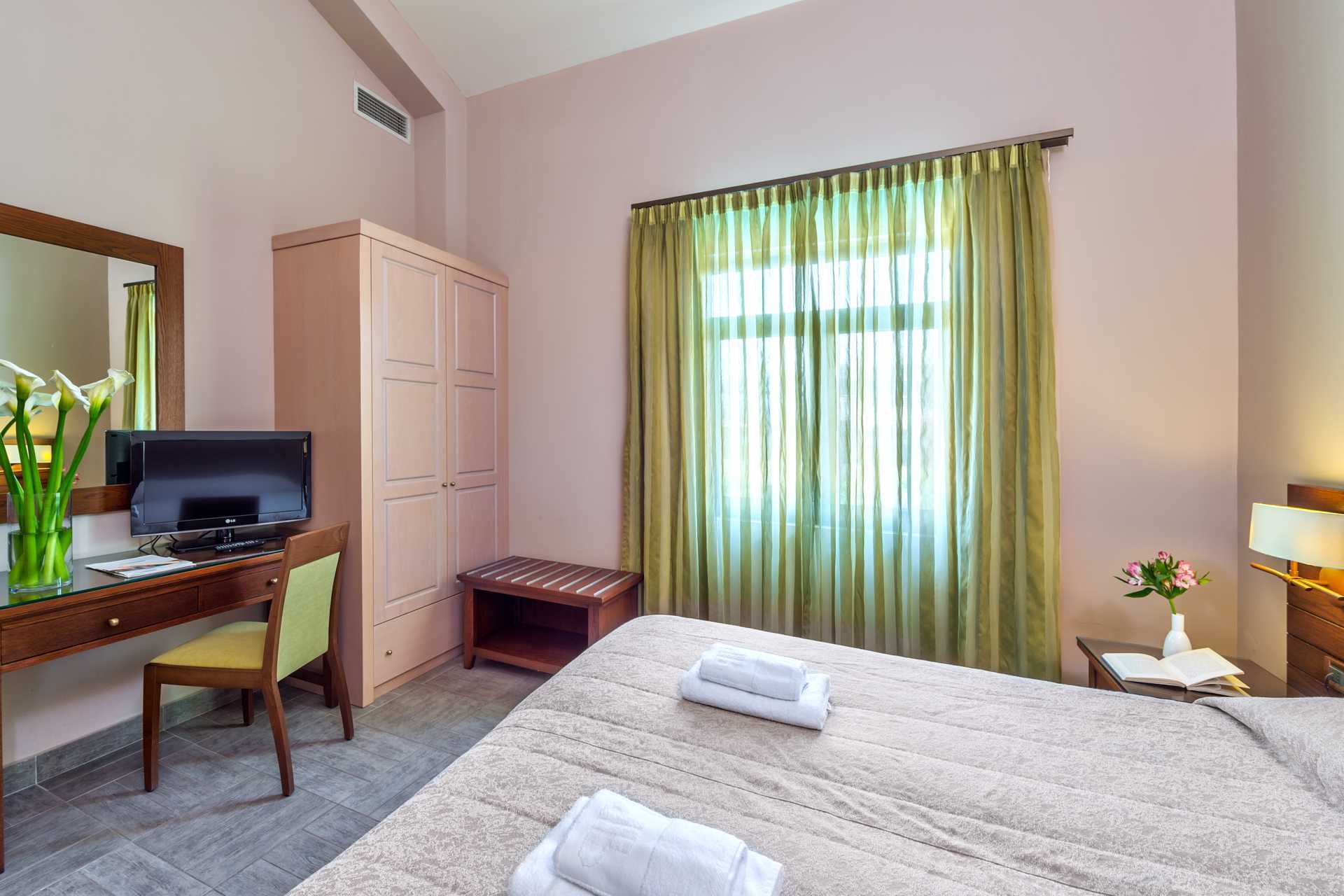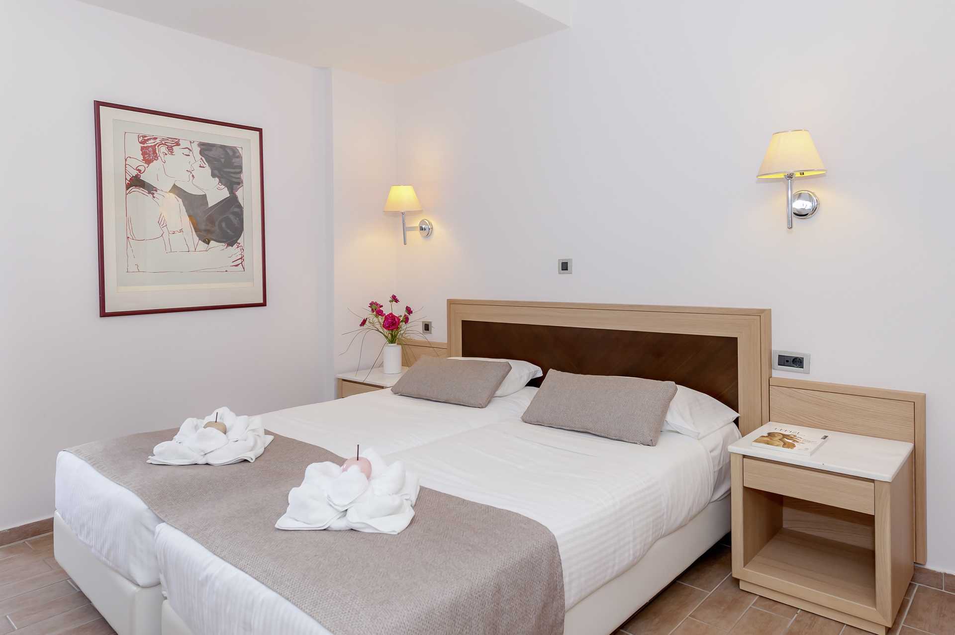 Yksiö, erikokoisilla parvekkeilla tai terasseilla. Yhdistetty makuuhuone ja minikeittiö. Parivuode tai kaksi yhden hengen sänkyä. Lisävuodemahdollisuus vuodesohvasta. Minikeittiössä keittolevyt, jääkaappi, kahvinkeitin, vedenkeitin ja yksinkertainen keittiövarustus. Maksuton wifi ja ilmastointi. Tallelokero lisämaksusta. Tv kansainvälisillä kanavilla. Hiustenkuivain. Kylpyamme tai suihku ja wc. Siivous 7 krt/viikko. Alle 2-vuotiaat lapset lasketaan lisävuoteella majoittuviksi henkilöiksi.